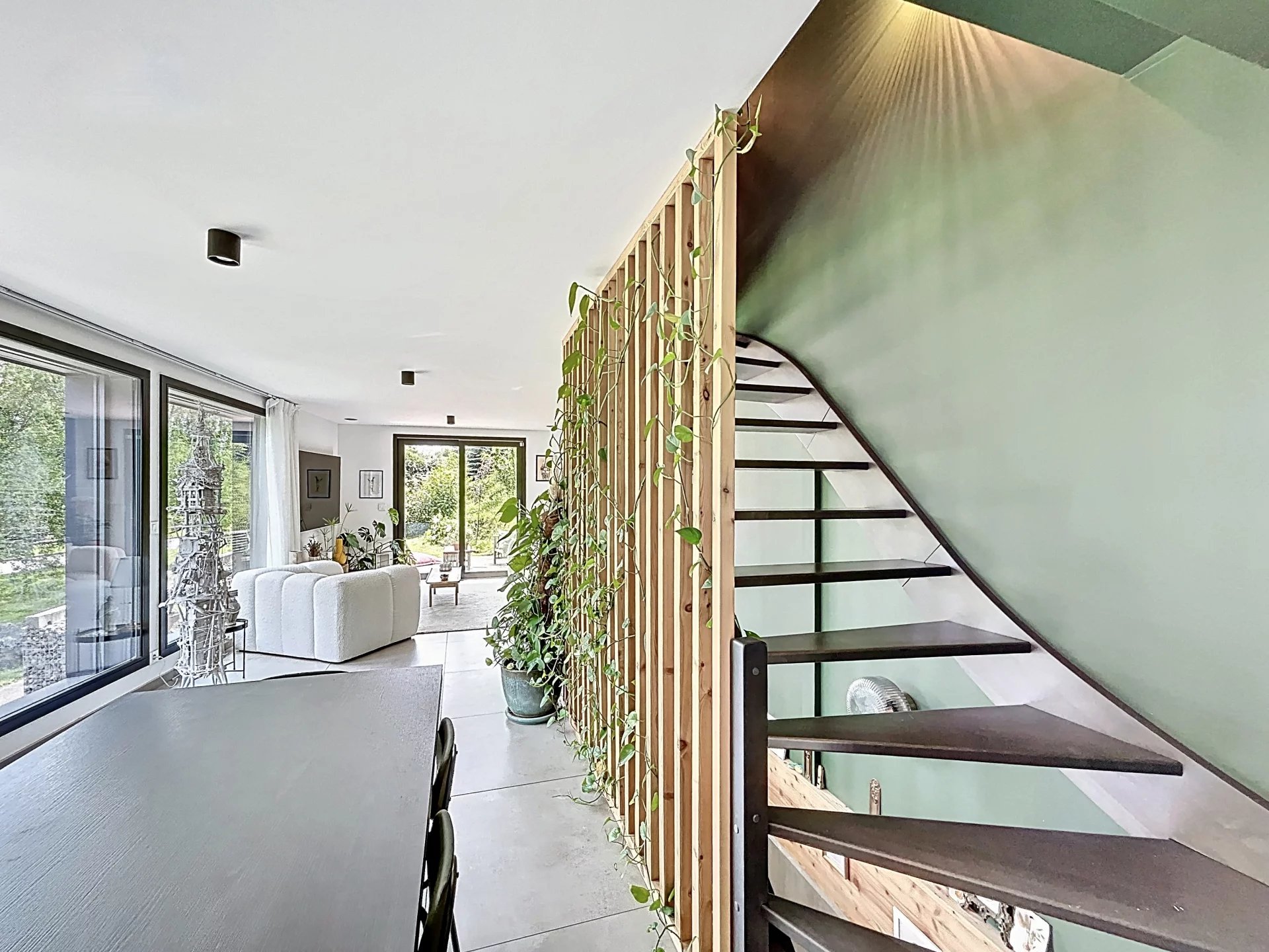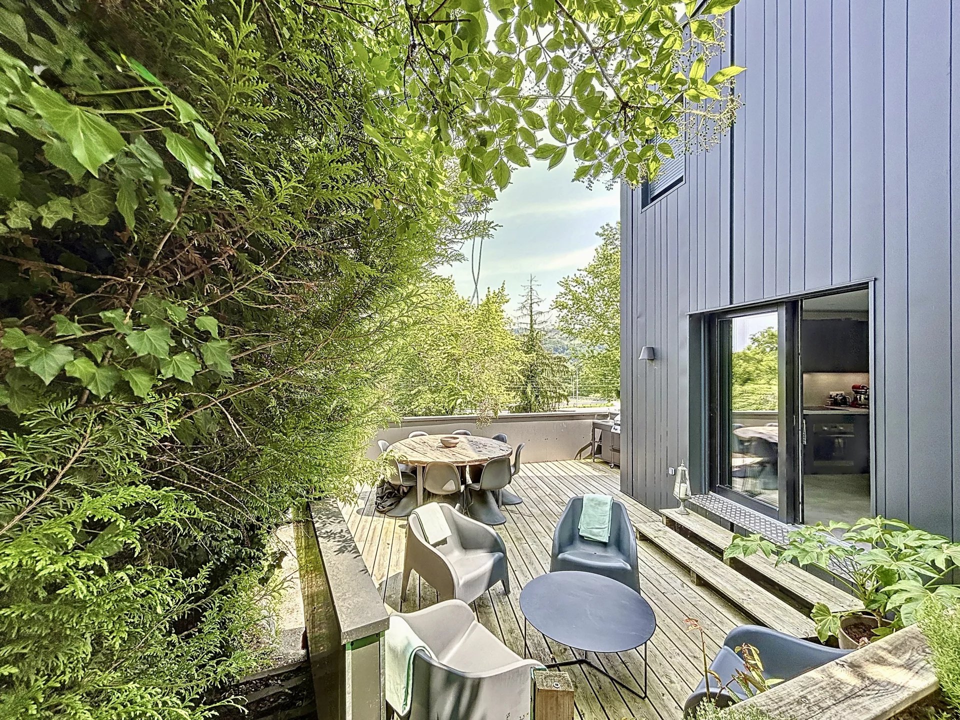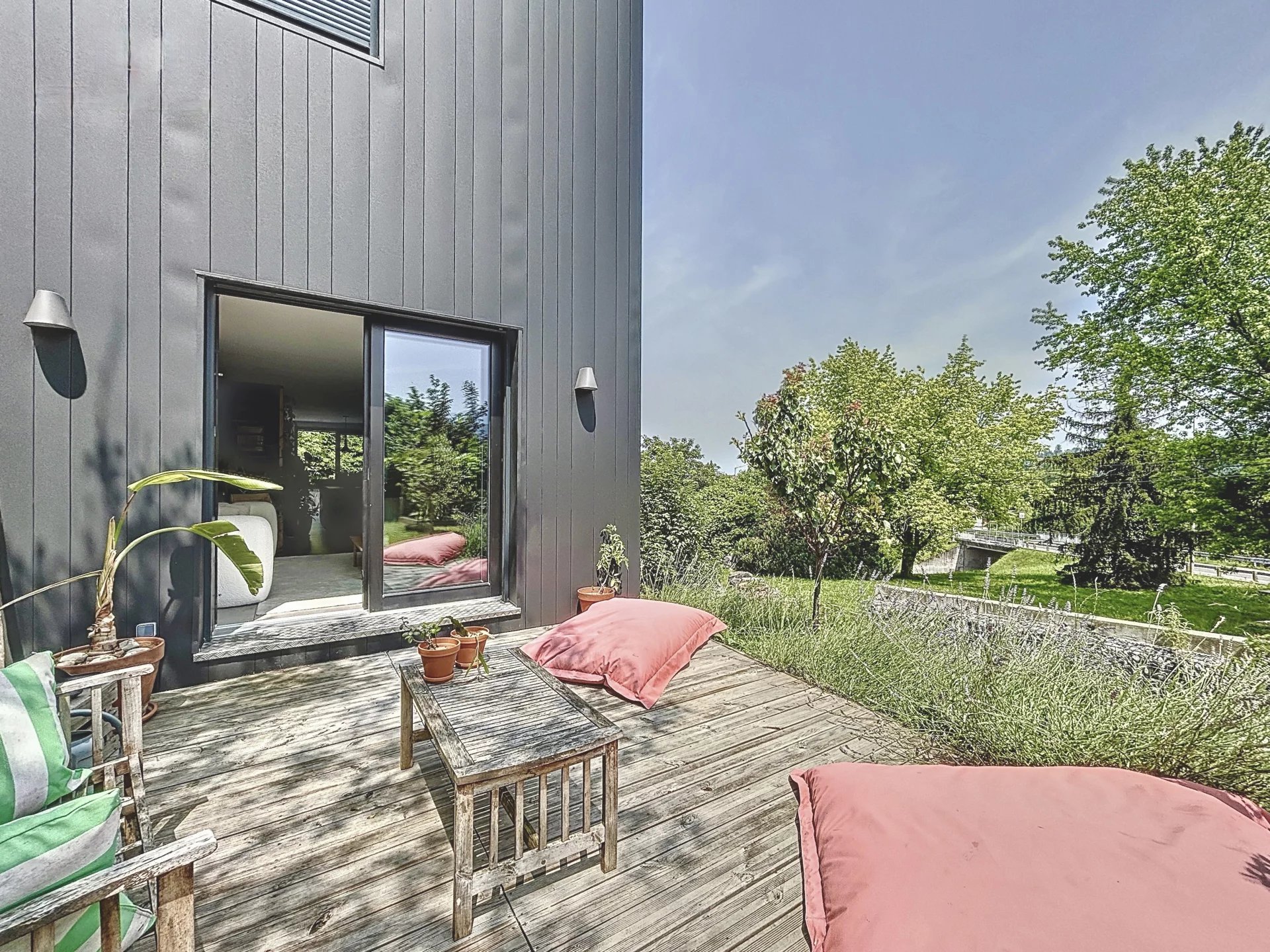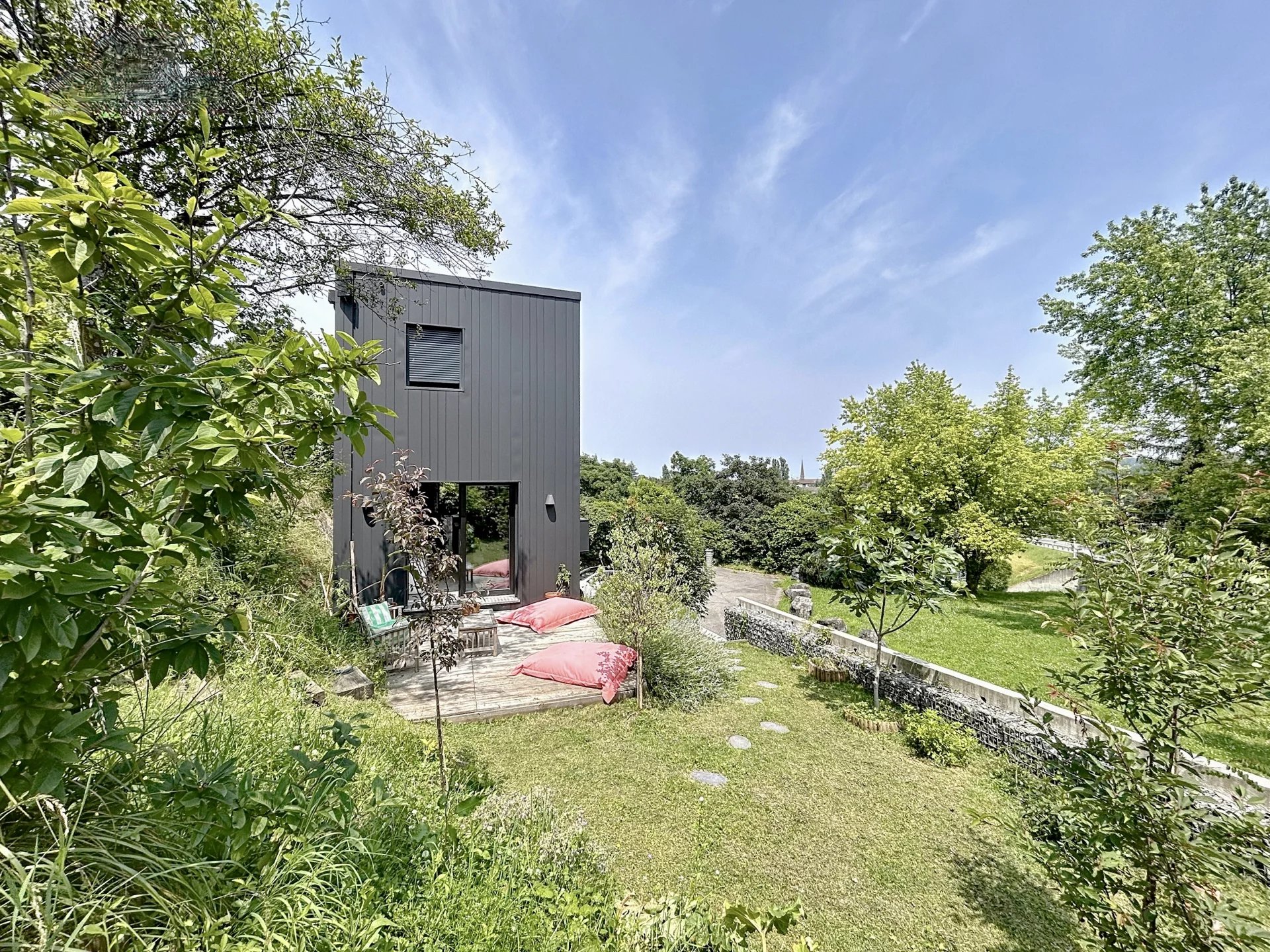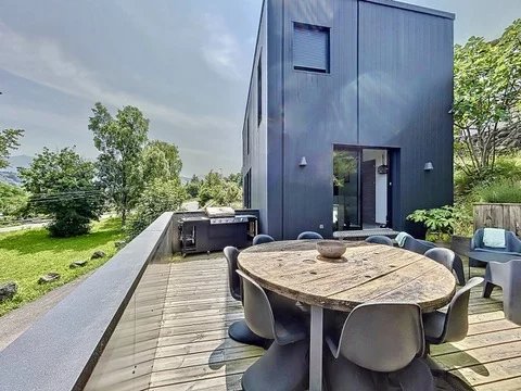 Dans un environnement résidentiel recherché de Thonon-les-Bains, secteur Est, découvrez cette maison de ville d’exception construite en 2022, alliant design contemporain, matériaux haut de gamme et autonomie énergétique remarquable qui se distingue par sa conception écologique haut de gamme et son niveau de performance énergétique exceptionnel. D’une surface habitable de 100 m², elle propose une distribution optimisée avec un hall d’entrée avec buanderie et local technique, un séjour lumineux sans aucun vis-à-vis, avec cuisine ouverte aménagée, trois chambres avec rangements intégrés, une salle de bains élégante et un double garage. À l’extérieur, deux terrasses aux ambiances distinctes – une terrasse conviviale pour les repas en plein air et une terrasse intimiste pour se détendre, entourées d’un jardin arboré – prolongent les espaces de vie. Construite en ossature bois avec des matériaux de très haute qualité, cette maison intègre une isolation thermique renforcée, du triple vitrage, une pompe à chaleur réversible (chauffage et climatisation), un adoucisseur d'eau, une ventilation double flux dans toutes les pièces, et des panneaux solaires photovoltaïques assurant une quasi-autonomie énergétique (coût annuel d’électricité nul). Elle offre également une triple exposition pour une luminosité optimale tout au long de la journée, et des stores innovants permettant de préserver l’intimité sans altérer la vue. Un bien rare sur le marché, alliant confort moderne, engagement environnemental et prestations de standing.
