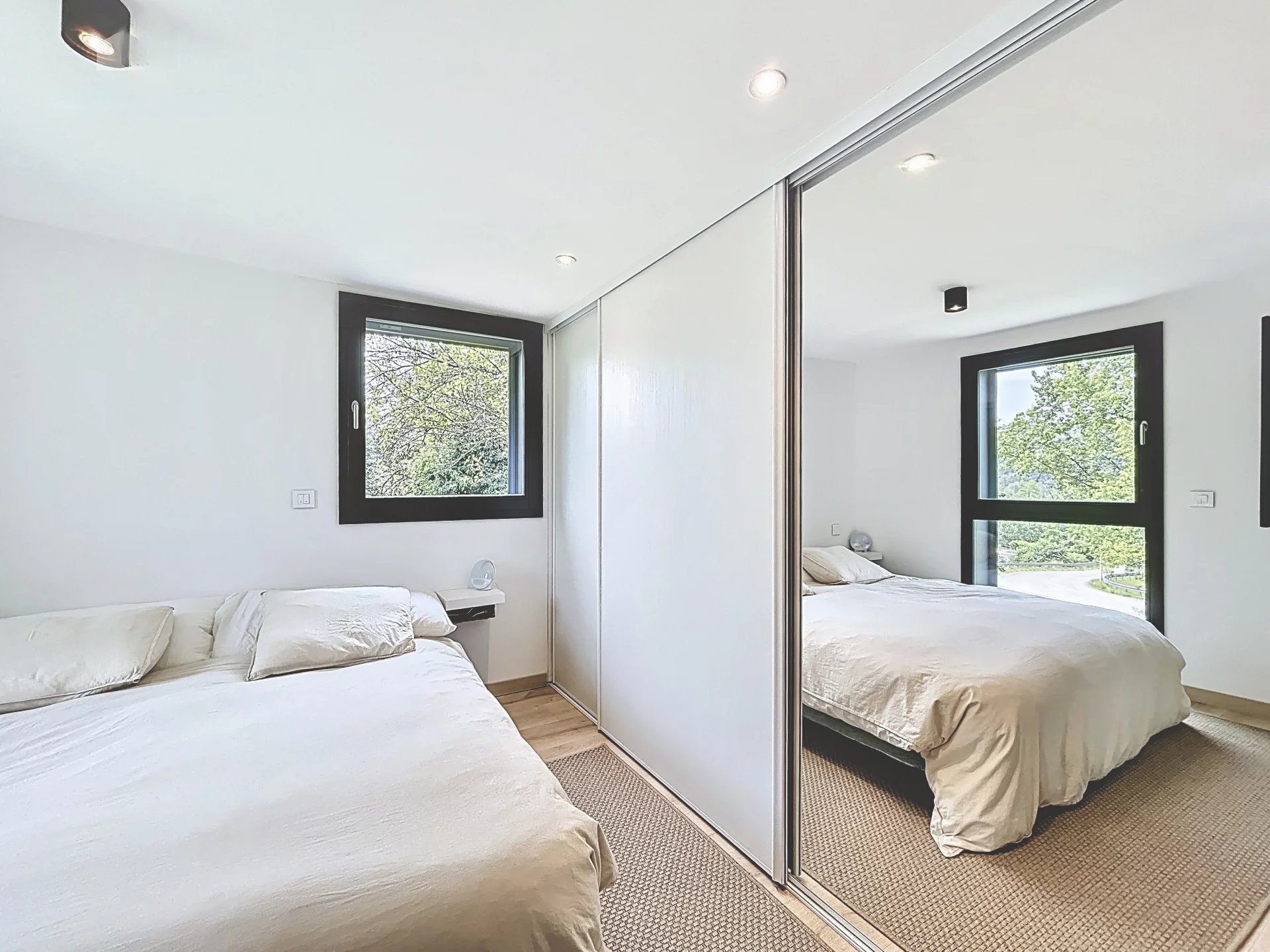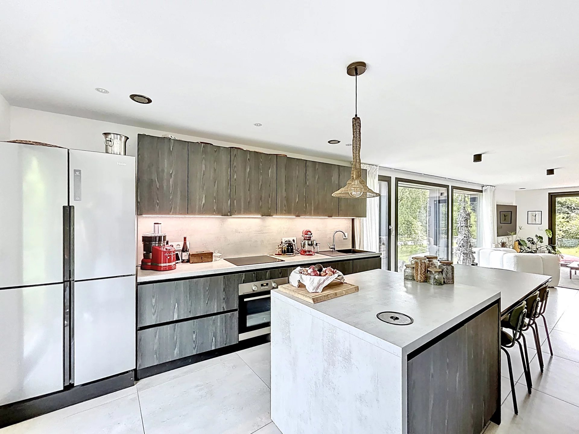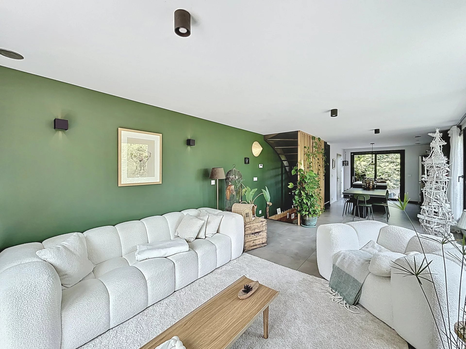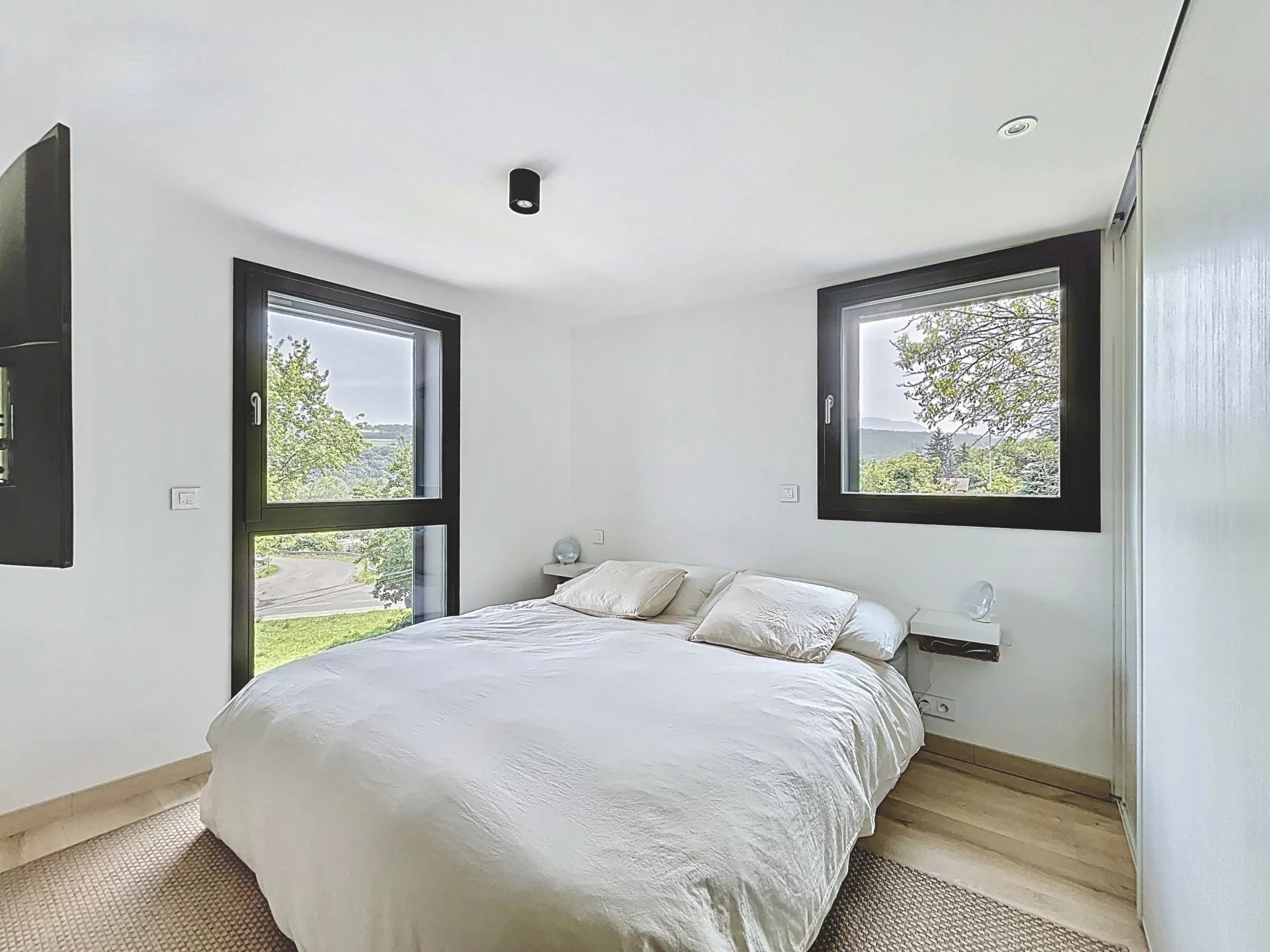 Dans un environnement résidentiel recherché de Thonon-les-Bains, secteur Est, découvrez cette maison de ville d’exception construite en 2022, alliant design contemporain, matériaux haut de gamme et autonomie énergétique remarquable qui se distingue par sa conception écologique haut de gamme et son niveau de performance énergétique exceptionnel. D’une surface habitable de 100 m², elle propose une distribution optimisée avec un hall d’entrée avec buanderie et local technique, un séjour lumineux sans aucun vis-à-vis, avec cuisine ouverte aménagée, trois chambres avec rangements intégrés, une salle de bains élégante et un double garage. À l’extérieur, deux terrasses aux ambiances distinctes – une terrasse conviviale pour les repas en plein air et une terrasse intimiste pour se détendre, entourées d’un jardin arboré – prolongent les espaces de vie. Construite en ossature bois avec des matériaux de très haute qualité, cette maison intègre une isolation thermique renforcée, du triple vitrage, une pompe à chaleur réversible (chauffage et climatisation), un adoucisseur d'eau, une ventilation double flux dans toutes les pièces, et des panneaux solaires photovoltaïques assurant une quasi-autonomie énergétique (coût annuel d’électricité nul). Elle offre également une triple exposition pour une luminosité optimale tout au long de la journée, et des stores innovants permettant de préserver l’intimité sans altérer la vue. Un bien rare sur le marché, alliant confort moderne, engagement environnemental et prestations de standing.