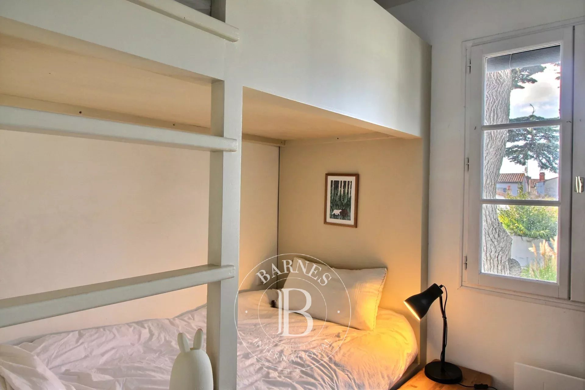 Maison à vendre Ile de Ré, Saint Martin de Ré. Idéalement située au calme d'une résidence sécurisée, maison lumineuse de 50 m² utiles (42 m² loi carrez) comprenant séjour avec cuisine ouverte aménagée et équipée, à l'étage, 2 chambres, dont une avec une mezzanine de 8 m², salle d'eau et WC indépendant. Terrasse paysagée de 15 m² en bois. Local vélos commun. Ce bien peut-être vendu meublé.