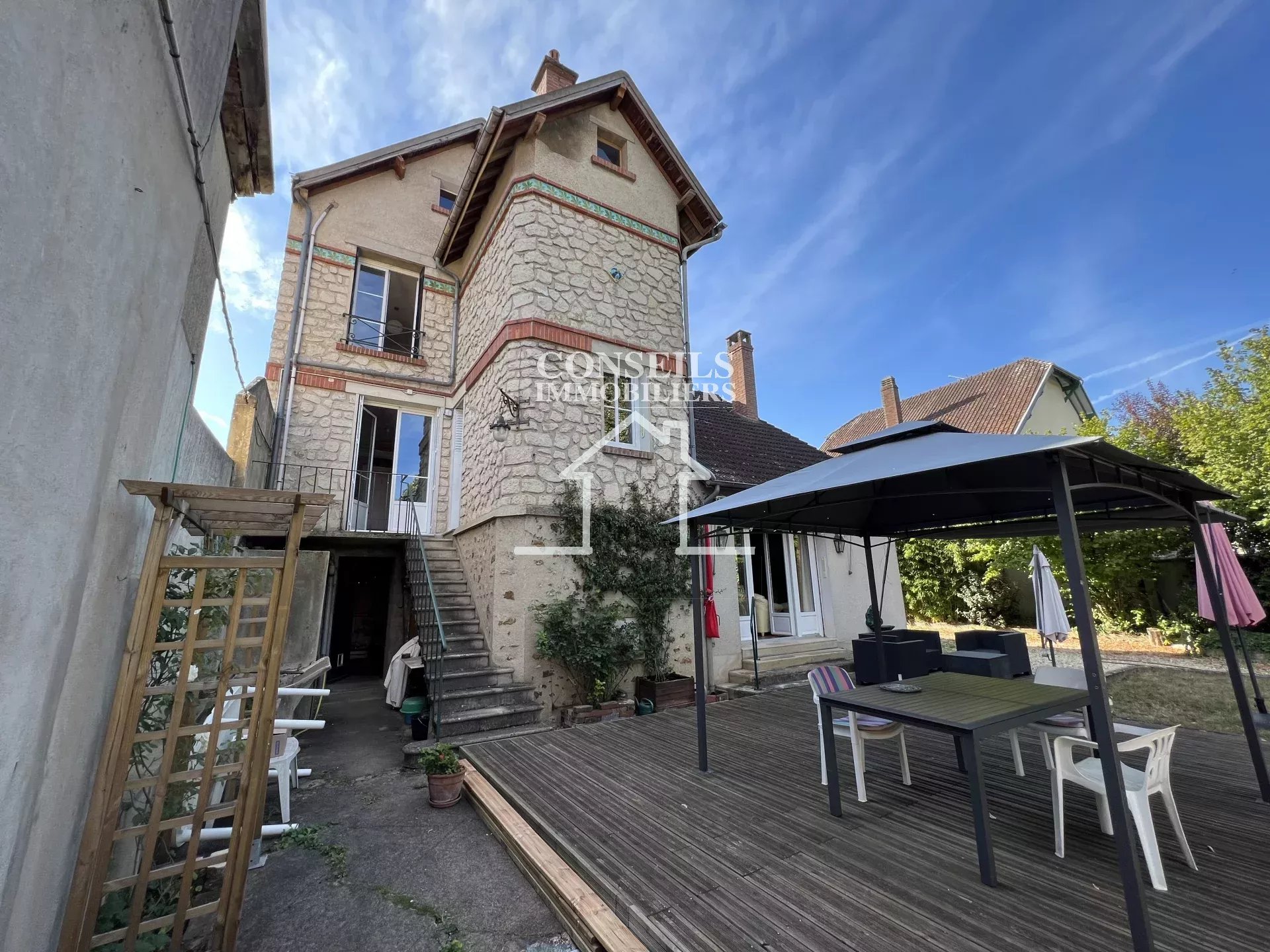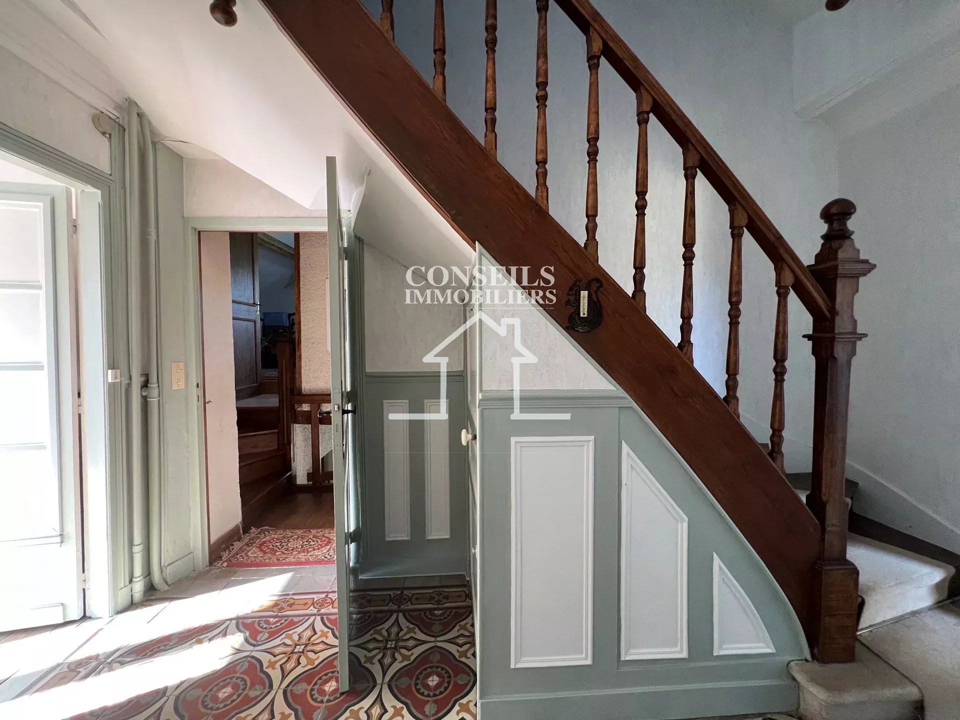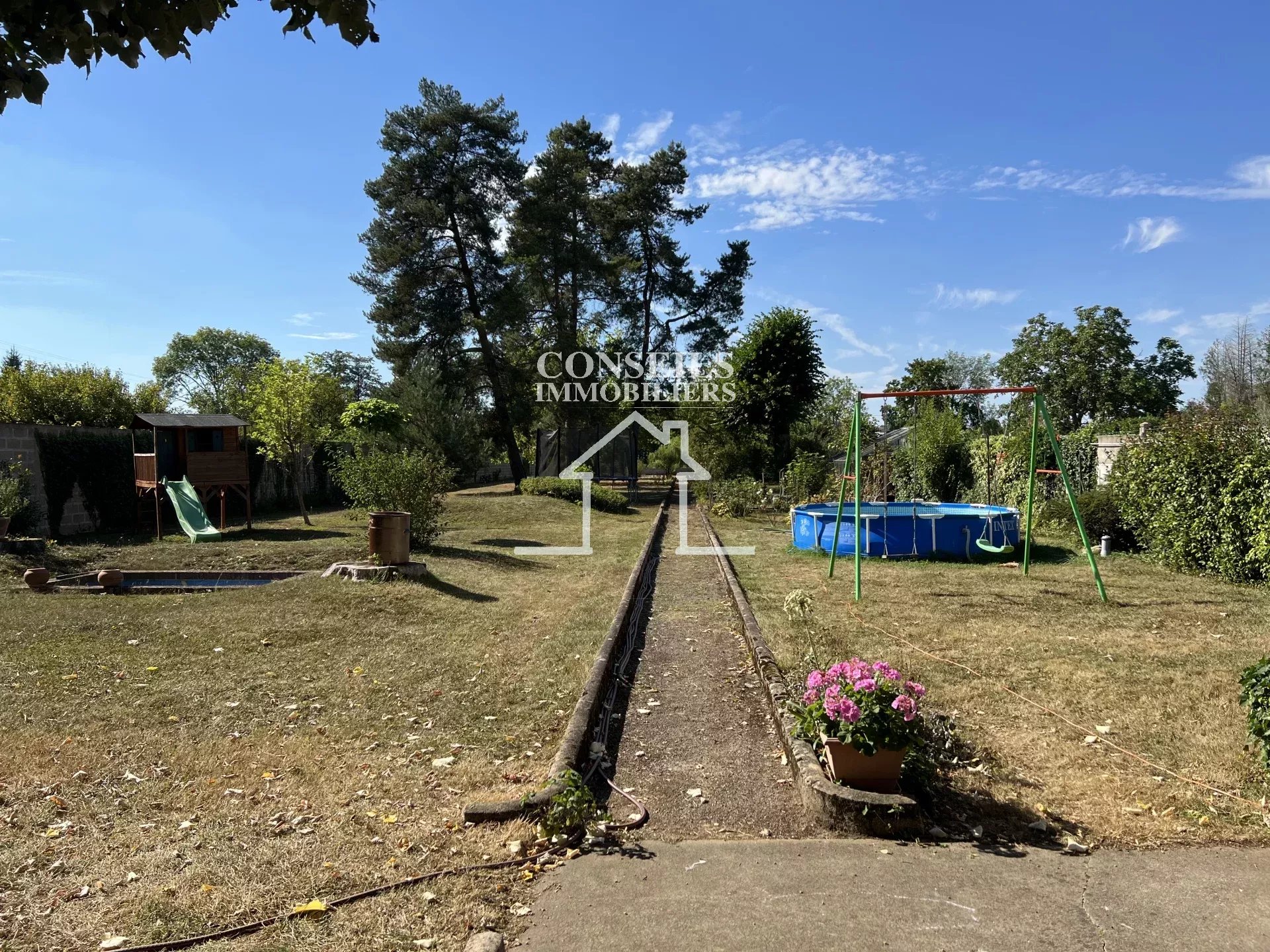 MAISON DE CARACTÈRE LUMINEUSE AVEC DE BEAUX VOLUMES. Celle-ci offre un très beau jardin avec des arbre fruitiers vous pourrez profiter de la terrasse pour l'admirer. Cette ancienne MAISON offre une entrée, cuisine aménagée, salle à manger-salon avec cheminée donnant accès au jardin. 4 chambres, une salle d'eau/wc, salle de bain. wc. 1 pièce de 29,66m² avec fenêtre et velux. Grenier compartimenté avec 2 pièces dont une avec fenêtre. Double vitrage sur l'ensemble. Sous-sol compartimenté: garage, chaufferie, wc, débarras. Cave. Dépendances.