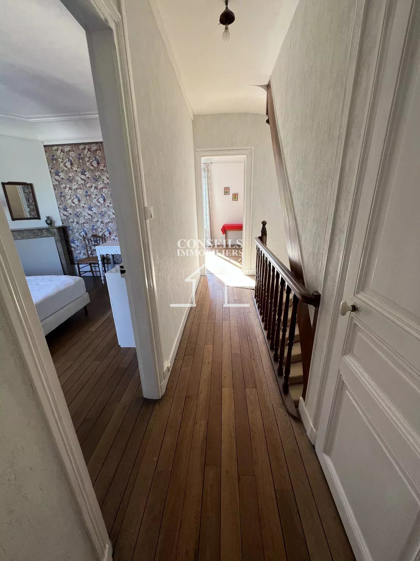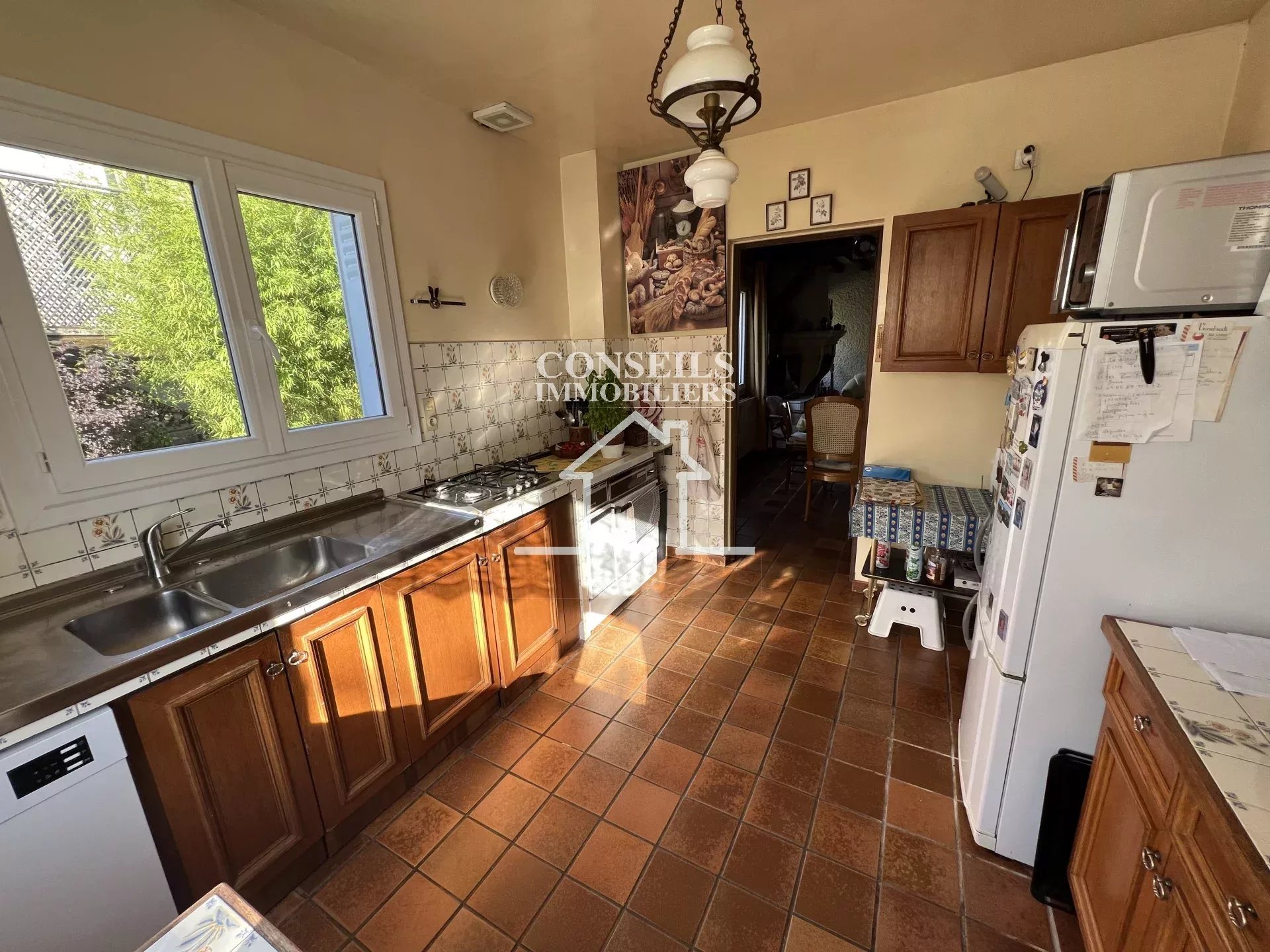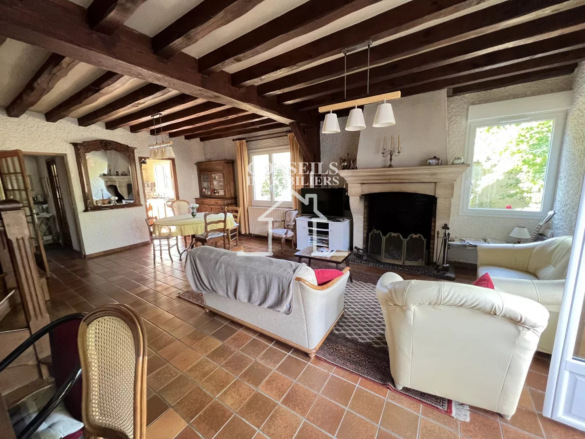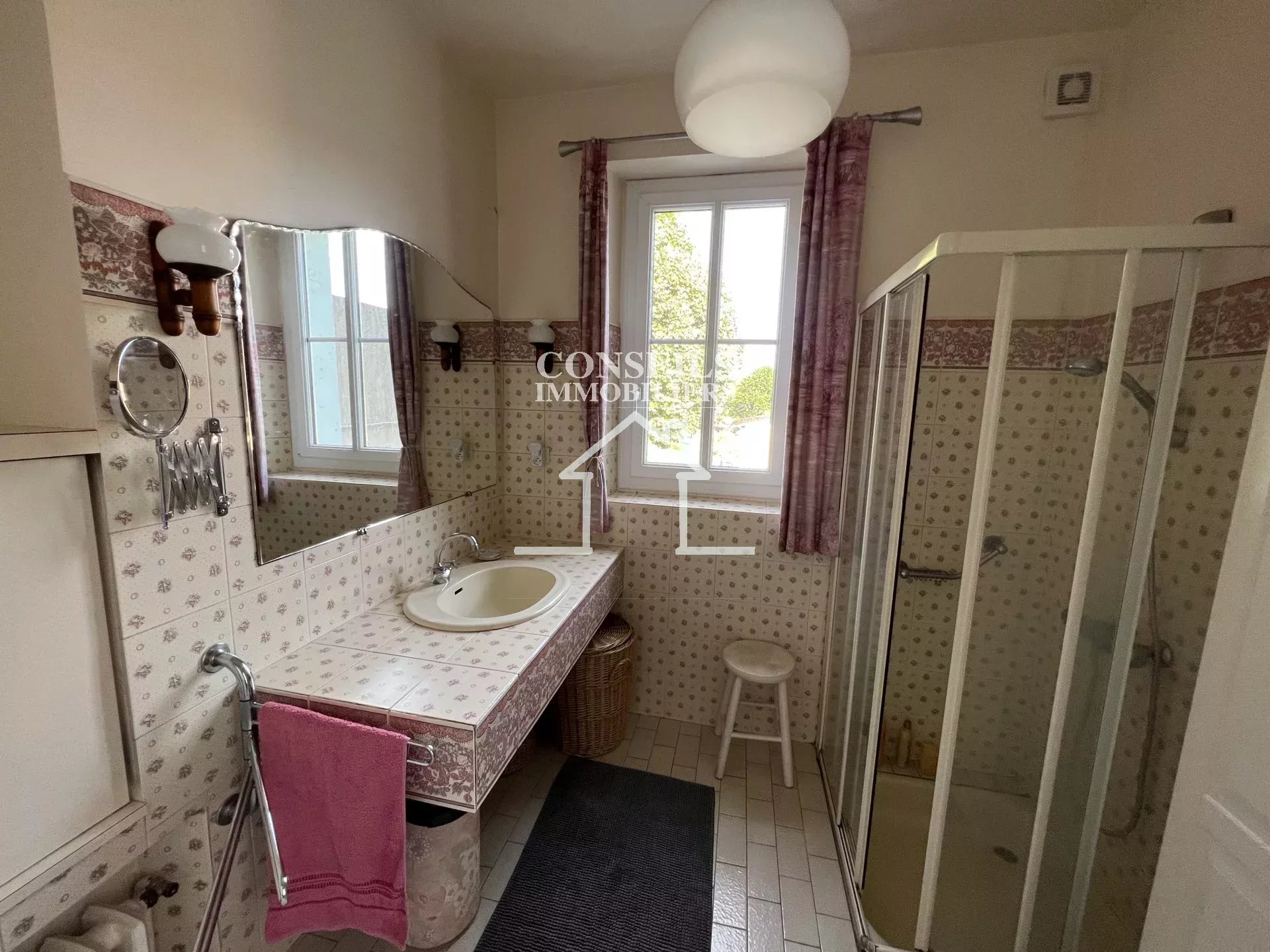 MAISON DE CARACTÈRE LUMINEUSE AVEC DE BEAUX VOLUMES. Celle-ci offre un très beau jardin avec des arbre fruitiers vous pourrez profiter de la terrasse pour l'admirer. Cette ancienne MAISON offre une entrée, cuisine aménagée, salle à manger-salon avec cheminée donnant accès au jardin. 4 chambres, une salle d'eau/wc, salle de bain. wc. 1 pièce de 29,66m² avec fenêtre et velux. Grenier compartimenté avec 2 pièces dont une avec fenêtre. Double vitrage sur l'ensemble. Sous-sol compartimenté: garage, chaufferie, wc, débarras. Cave. Dépendances.