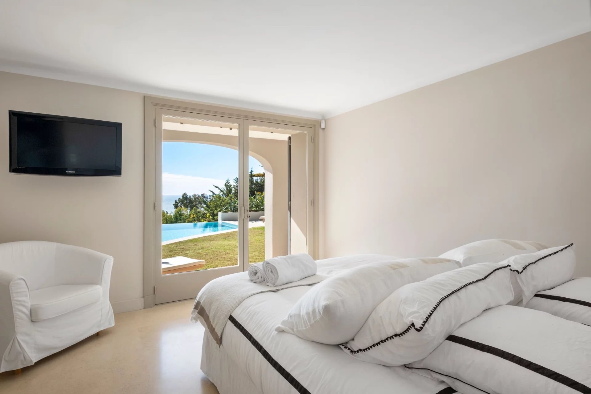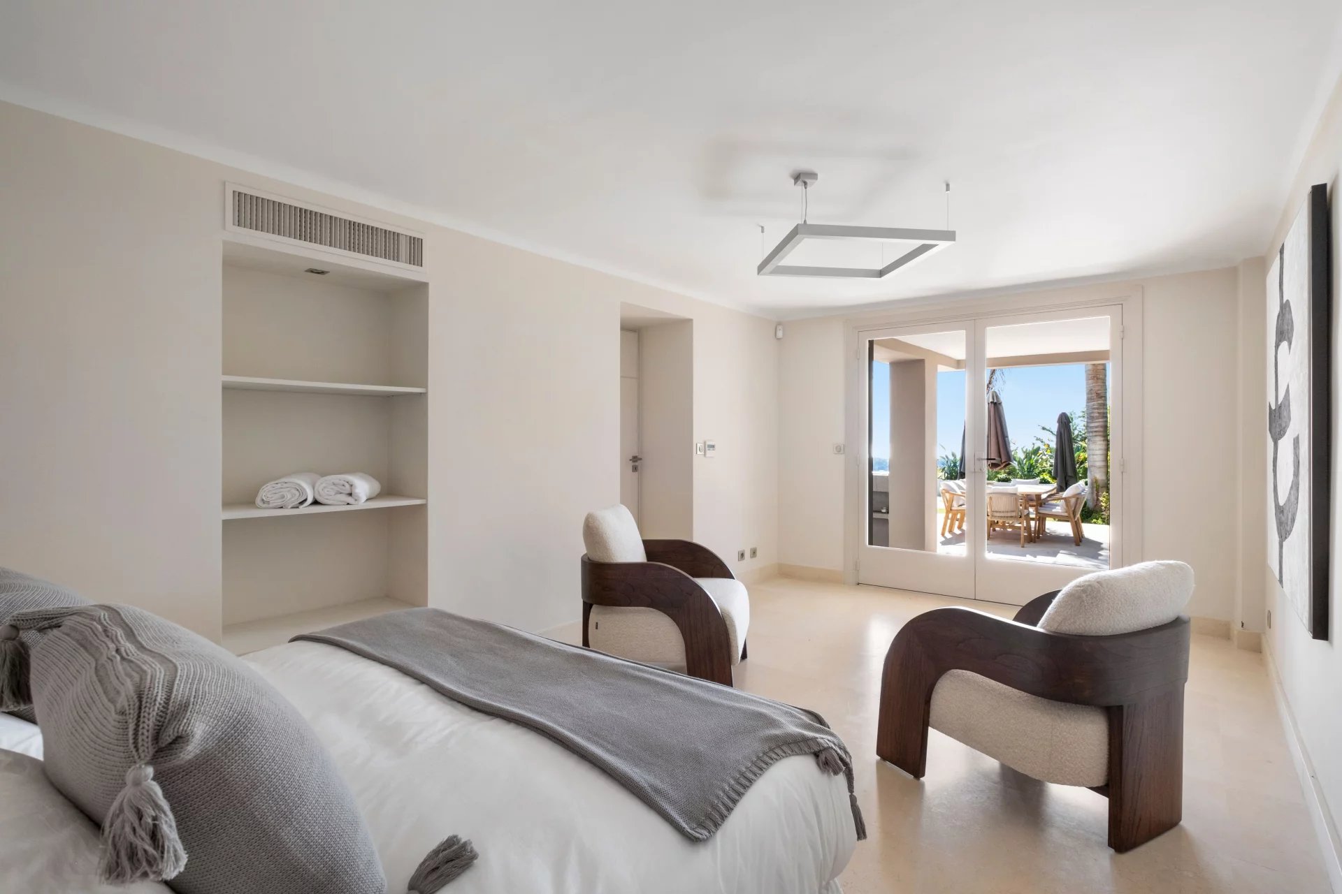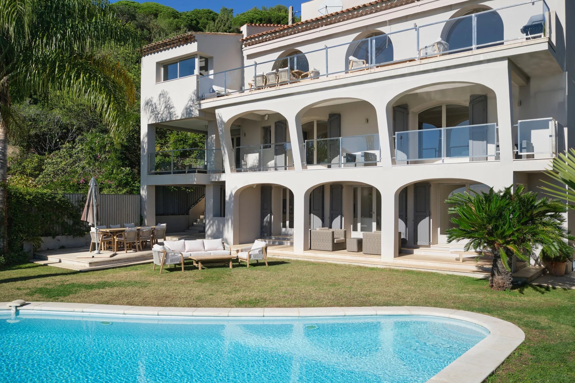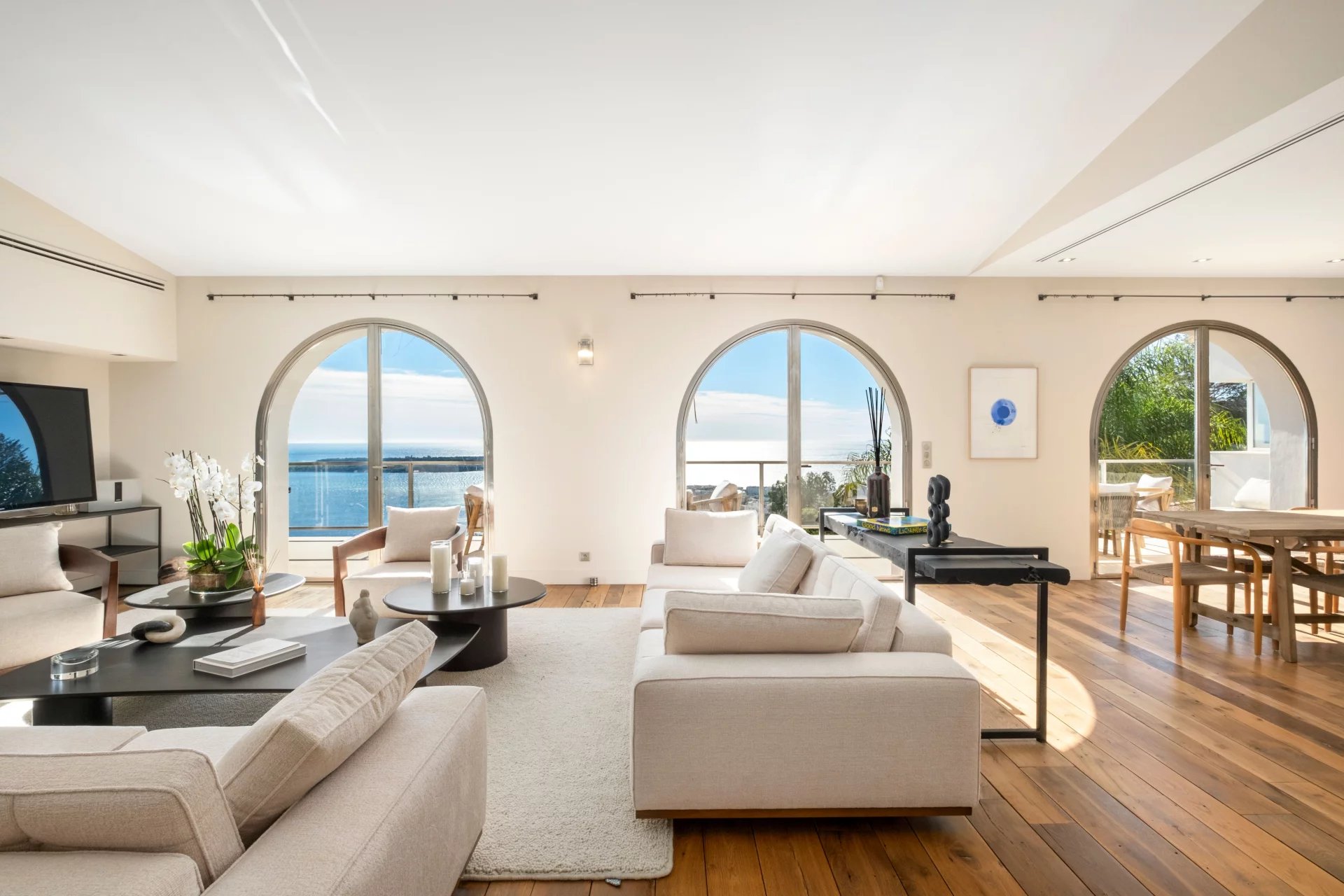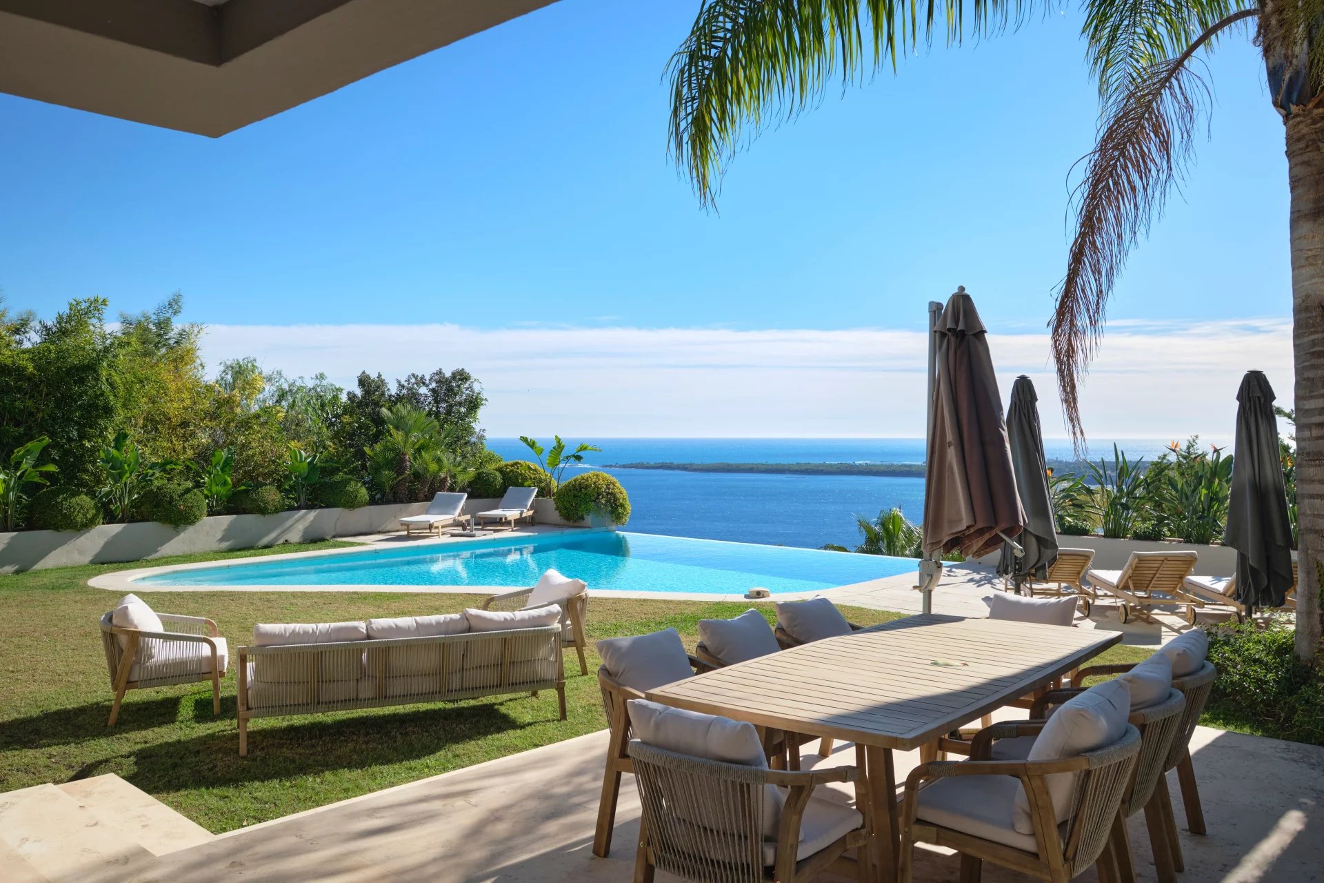Offrez-vous le luxe d’un panorama spectaculaire sur la mer Méditerranée et les îles de Lérins, dans une propriété unique, entre villa nichée au cœur du prestigieux quartier de la Californie à Cannes. Une villa d’exception de 350 m², répartie sur trois niveaux desservis par ascenseur, où chaque espace a été pensé pour sublimer la lumière et la vue. L’espace de vie principal s’ouvre sur une immense terrasse plein sud, offrant un cadre idyllique pour recevoir et se détendre. Vous y trouverez : • Un salon d’hiver élégant, • Une salle à manger baignée de lumière, • Une cuisine fermée entièrement équipée. À l’étage, trois superbes chambres en suite, dont une avec un grand dressing indépendant. Le rez-de-jardin propose deux autres chambres en suite, ainsi qu’un vaste salon d’été et une cuisine extérieure, pour vivre pleinement les beaux jours. Prestations haut de gamme : • 5 chambres en suite / 5 salles d’eau • 3 grandes terrasses • Piscine à débordement avec vue mer • Jardin paysager • Salle de sport de 50 m² toute équipée (marque ExclusiveFit) • 2 garages fermés et sécurisés • Système d’alarme + vidéosurveillance • Taxe foncière : 5 293 €/an ⸻ Ce qu’on aime : • L’incroyable luminosité et la sensation d’espace • L’harmonie entre intérieur raffiné et extérieur méditerranéen • La qualité irréprochable des finitions • Le calme absolu à seulement quelques minutes du centre de Cannes