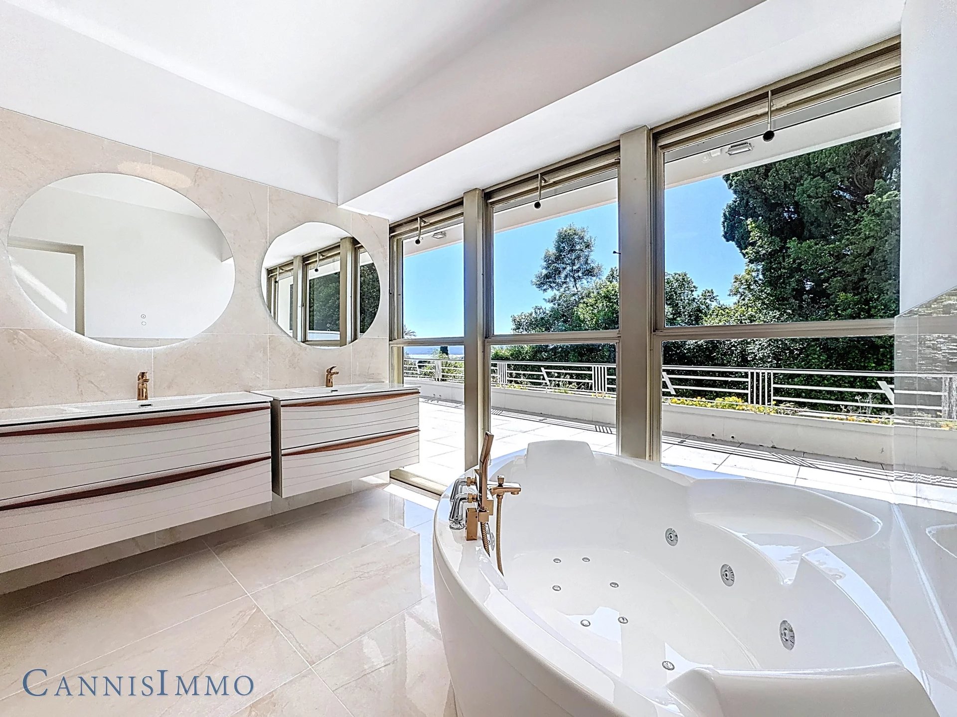 Nel cuore della California, nel quartiere Isola Bella, venite a scoprire questo sontuoso trilocale immerso in un parco alberato. L'appartamento vanta una sontuosa vista sul mare ed è eccezionalmente luminoso grazie ai soffitti alti e alle grandi finestre a golfo che circondano tutte le stanze. L'ampio soggiorno si apre su una grande terrazza esposta a sud con vista ininterrotta sul mare. Dispone anche di un camino. La cucina contemporanea, aperta ma leggermente incassata, è completamente attrezzata e progettata con materiali di alta gamma. Le due camere da letto con bagno privato sono dotate di spogliatoio, bagno e toilette privata. L'intero appartamento è stato ristrutturato con gusto ed è dotato di aria condizionata. Un monolocale indipendente nel seminterrato, ideale per accogliere gli ospiti, completa la proprietà. Il vialetto di fronte alle terrazze è chiuso alle auto, per garantire la tranquillità, e l'accesso ai posti auto avviene dal retro della residenza. Due garage chiusi e un parcheggio privato facilitano il parcheggio e due cantine completano la proprietà. Vantaggi: Residenza : Esclusivo e di alto livello Grandi volumi : 3 camere - 137 m² + studio indipendente - 18 m² Spazio esterno : Doppia terrazza esposta a sud Parcheggio : 2 garage + 1 parcheggio privato Dintorni : Parco alberato, tranquillo e sicuro Posizione : A pochi passi da Villa Domergue e dal canale Siagne Vicino al centro città e alle spiagge Vista : Vista panoramica e senza ostacoli sul mare