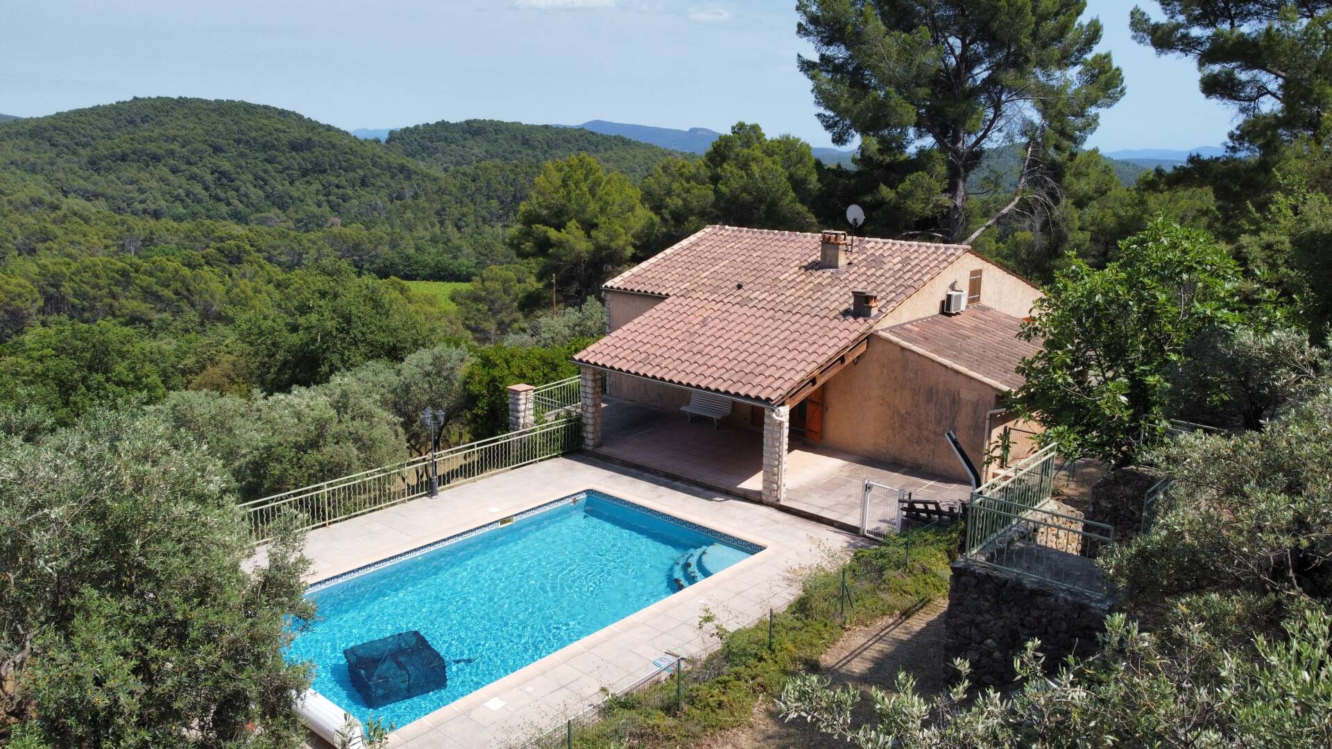 A vendre Propriété à Callas Dans un cadre verdoyant avec vue dégagée dominante, Villa des années 80 d'environ 160m² à rafraîchir. En RDJ : Sous-sol total avec salle d'eau et chambre, Au RDC : Salon-séjour avec cheminée, cuisine aménagée, véranda, lingerie. 2 chambres salle de bains. A l'étage : très grande chambre en sous-toit faisant office de dortoir, plus pièce en mezzanine. Belle piscine en mosaïque, spacieuse terrasse avec vue magnifique, le tout sur un terrain naturel boisé de plus de 6 hectares avec source. Cadre exceptionnel. A visiter sans tarder. Montant estimé des dépenses annuelles d’énergie pour un usage standard entre 1500 € et 2070 € (prix moyens des énergies indexés au 01/01/2021). "Les informations sur les risques auxquels ce bien est exposé sont disponibles sur le site Géorisques www.georisques.gouv.fr". Soumis à obligation légale de débroussaillement (OLD).