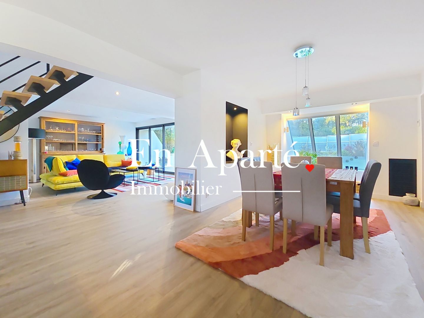 L'agence En Aparté vous propose à la vente une maison d'architecte édifiée en 1976 et entièrement rénovée. https://www.facebook.com/reel/3409164159234650 Elle dispose de prestations de qualité pour un confort de vie optimale, vous apprécierez le grand volume de la pièce de vie qui donne accès sur une terrasse et un parc paysagé avec un petit bois. L'extérieur est également très bien entretenu, permettant de profiter de la belle piscine couverte et chauffée par une pompe à chaleur. Elle propose trois chambres agréables, deux salle d'eau et un coin bureau idéal pour le télétravail avec vue sur la piscine. Elle est chauffée par une pompe à chaleur AIR, permettant de bénéficier de la climatisation en cas de forte chaleur et profite d'un purificateur d'air. L'ensemble de l'assiette foncière est d'environ 7 000 m2 comprenant un bois (environ 3000m2), un double garage, deux carports, un grand abris de jardin... s'accèdant par un chemin gravillonné et végétalisé. Si vous recherchez une propriété au calme et proche de Jullouville (5/6 km) avec un écrin de verdure et des belles prestations, n'hésitez pas à me contacter pour organiser une visite !! Son prix : 811 000 Euros, honoraires d'agence à la charge du vendeur. Pour connaître les risques auxquels ce bien est exposé, vous pouvez consulter le site georisques.gouv.fr