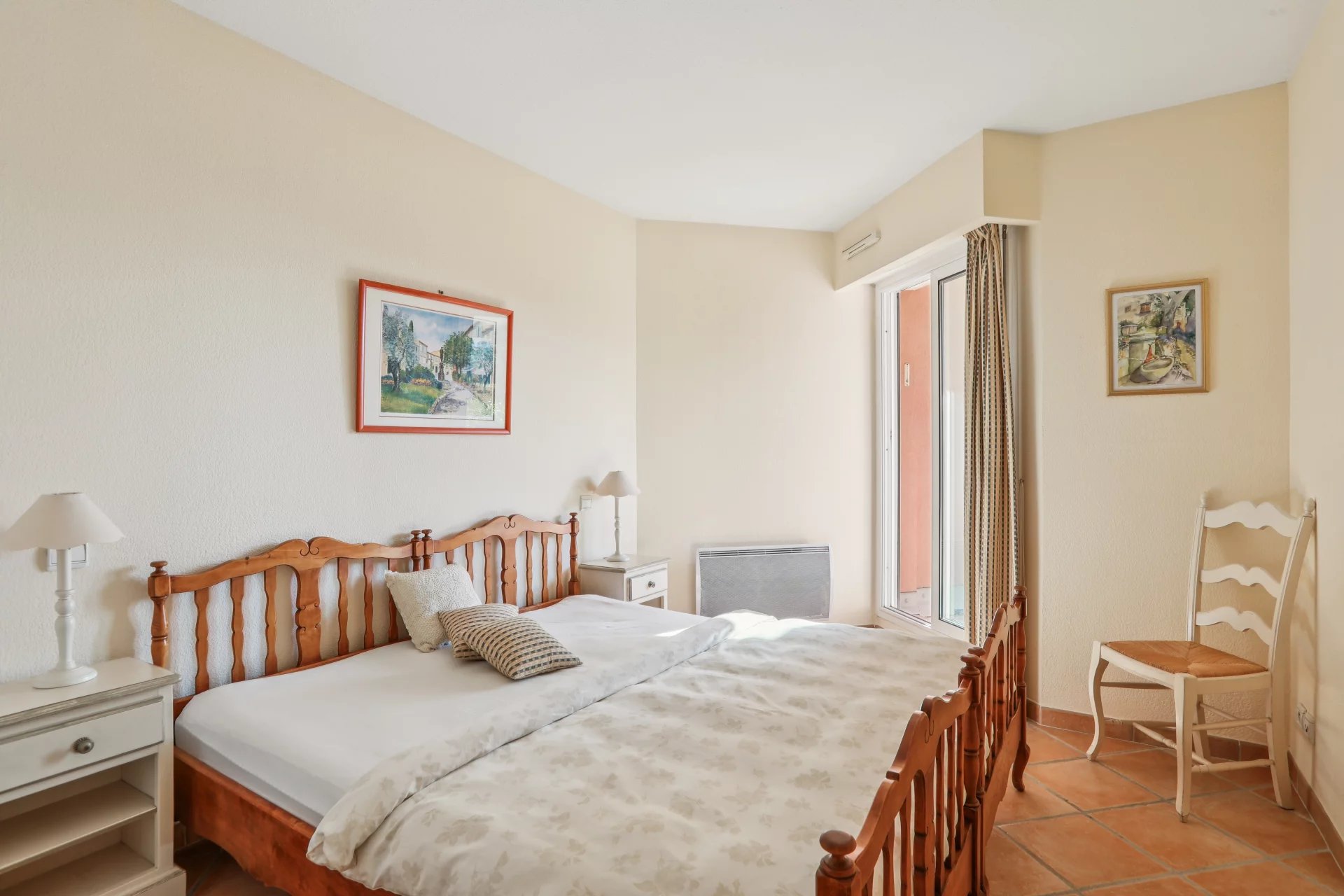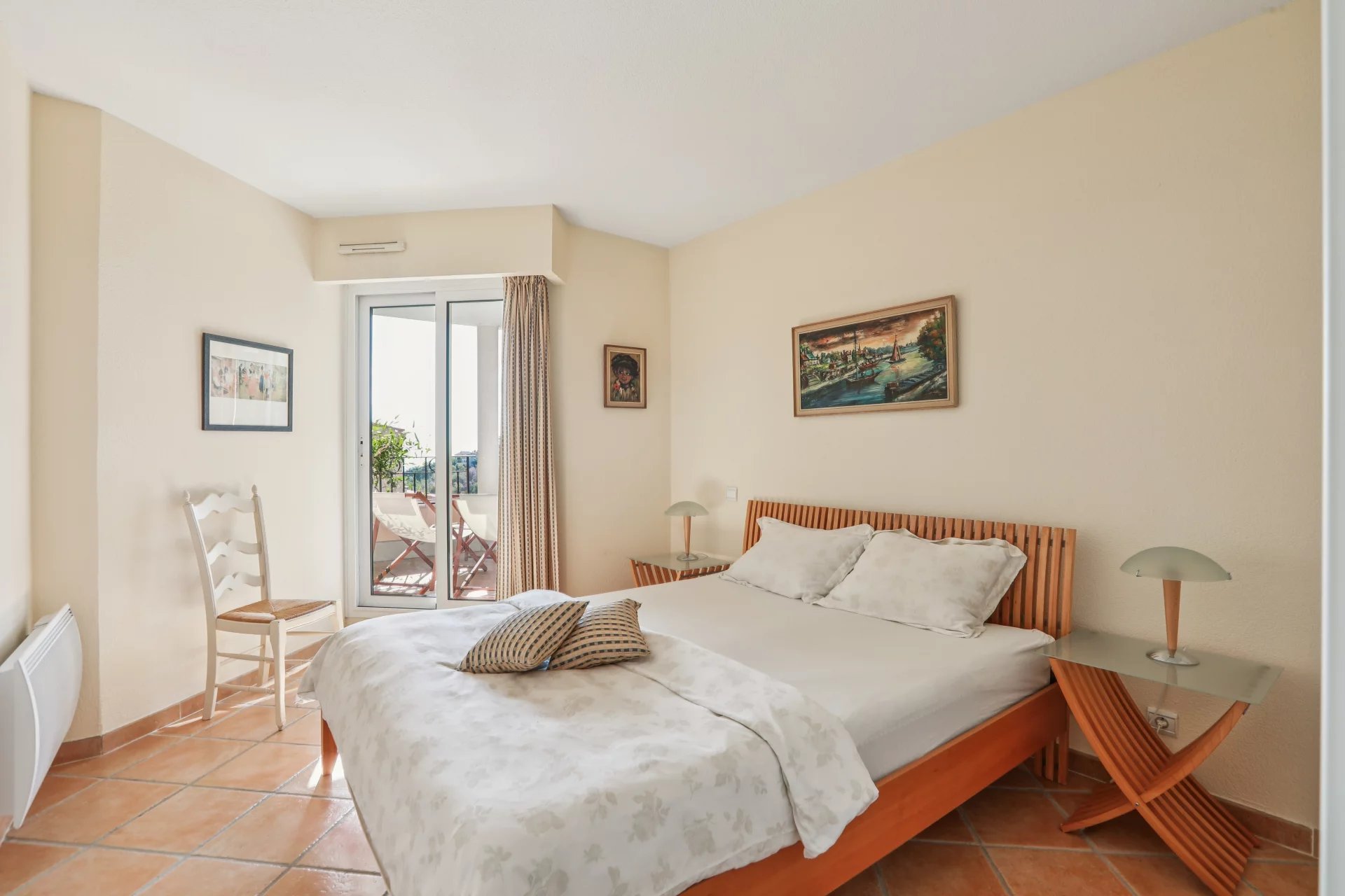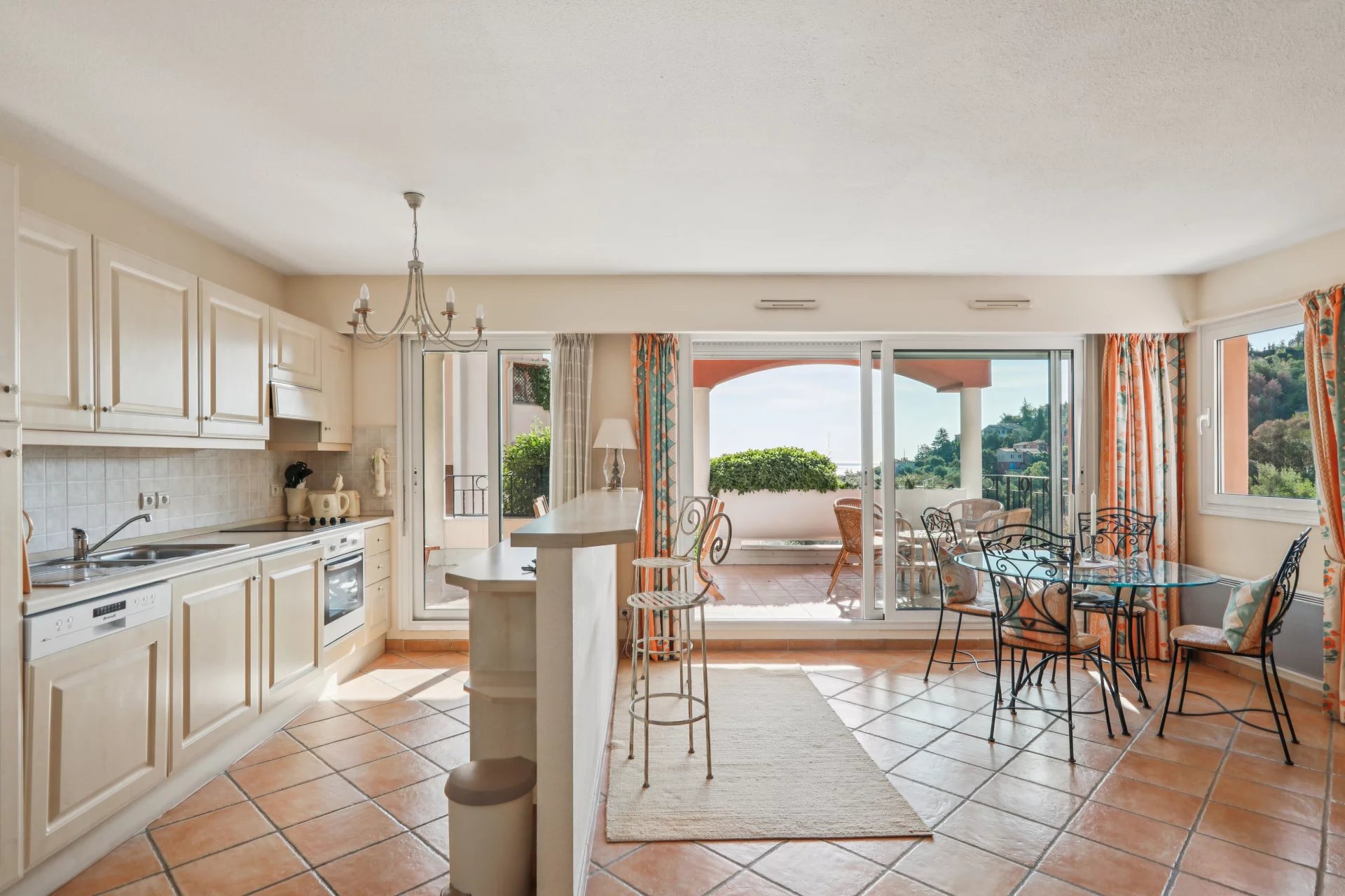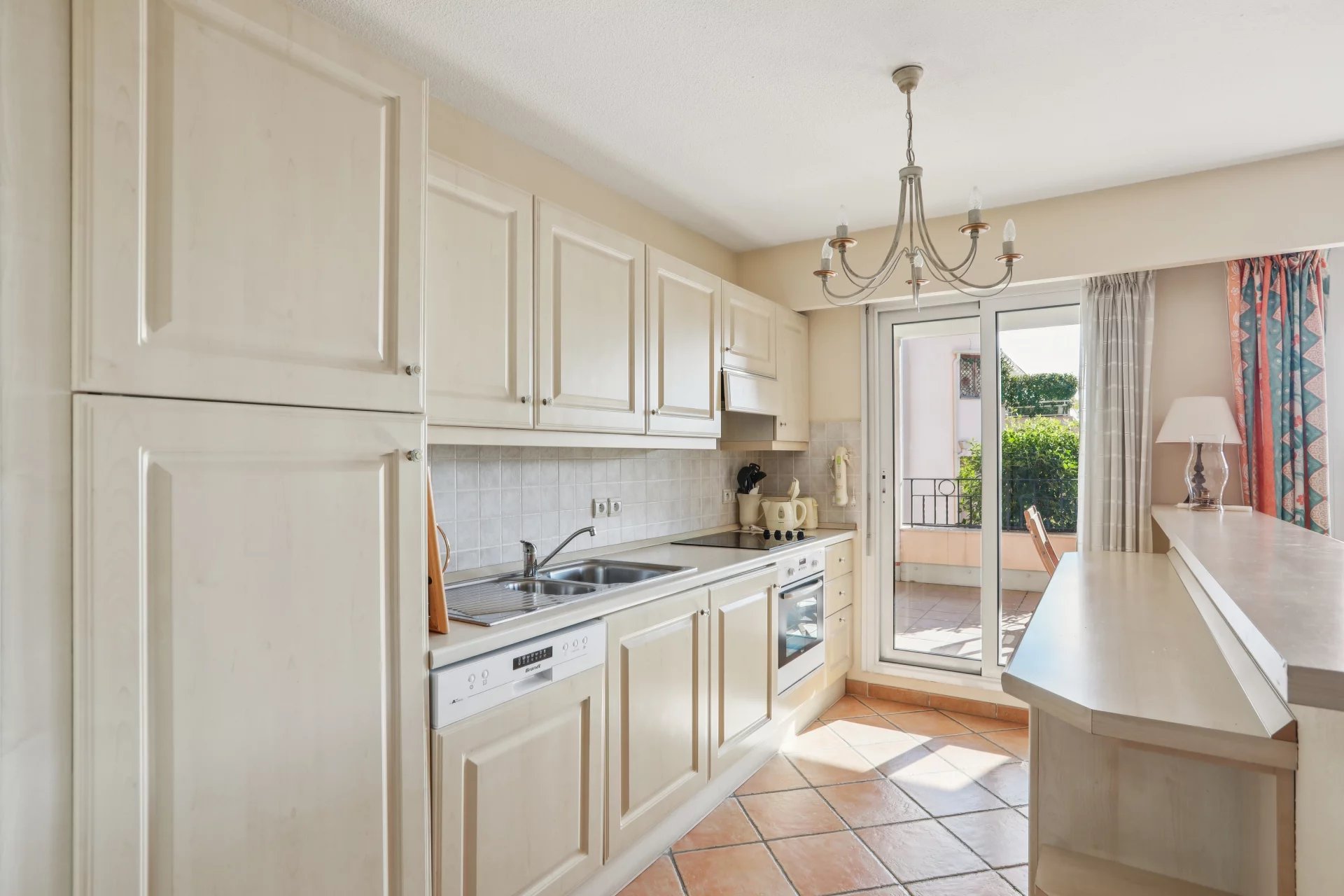 L’appartement se compose d’un séjour spacieux et lumineux avec cuisine ouverte, l’ensemble s’ouvrant sur une vaste terrasse couverte. Profonde et large, cette terrasse est idéale pour aménager un coin salon et une salle à manger d’extérieur, parfaits pour recevoir et profiter de la vue. Les deux chambres donnent également accès à la terrasse et partagent une salle de bains. Toilettes indépendants.