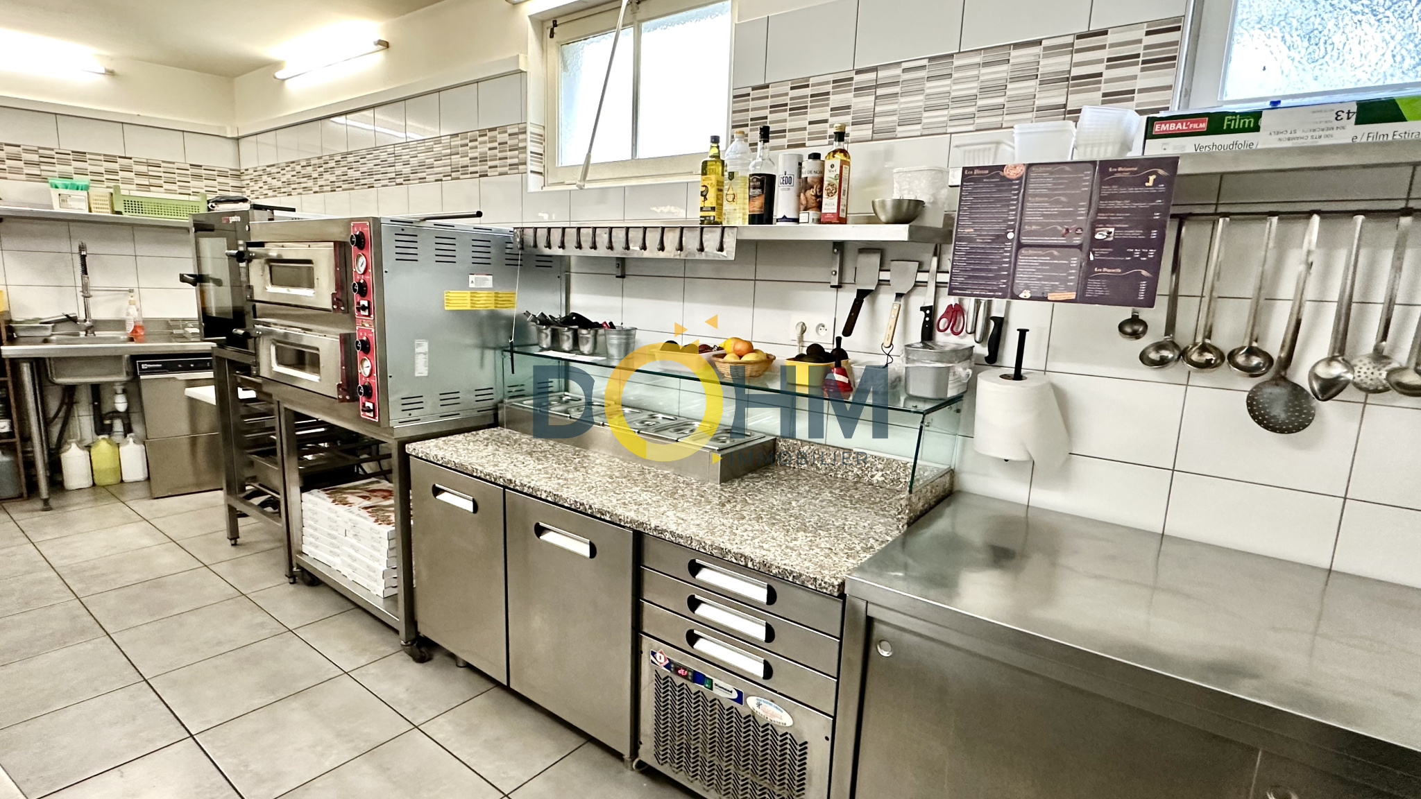 La cuisine, indépendante avec une réserve est entièrement équipée en matériel professionnel, prête à l'emploi pour une reprise immédiate. Un espace sanitaire avec lave-mains, complète les installations.