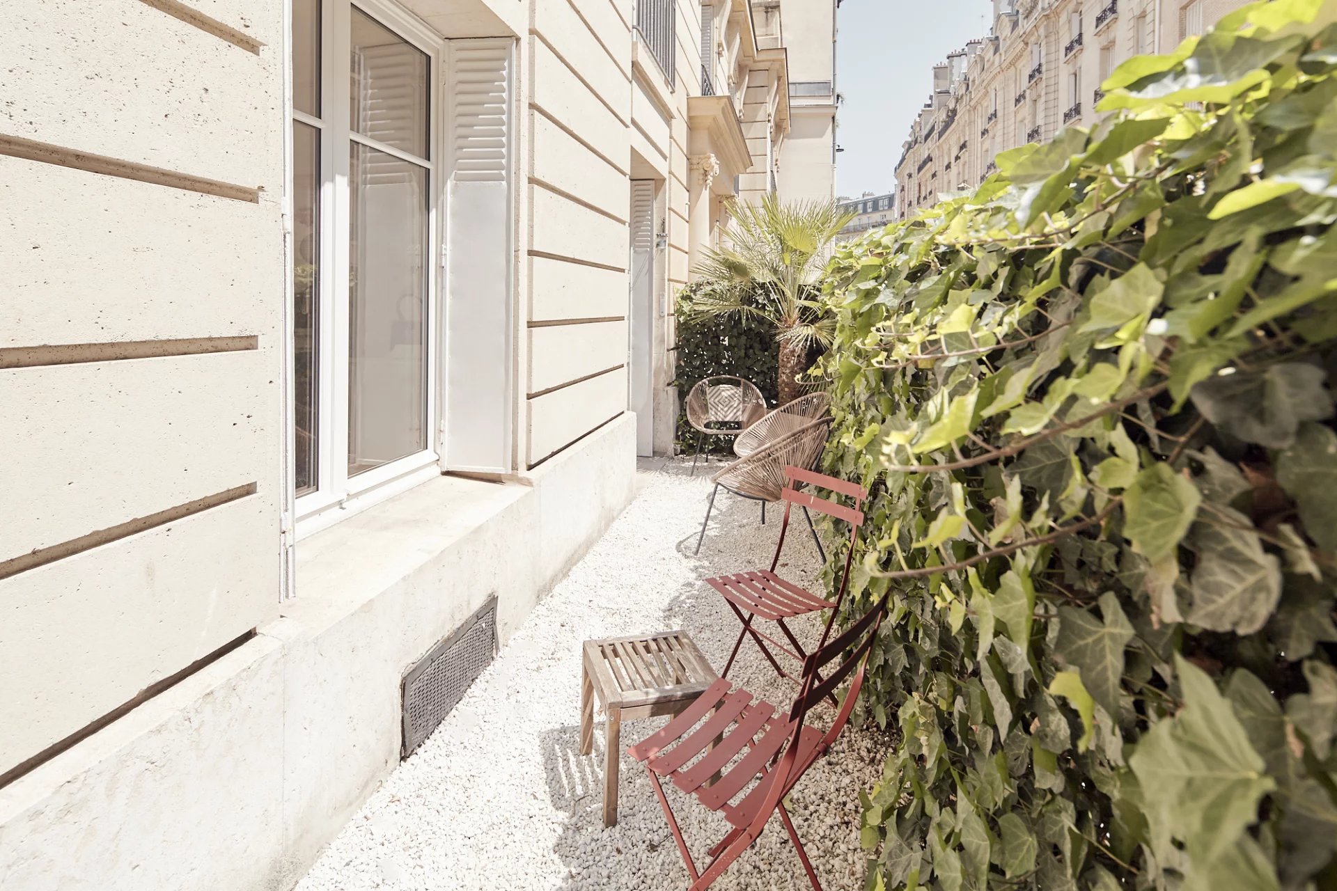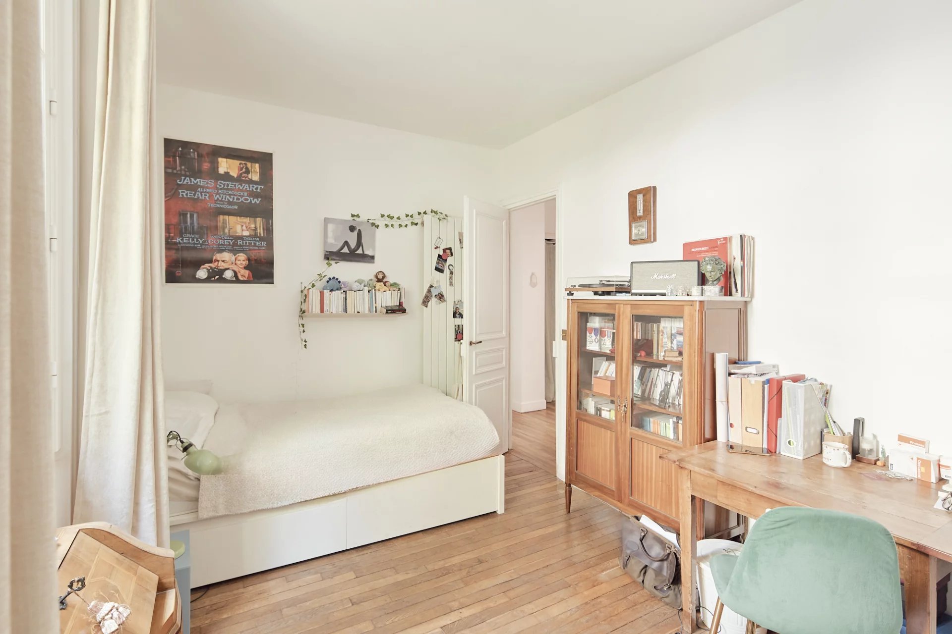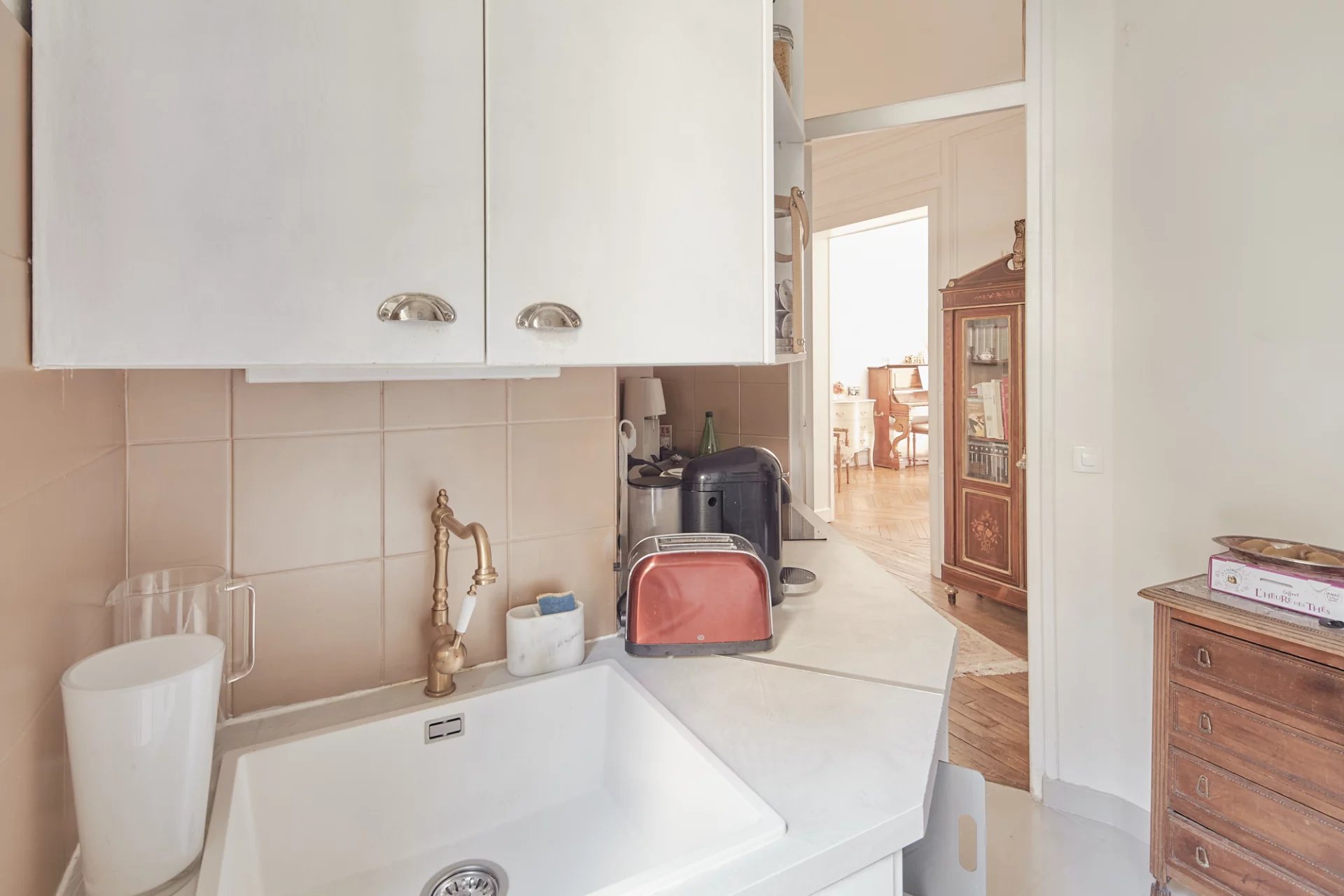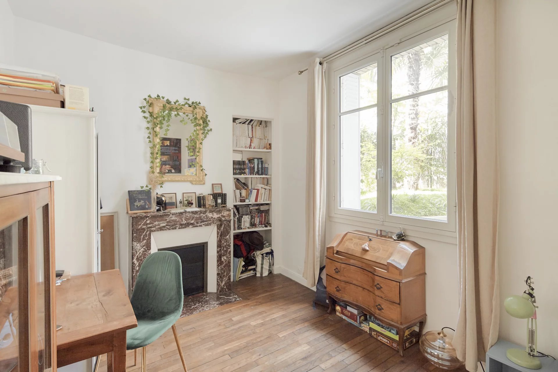 Jasmin - Dans une jolie rue calme à proximité des commerces de Passy, d’Auteuil et de l’avenue Mozart, au sein d’un immeuble 1912 de standing sécurisé et aux parties communes parfaitement tenues, un superbe appartement Haussmannien de 100m2 bordé de terrasse et jardins d'environ 60m2. Cet appartement avec parquet en point de Hongrie, moulures et cheminées dans toutes les pièces, très lumineux et offrant de beaux volumes grâce à 3m10 de hauteur sous plafond, se compose d’une agréable entrée desservant, en étoile : un séjour orienté Sud-Est donnant par de grandes portes-fenêtres sur un premier jardinet d’environ 20m2 séparé de la rue par une haie, une salle à manger, 3 grandes chambres de 14, 16 et 12m2, deux salles d’eau, un wc séparé, une buanderie, et une cuisine séparée (possible d’ouvrir sur la salle à manger) dont la porte-fenêtre dévoile le second jardin/terrasse privatif de 40m2 au calme absolu. Une chambre de service de 10m2 louable et accessible par ascenseur et une double cave complètent ce bien.