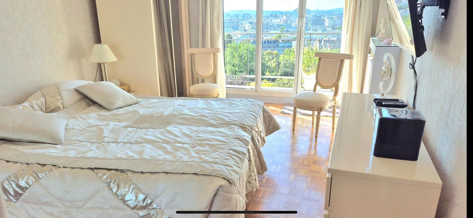 Au sein d'une copropriété de standing, face au Parc des Buttes Chaumont, offrant une vue spectaculaire à 180° sur le Sacré Coeur , la Tour Eiffel,les Invalides, la Défense et le Mont Valérien . Cet appartement familial traversant dispose de 149m², complété par un balcon de 14m², est situé en étage élevé par ascenseur. Il comprend un triple séjour avec cheminée, une cuisine équipée séparée, 3 chambres avec une possibilité d'ajouter 2 chambres supplémentaires. Vous trouverez également une salle de bain, une salle d'eau toutes 2 disposant de lumière naturelle, ainsi que 2 dressing, une lingerie et 2 toilettes. Profession libérale possible et 2 entrées indépendantes. En sous sol, 2 caves et un double box. Les charges de copropriété comprennent le chauffage, eau froide et l'eau chaude ainsi que le gardien pour un montant mensuel de 640€. 62 lots principaux. Pas de procédure en cours. Montant estimé des dépenses annuelles d'énergie pour un usage standard entre 3340€ et 4570€ (prix des références énergies 2021/2022/2023) Nous vous rappelons que suite à l'article L.561-5 du code monétaire et financier, la copie de votre carte d'identité de tous les visiteurs vous sera demandé , si vous n'avez pas de copie , une photo de votre carte d'identité sera effectuée avant la visite.Nous vous remercions de faciliter cette demande avec votre conseiller.