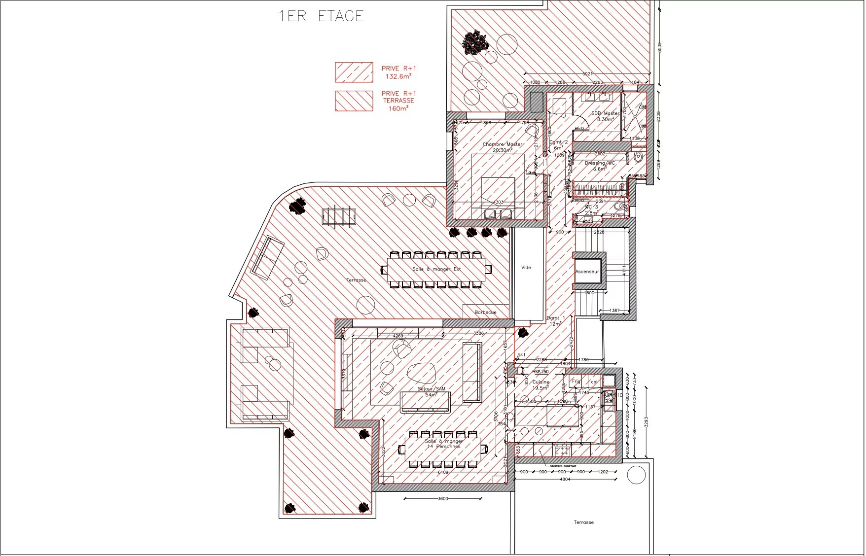 À l’étage supérieur, une vaste pièce de vie avec cuisine ouverte donnant sur une immense terrasse sans vis à vis de 109 m², une suite parentale avec accès direct à une seconde terrasse de 47 m², un dressing, une salle de bains et deux toilettes indépendants