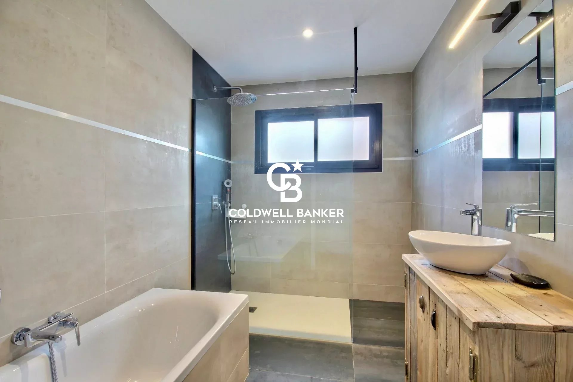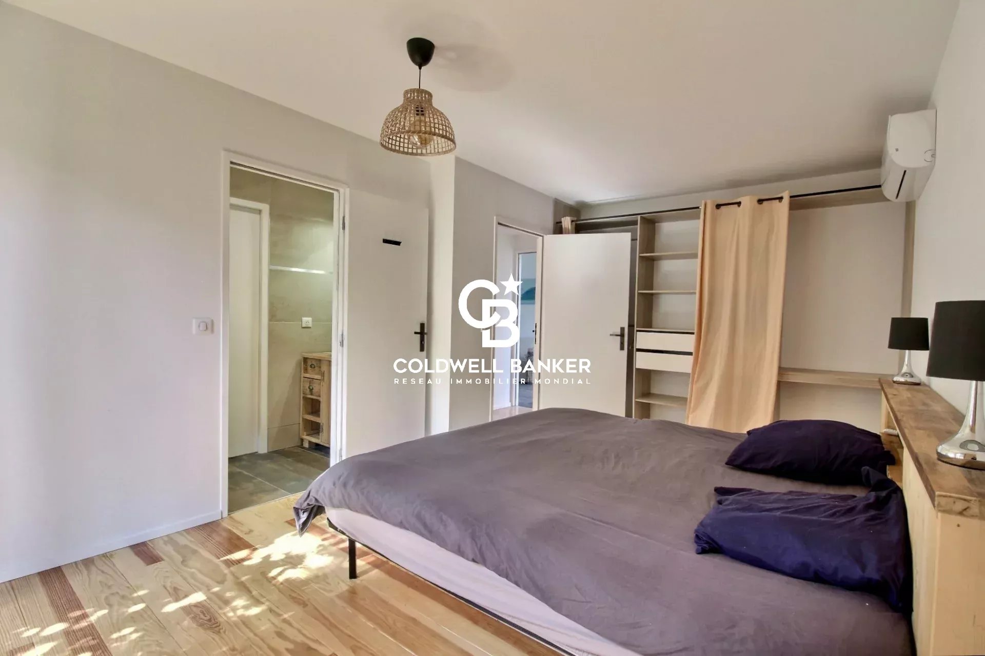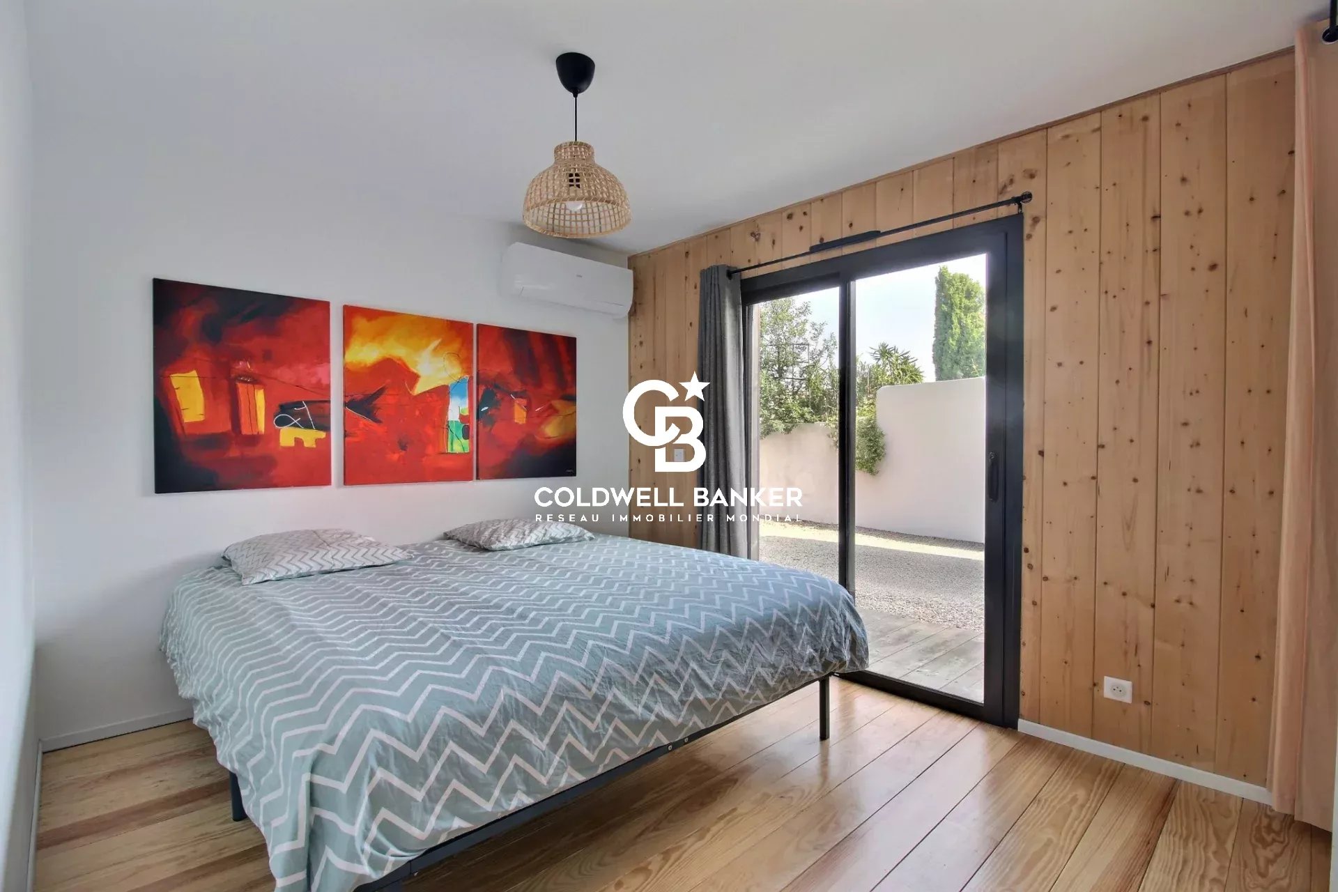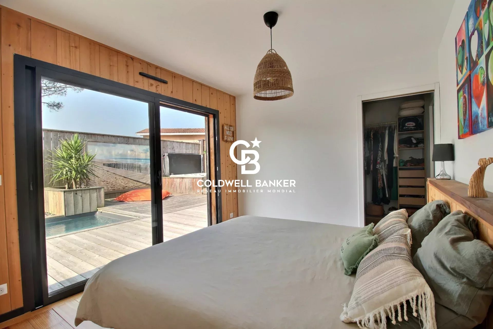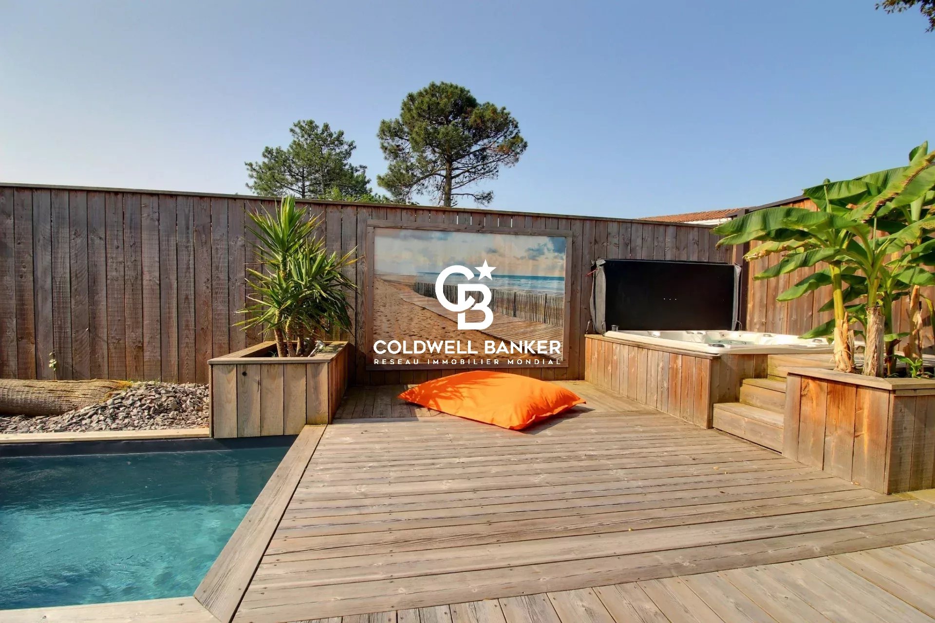 À l'abri des regards dans un quartier pavillonnaire prisé de Gujan-Mestras, cette villa unique en ossature bois déploie 264m² de surface totale de plain-pied. Dans le prolongement d'une grande entrée avec placards, vous découvrirez une vaste pièce de vie jouissant d'une triple exposition avec sa cuisine ouverte haut-de-gamme entièrement aménagée et équipée ainsi qu'un coin détente. Grâce à une baie à galandage de 5m, le salon s'ouvre entièrement sur l'espace piscine exposé plein Sud où s'offrent à vous un couloir de nage exceptionnel de 18m, un solarium, un spa sécurisé ainsi qu'un salon de jardin. Par sa disposition en étoile, accédez depuis la pièce de vie à la suite parentale avec son dressing et salle de bain, à l'opposé vous trouverez une salle de cinéma équipée avec du matériel de qualité. Dans un second espace nuit, quatre chambres, deux salles d'eau et une buanderie complètent les pièces de cette villa d'exception entièrement climatisée. Vous profiterez à l'extérieur d'un superbe jardin paysagé aux multiples essences d'arbres, une immense terrasse en pin où plusieurs coins ont été aménagés pour se relaxer et accueillir vos dîners entre amis ainsi qu'un grand garage de 50m². Cette maison est un véritable havre de paix et de dépaysement! DPE A (58kWh/m²/an) GES A (2kgCO2/m²/an) Estimation des coûts en énergie : 1 070-1 540€/an Prix de vente : 1 475 000€ HAI, les honoraires de 55 000€ sont à la charge de l'acquéreur et représentent 3,87% du prix. Pour obtenir plus de renseignements, contacter Céline HARTENSTEIN Agent Commercial Indépendant N°RSAC 987 559 929 N°RCP 127 100 479 Retrouvez tous nos biens sur IMMOBA Les informations sur les risques auxquels ce bien est exposé sont disponibles sur demande ou sur le site Géorisques : www.georisques.gouv.fr
