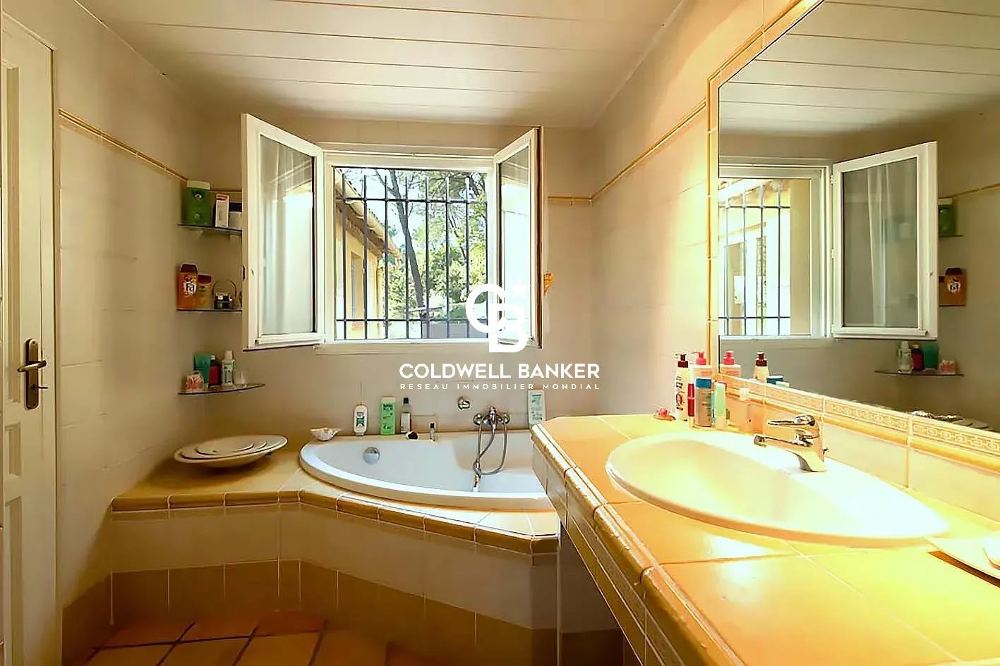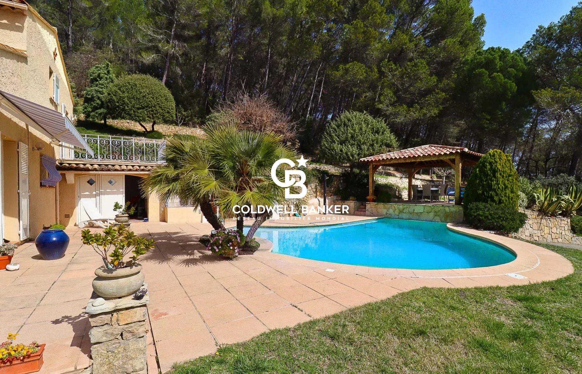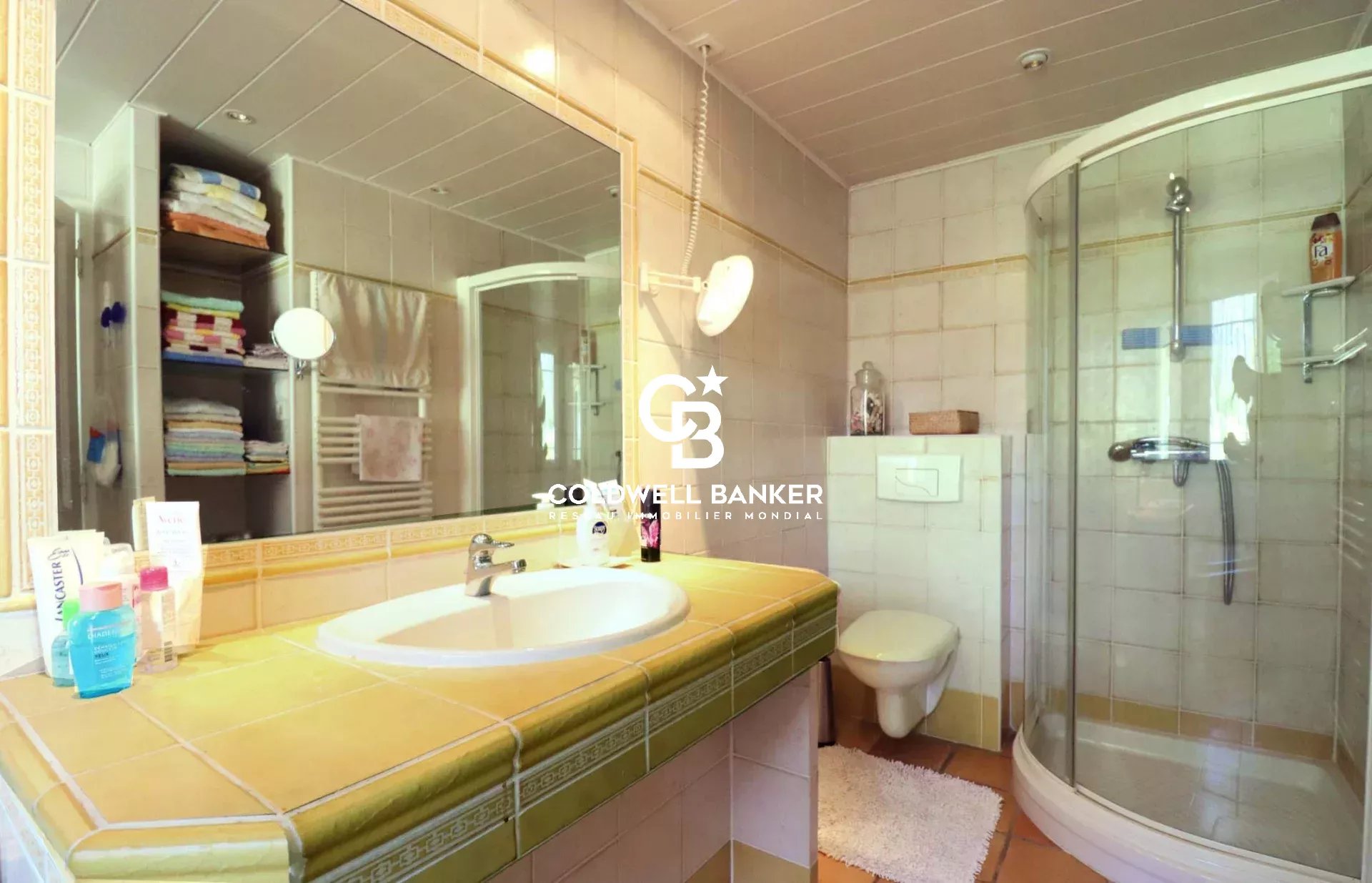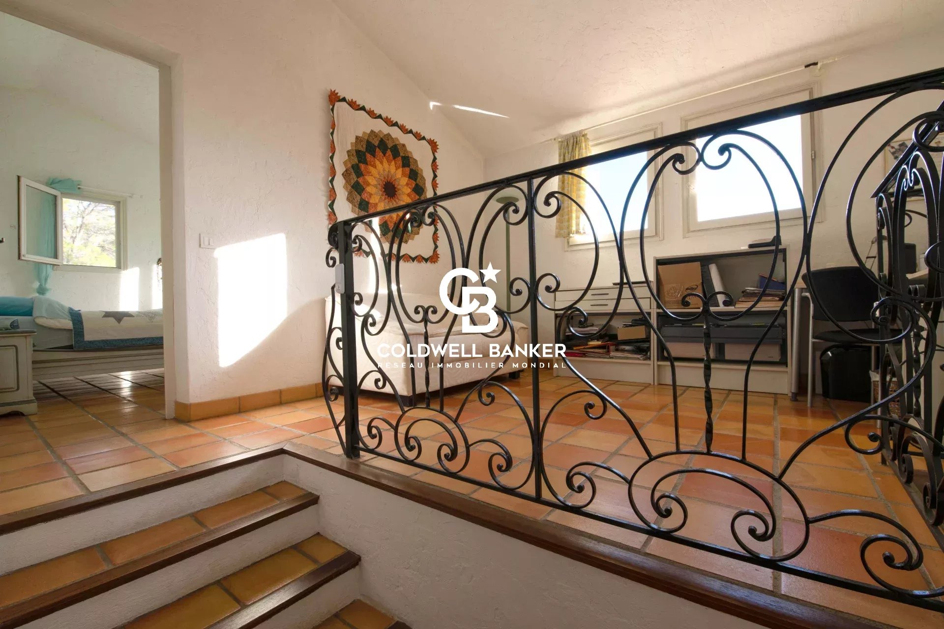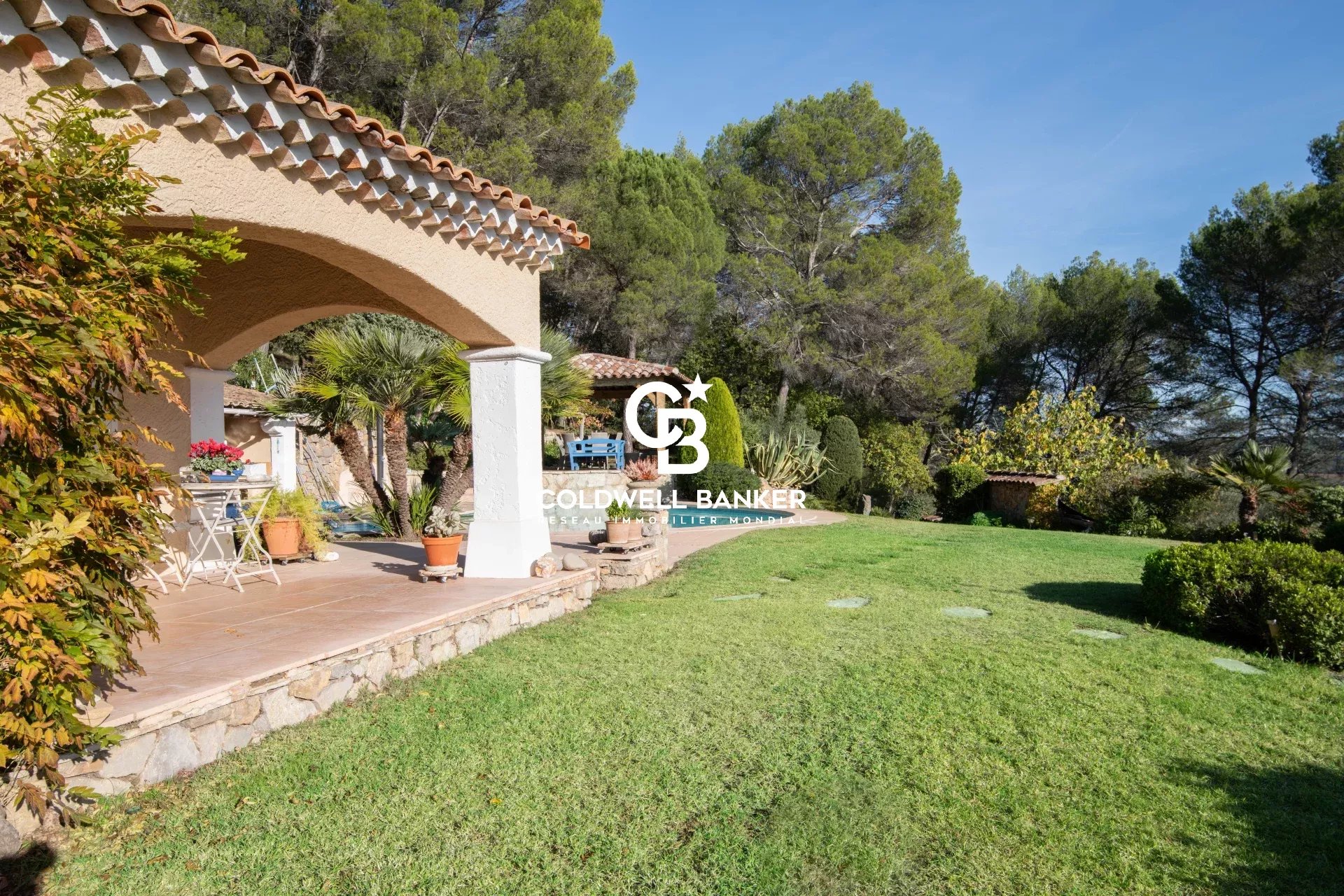 Véritable éden naturel, à l’abri des regards et sans vis-à-vis. La propriété domine Lorgues et ses environs, 1,6 ha d’une nature luxuriante, autour d’une Villa de 200 m2, plein sud, au calme, dotée d’un point de vue panoramique époustouflant. 7 pièces lumineux, rangements, huisserie de qualité et cheminée pour des espaces à vivre sereins. Rez-de-jardin : séjour, Salle à manger, cuisine équipée, cellier, buanderie, cave réfrigérée, SDB, WC, pergola Étage : bureau – 3 chambres climatisées avec terrasses privatives, SDB, toilettes Une dimension naturelle maitrisée, forgée par une empreinte humaine: Espaces paysagers structurés, murets en pierres, cheminements tracés, pins, oliveraies, multiples floraisons. Piscine au sel, terrasses, cuisine d’été, pool house, gloriette, patio & tonnelle en fer forgé, garage, Carpark. Sauna finlandais en pierre taillée, nombreux abris bois garage & et studio de 16 m2 Urbanisation possible : constructions à usage réceptif, évolution du mas … Une propriété rare, au sein d’un milieu naturel qui l’est tout autant