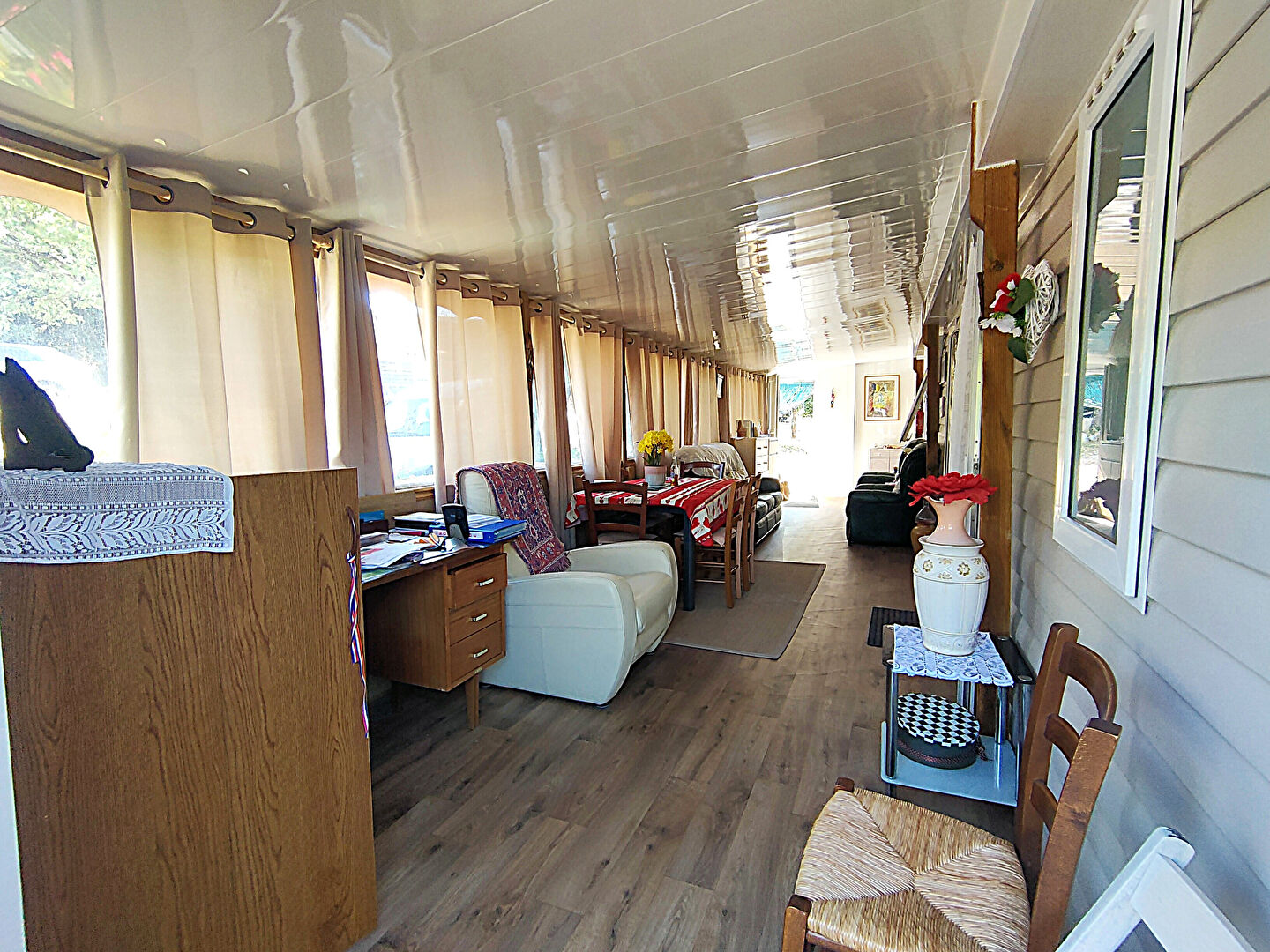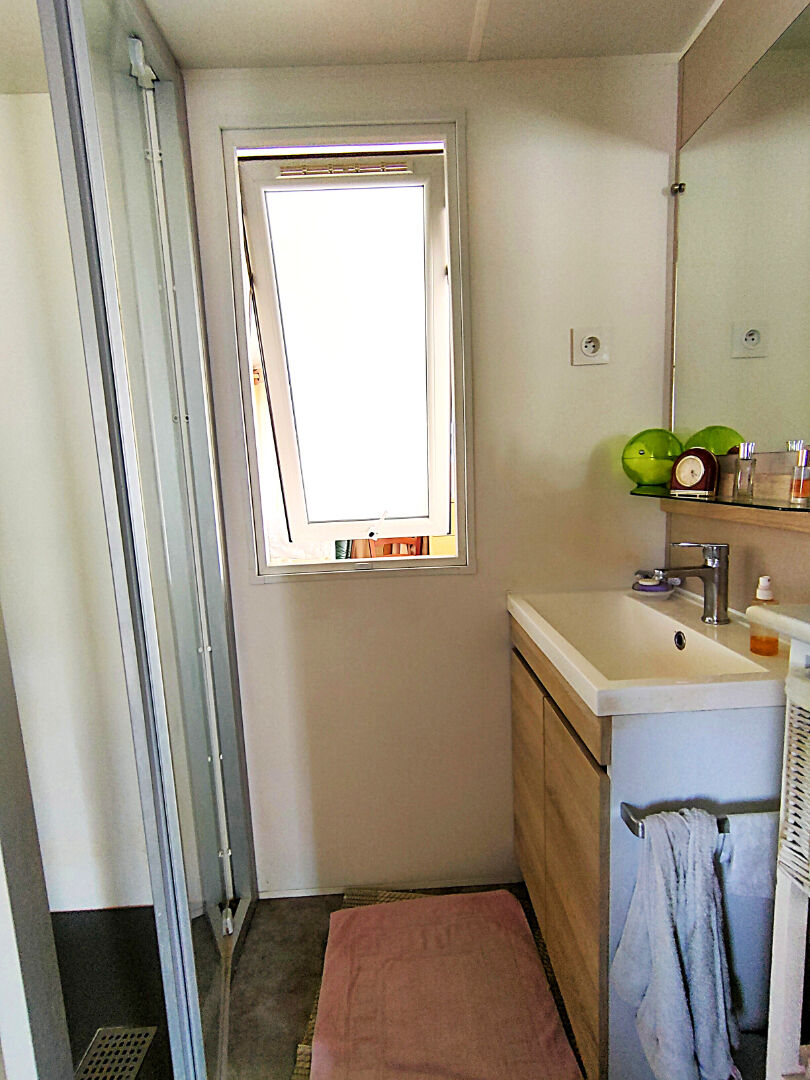 Mobil home (Irm violette) de 2022 d'environ 40 m² sur 267m² de terrain, en très bon état et composé d'une cuisine équipée donnant sur le salon/ séjour, de 3 chambres (dont une avec sa salle d'eau et son W.C.), d'une salle d'eau et d'un W.C. indépendant. L'espace de vie donne sur une grande véranda de 27m² . Cabanon de rangements en PVC, climatisation réversible, double vitrage en PVC. Le bien fait partie d'une copropriété de 91 lots. Pas de procédure en cours. Le bien objet des présentes ne peut nullement être destiné à une occupation permanente et/ou à titre de résidence principale. Copropriété de 91 lots - dont 91 lots habitation. (Pas de procédure en cours). Charges annuelles : 100 euros. Laurent RENERIC (EI) Agent Commercial - Numéro RSAC : 940829732 - Draguignan.