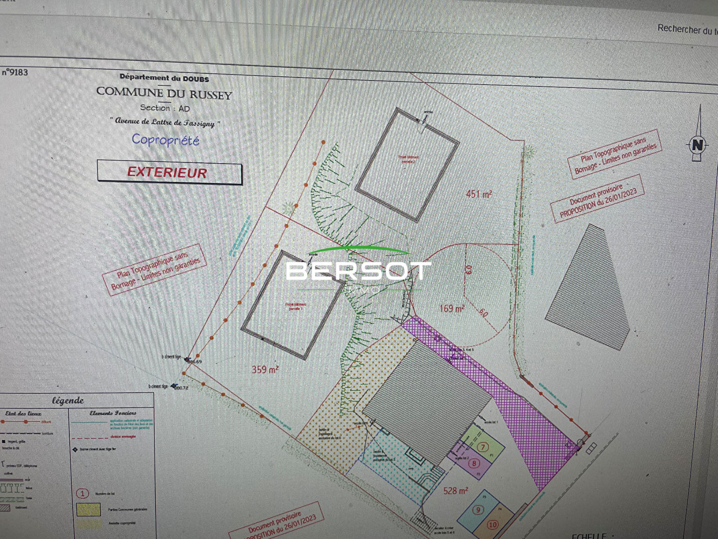 Bersot Immobilier Morteau vous propose au Russey, cette parcelle de terrain brut de 979 m², avec vue dégagée et proche de toutes commodités ( hyper U / pharmacie / médecin ), disponible de suite. Cette parcelle est proche des réseaux EAU/EDF/TELECOM . Un permis d'aménager a été déposé et obtenu. Il est purgé de tout recours des tiers . Il est possible de créer un projet immobilier sur toute la parcelle ou de la diviser en deux comme sur le plan ci-joint (une parcelle de 443 m² et une parcelle de 535 m²). Actuellement la division parcellaire n est pas actée sur le cadastre ce qui laisse encore toutes les possibilités . Le prix du terrain est 100 euros / m² soit 97 900 euros. Possibilité de lotir (frais en plus : environ 10 000 euros). Pour plus d'informations ou pour organiser une visite, n'hésitez pas à contacter Edith VILLIER au 06 35 29 05 53 ou par mail : evillier@bersot.net