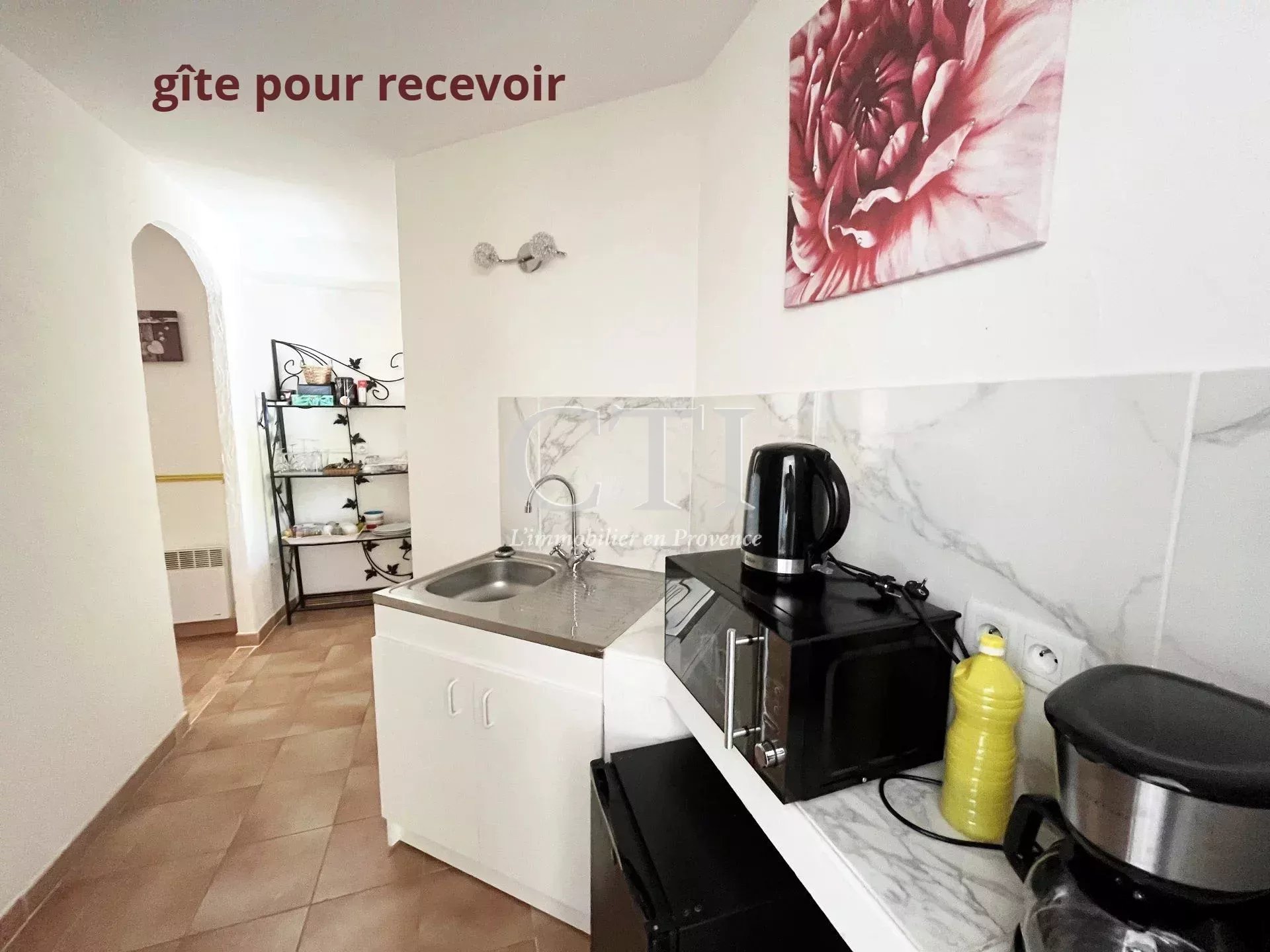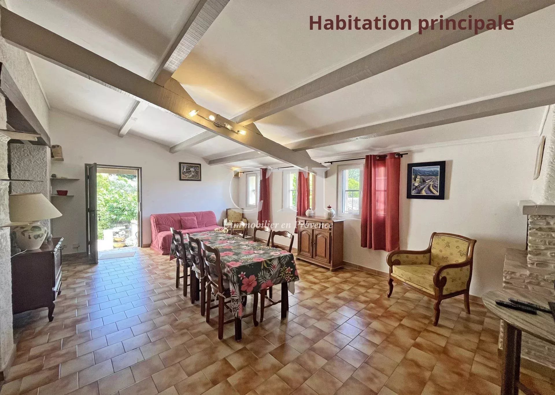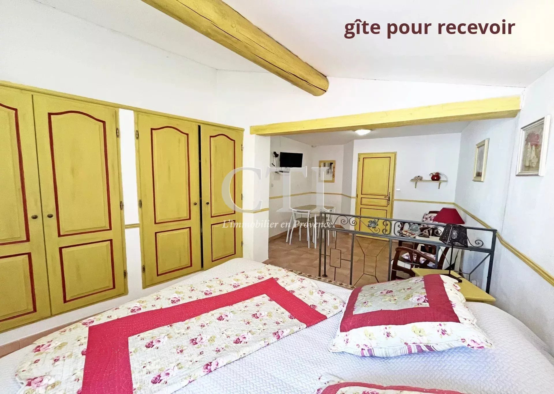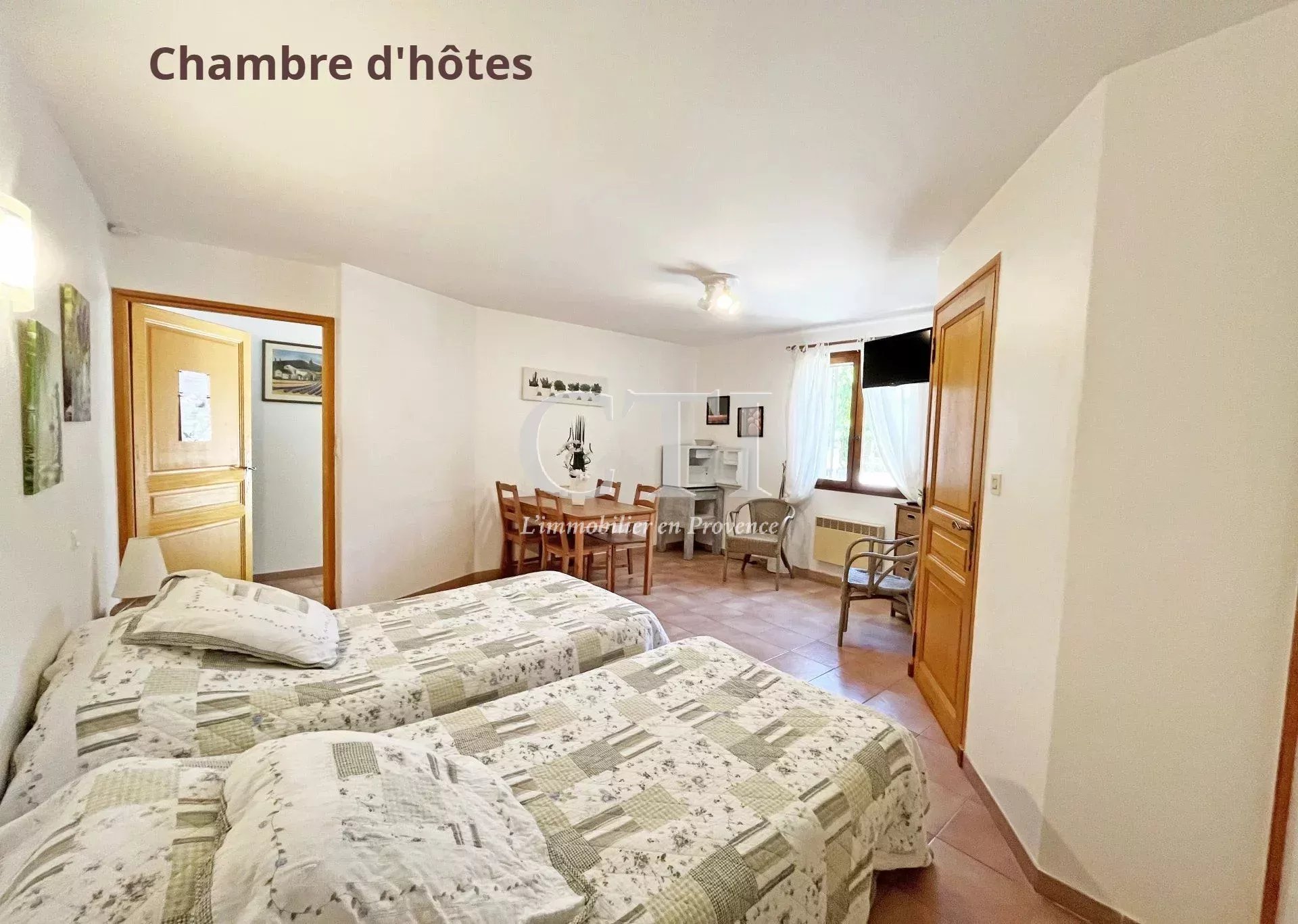 À proximité de Vaison-la-Romaine – Opportunité rare ! Superbe ensemble immobilier de 385 m² habitables, niché dans un secteur recherché au pied des Dentelles de Montmirail, comprenant : * Une habitation principale confortable, * Un gîte indépendant, * Cinq chambres d’hôtes prêtes à l’exploitation L’ensemble s’articule autour d’un terrain paysager de 1 671 m² avec piscine, offrant un cadre de vie exceptionnel et un fort potentiel de rentabilité. Idéal pour développer une activité touristique saisonnière ou pour un projet de reconversion clé en main. À découvrir sans tarder !