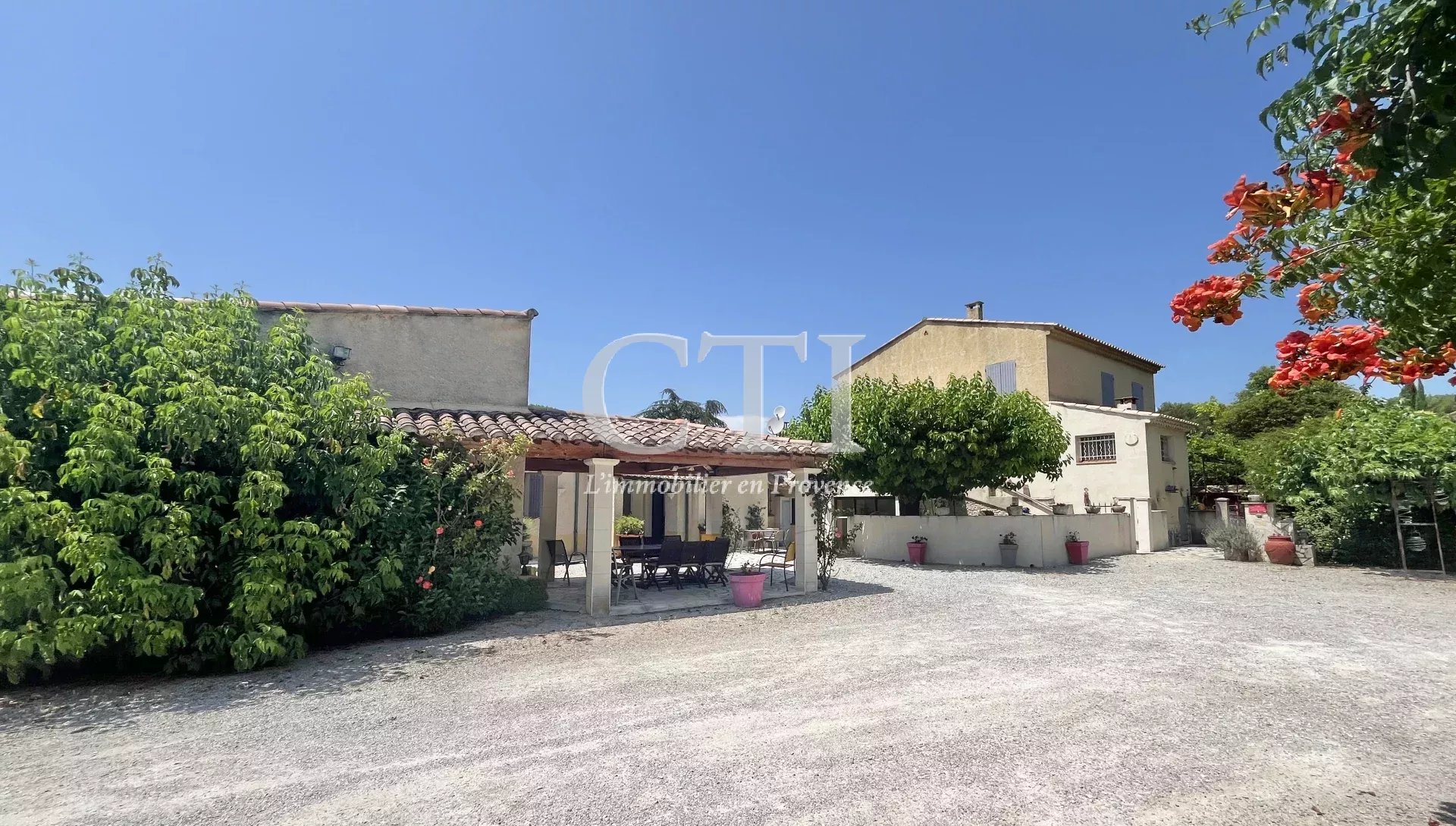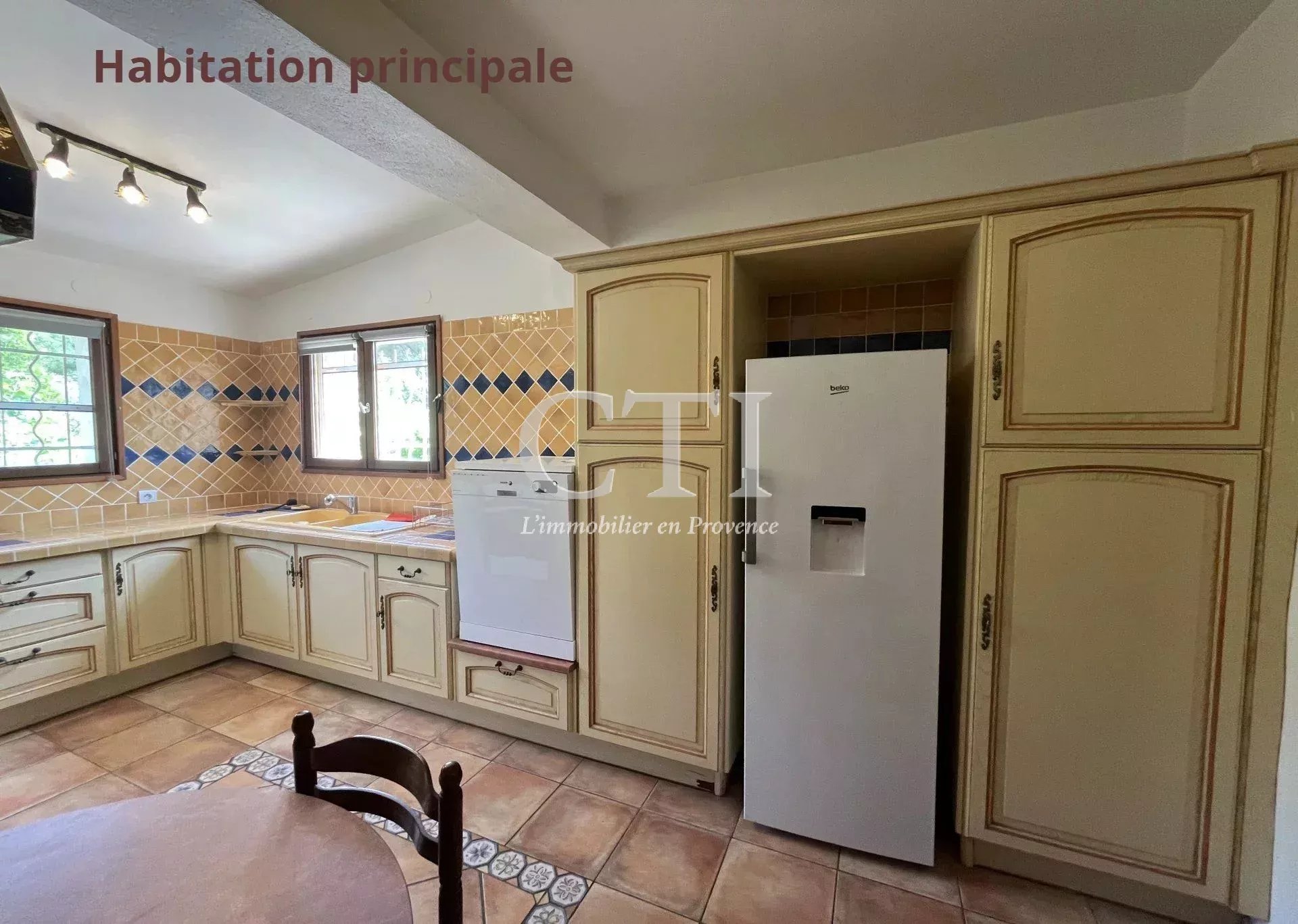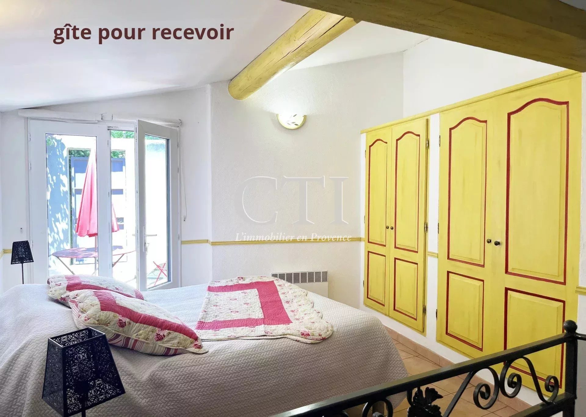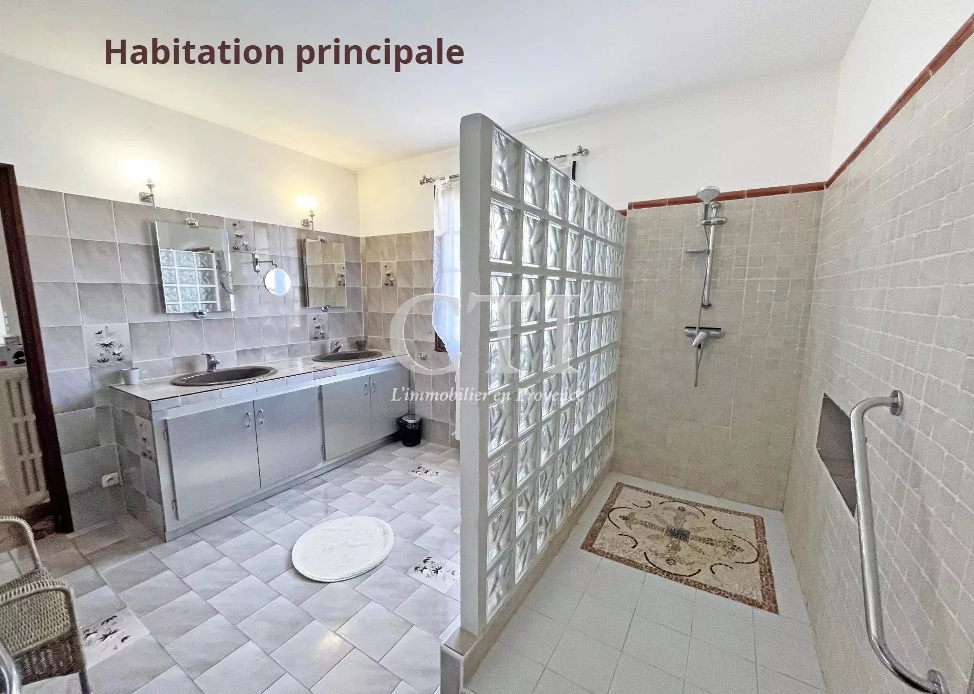 À proximité de Vaison-la-Romaine – Opportunité rare ! Superbe ensemble immobilier de 385 m² habitables, niché dans un secteur recherché au pied des Dentelles de Montmirail, comprenant : * Une habitation principale confortable, * Un gîte indépendant, * Cinq chambres d’hôtes prêtes à l’exploitation L’ensemble s’articule autour d’un terrain paysager de 1 671 m² avec piscine, offrant un cadre de vie exceptionnel et un fort potentiel de rentabilité. Idéal pour développer une activité touristique saisonnière ou pour un projet de reconversion clé en main. À découvrir sans tarder !