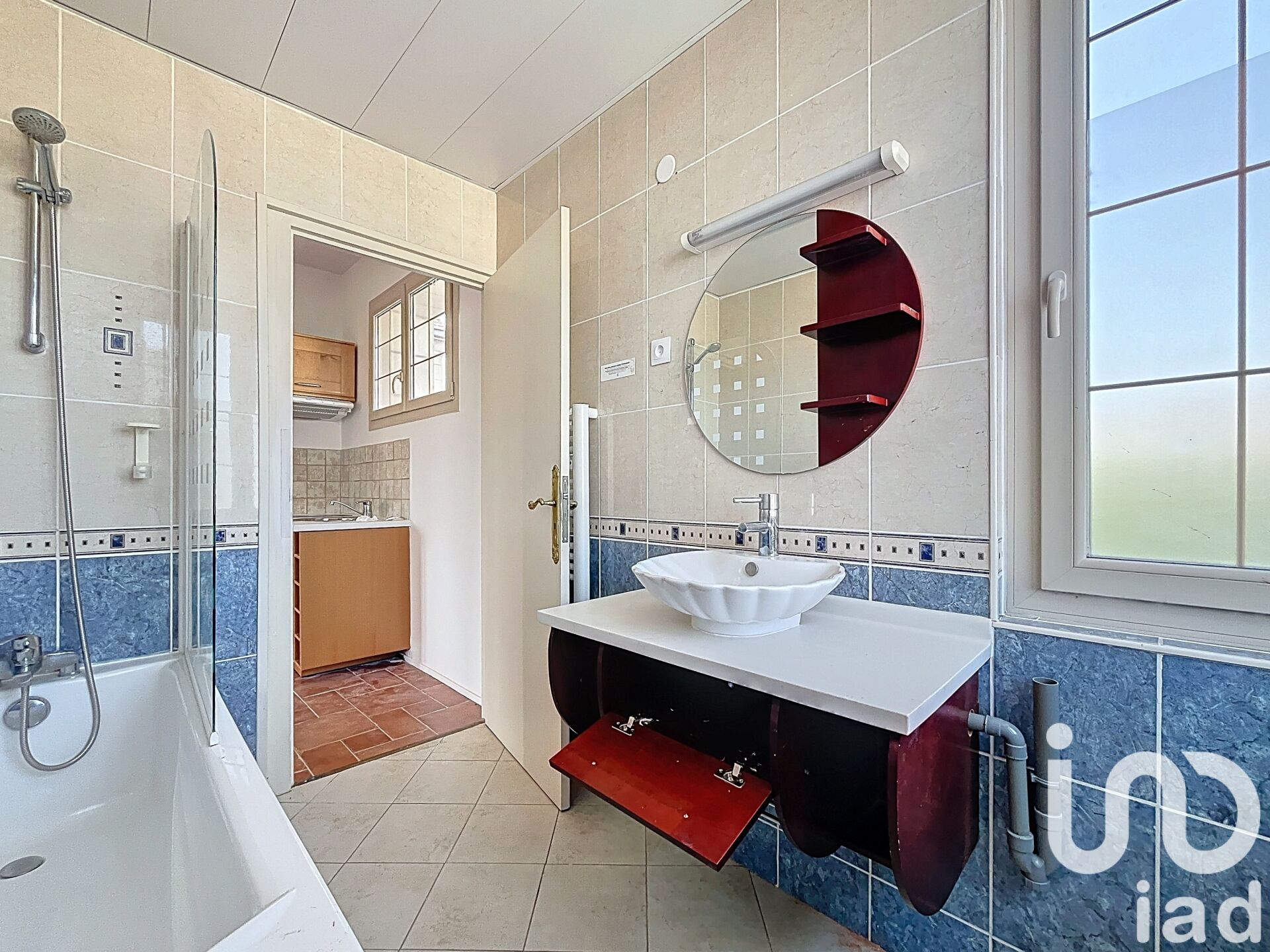 => une SdB avec baignoire, vasque + miroir, emplacement machine à laver