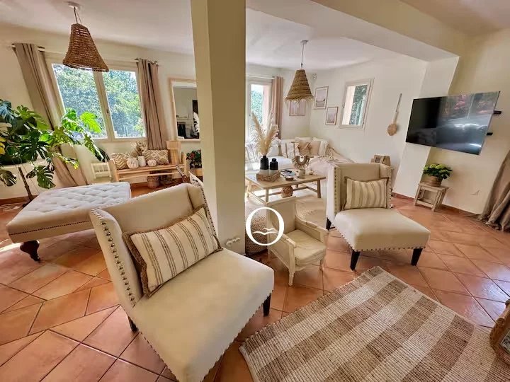 Nichée entre Gassin et La Croix Valmer, cette villa offre un équilibre parfait entre élégance et confort. Elle développe environ 150 m² habitables sur un vaste terrain arboré de 4 000 m², garantissant intimité et espace. Dès l’entrée, le ton est donné avec un hall accueillant desservi par un ascenseur, menant à une chambre de plain-pied ainsi qu’à des sanitaires avec douche pour les invités. Le salon baigné de lumière, doté d’une cheminée, crée une atmosphère chaleureuse en toute saison, tandis que la salle à manger attenante s’ouvre sur une terrasse orientée sud-est, parfaite pour les repas en plein air. La cuisine, moderne et bien équipée, bénéficie d’un accès direct au garage, un véritable plus au quotidien. À l'étage, deux chambres généreuses avec dressings offrent un bel espace nuit, complétées par une troisième chambre idéale pour accueillir famille ou amis, ainsi qu'une salle de bains confortable. L’extérieur n’est pas en reste : une belle piscine entourée de plages invite à la détente, et le jardin paysager soigneusement entretenu prolonge l’harmonie du lieu. cette maison est une opportunité rare sur le secteur, à découvrir sans tarder
