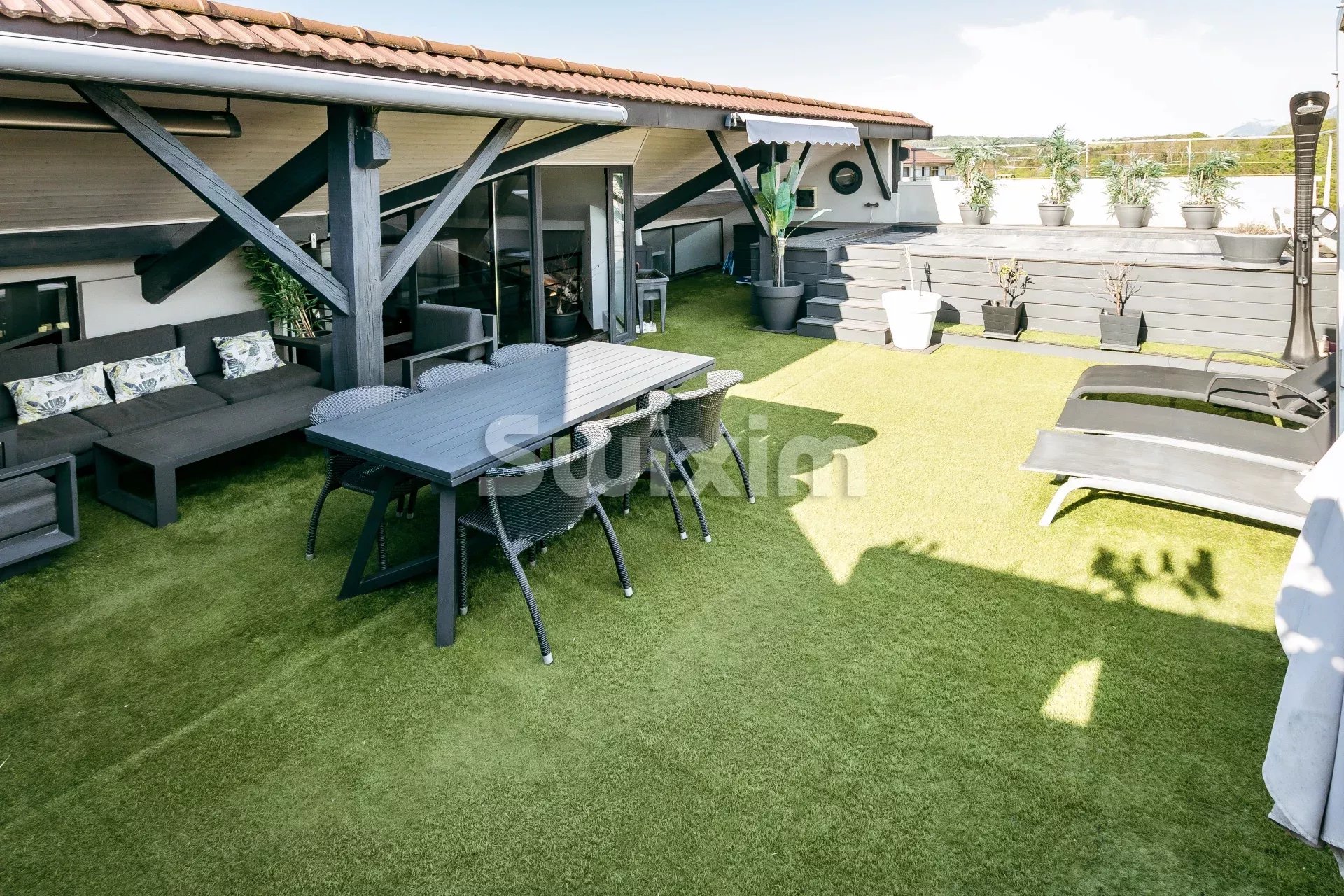 Ref 146GP, Rare à la vente Annecy Nord, à proximité immédiate de l’autoroute et des commerces, ce loft haut de gamme de 310 m² habitables offre des prestations exceptionnelles dans un cadre de vie surprenamment calme. Dès l’entrée, vous serez séduit par la pièce de vie impressionnante de 138 m² comprenant un vaste séjour, une salle à manger et une cuisine ouverte entièrement équipée. Ce bien d’exception dispose de quatre chambres spacieuses, d’un espace bien-être avec sauna, ainsi qu’une salle dédiée au sport ou aux jeux. Véritable prolongement du lieu de vie, une grande terrasse sur le toit vous attend, avec piscine, cuisine d’été et espace détente, idéale pour profiter des beaux jours en toute intimité. Ce loft unique combine modernité, confort et volumes hors normes, dans un environnement privilégié à seulement quelques minutes de Genève ou d’Annecy. Un bien rare à découvrir sans attendre!
