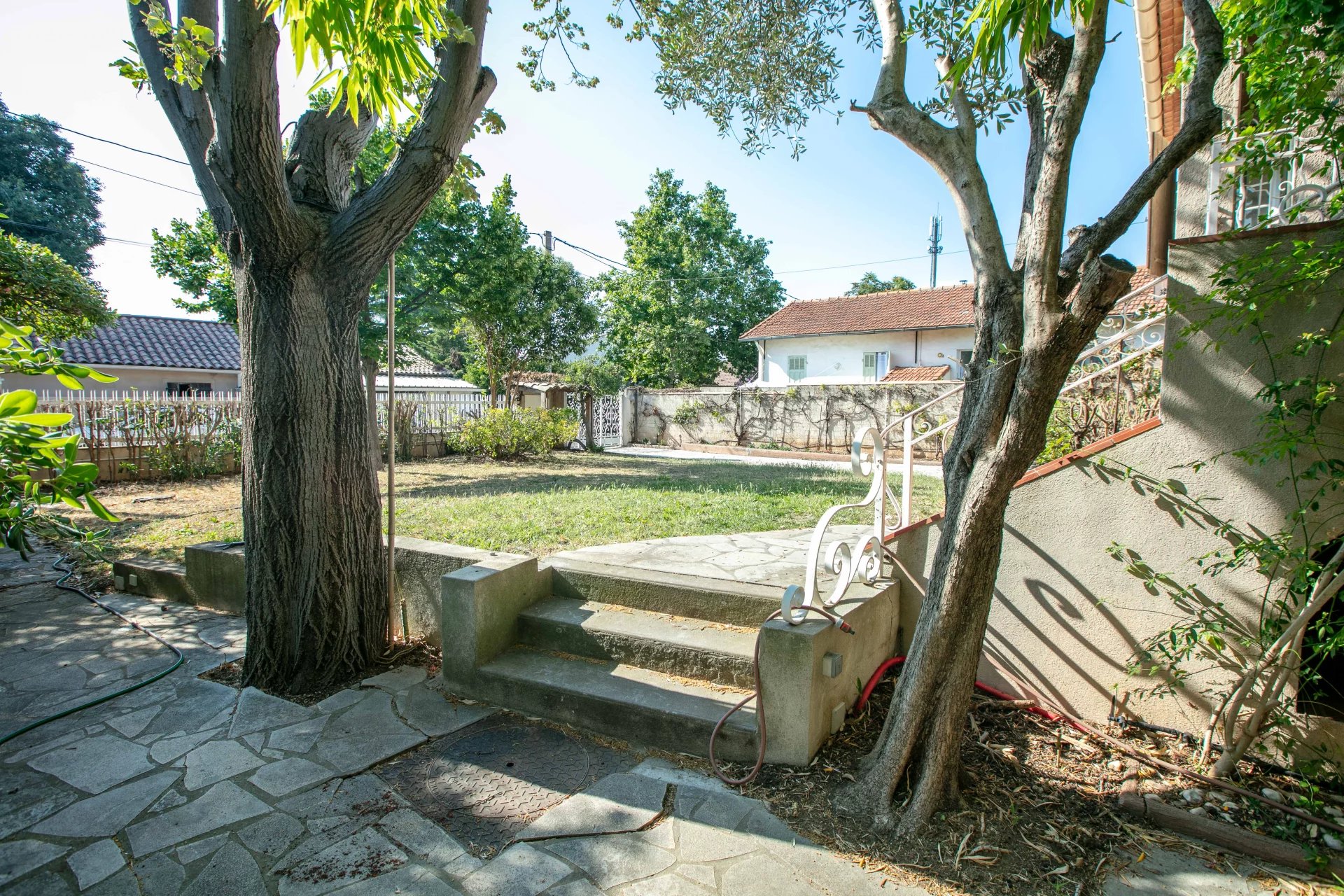 Dans secteur très prisé, sur un très beau terrain plat de 612m², maison des années 1980 de 200m² habitables + atelier + garage et sous-sol. Le bien se compose d'un séjour, d'une cuisine indépendante, d'une jolie pièce pouvant faire office de bureau ou de salle de jeux en mezzanine, de 3 chambres dont une avec sa salle d'eau et son bureau. Une salle de bain avec baignoire et douche. Nombreux rangements dont un beau dressing. Puis un atelier, une buanderie, un garage et une cave. À noter la présence d'un forage.