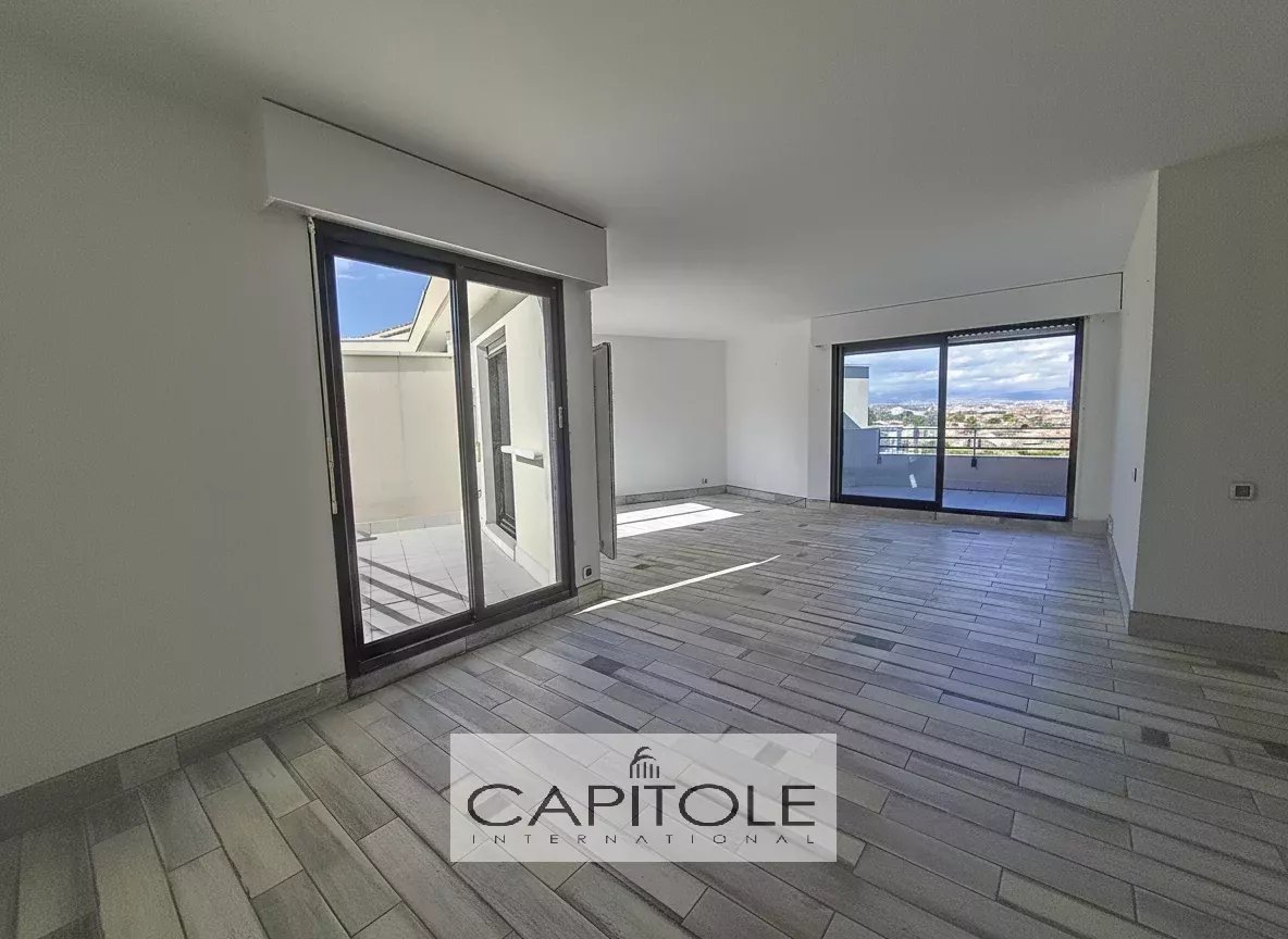 EXCLUSIVITE CAPITOLE: Duplex de 4 pièces avec vue mer panoramique de 98 m² en dernier étage. Vaste séjour ouvrant sur 2 terrasses avec vue mer, cuisine, 3 chambres, 2 salle d'eau, 2 wc. 2 garages, 2 caves. Résidence de standing sécurisée avec parc, piscine et tennis au calme absolu ! Réf: CB3768VA Les informations sur les risques auxquels ce bien est exposé sont disponibles https://georisques.gouv.fr/