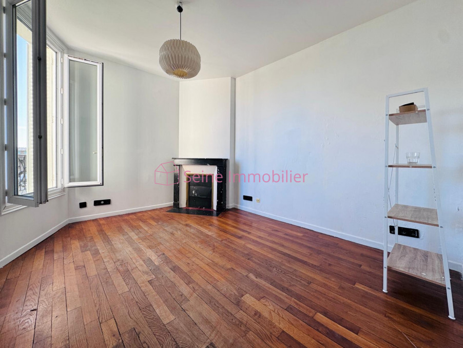 L'appartement se compose d'une entrée, d'un séjour duquel vous bénéficierez d'une vue dégagée et lumineuse avec parquet et moulures, d'une grande chambre de 12m2 ainsi que d'une salle d'eau avec WC séparé.