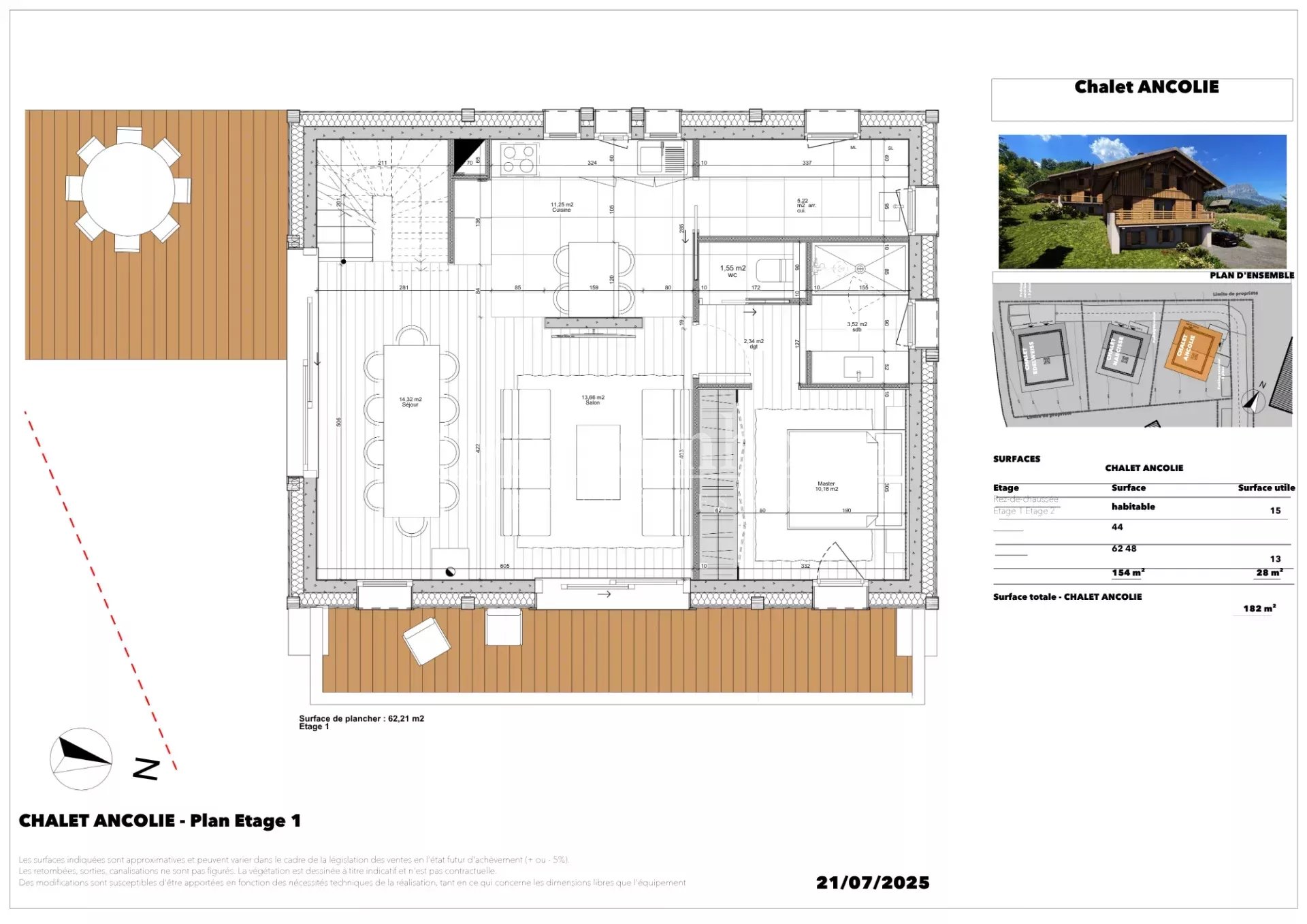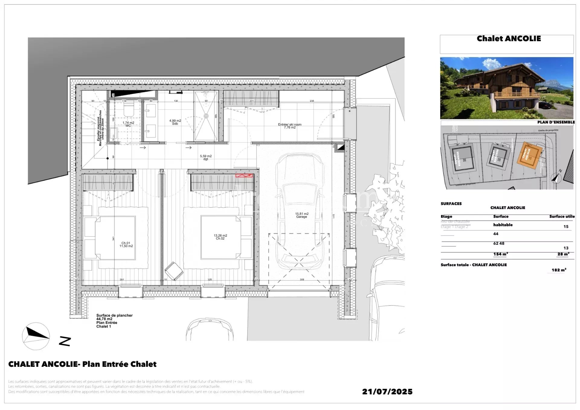 EXCEPTIONNEL : MAGNIFIQUE CHALET - Vue Mont Blanc à Combloux (74920) dans un secteur calme et recherché. Ces chalets sont construits dans un environnement privilégié au coeur d'un hameau préservé avec une vue imprenable sur la chaine du Mont blanc et la chaine des Fiz. Le programme comprends 3 chalets, le premier sera livré en 2026 puis les deux autres suivront. Les travaux ont commencé. Ce chalet indépendant répartit sur 3 niveaux a une superficie totale de 182 m². Il se compose ainsi : Au rez-de-chaussée : Un hall d'entrée/skiroom, 2 belles chambres, une grande salle de bain avec double vasque, toilettes séparés, garage. Au 1er étage : Vous trouverez un grand salon/séjour avec cheminée donnant sur deux terrasses très bien exposées avec une vue imprenable sur le Mont-Blanc, les aiguilles de Chamonix et la chaine des Fiz. La cuisine est entièrement équipée et donne sur le salon. Vous avez également un cellier. Deux grandes baies vitrées apportent de la lumière à cette grande pièce de vie et facilitent l'accès aux terrasses. A cet étage se trouve également une chambre master avec dressing et salle d'eau. Toilettes séparés. La master donne sur la terrasse ce qui vous permets de profiter pleinement de la vue. Au 2eme étage : vous pourrez découvrir deux belles chambres, une salle d'eau avec toilettes et un bel espace TV/home cinéma. Le chalet bénéficie, en plus de son garage de 16 m², de deux places de parking extérieures. Les finitions et matériaux sont haut de gamme. La notice descriptive est envoyée sur demande. N'hésitez pas à nous contacter pour toute d'information sur ce chalet ou pour organiser une visite. Ce chalet sera un parfait pied à terre à la montagne dans un environnement exceptionnel ou une résidence principale idéale - Genève est à moins d'une heure, Megève à 15 minutes et Lyon à 2h. Combloux, village-station fait partie du domaine skiable "Les Portes du Mont Blanc" qui relient Combloux à Megève - le Jaillet, La Giettaz et Cordon.