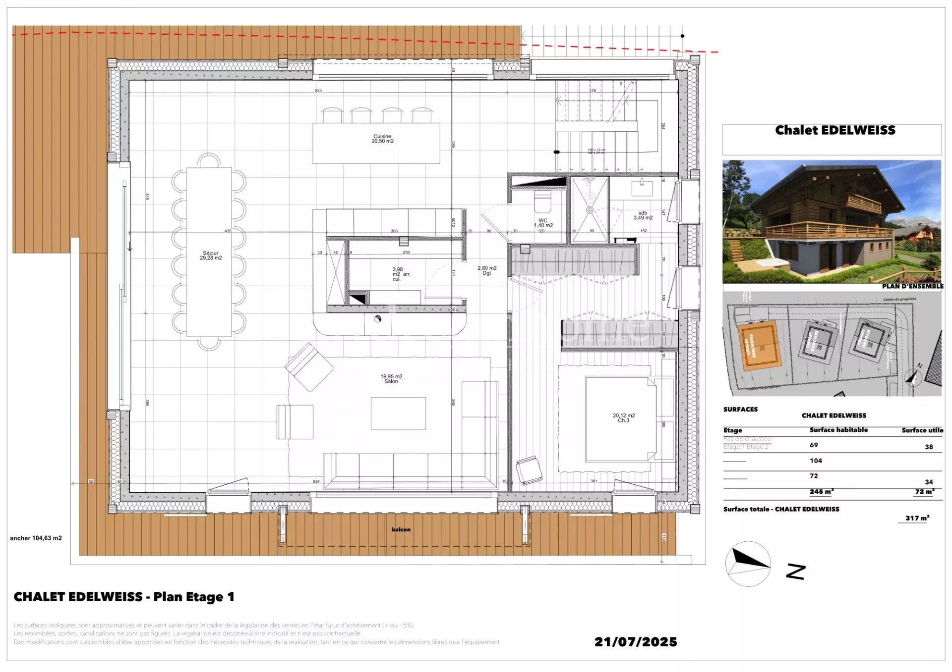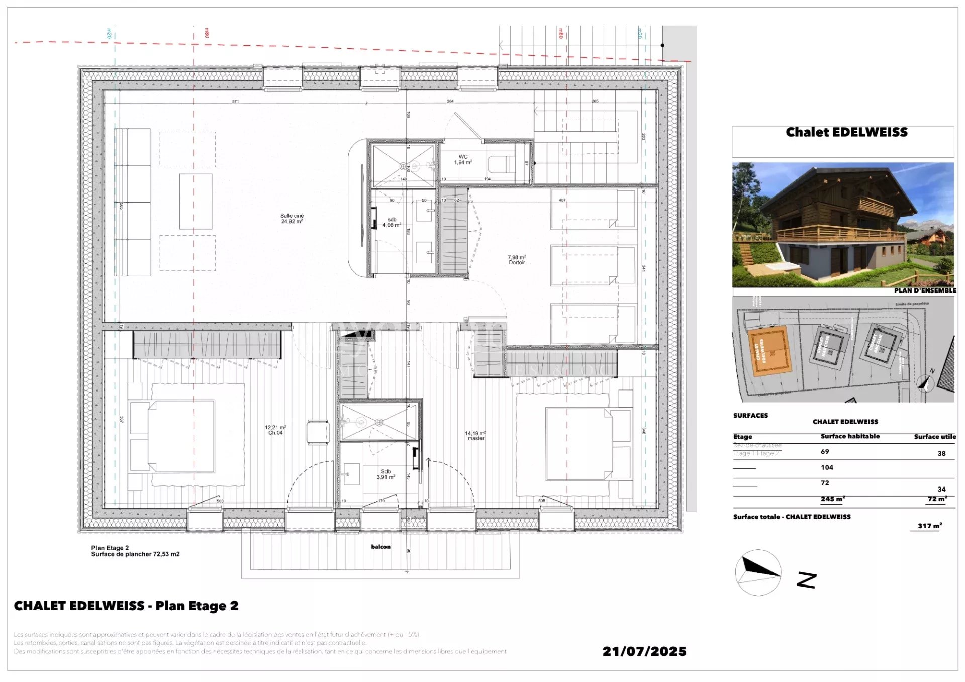 LUXUEUX CHALET 6 CHAMBRES + SPA - Vue imprenable sur le Mont Blanc à Combloux (74920) Ce chalet très complet est le plus grand du programme de trois chalets. Ils sont construits dans un environnement privilégié au coeur d'un hameau préservé avec une vue imprenable sur la chaine du Mont blanc et la chaine des Fiz. Le premier chalet sera livré en 2026 puis les deux autres suivront. Les travaux ont commencé. Ce très beau chalet indépendant répartit sur 3 niveaux a une superficie totale de 317m². Il se compose ainsi : Au rez-de-chaussée : Vous trouverez un grand garage double pour deux voitures, un hall d'entrée, un ski room, une buanderie, toilettes séparés, une salle de gym/spa et une chambre avec sa salle d'eau. A l'étage principal : Vous trouverez un très grand salon/séjour avec cheminée donnant sur une belle terrasse entourant le chalet très bien exposée avec une vue imprenable sur le Mont-Blanc, les aiguilles de Chamonix et la chaine des Fiz. La cuisine est entièrement équipée et donne sur le salon. Deux grandes baies vitrées apportent de la lumière à cette grande pièce de vie et facilitent l'accès à la terrasse. A cet étage se trouve également une chambre master avec dressing et salle d'eau. Toilettes séparés. La master donne sur la terrasse ce qui vous permets de profiter pleinement de la vue. Au 2eme étage : vous pourrez découvrir deux belles chambres dont une suite avec dressing et salle de bain, un dortoir et une salle d'eau. Toilettes séparés. Vous avez également un espace TV/home cinéma de plus de 21m². Le chalet bénéficie d'un garage double de 36 m² accessible depuis l'intérieur, ainsi que 3 places extérieures, 2 balcons et une belle terrasse de 35 m² donnant sur le jardin. Les finitions et matériaux sont haut de gamme. La notice descriptive est envoyée sur demande. N'hésitez pas à nous contacter pour toute d'information sur ce chalet ou pour organiser une visite. Ce chalet sera un parfait pied à terre à la montagne dans un environnement exceptionnel ou une résidence principale idéale - Genève est à moins d'une heure, Megève à 15 minutes et Lyon à 2h. Combloux, village-station fait partie du domaine skiable "Les Portes du Mont Blanc" qui relient Combloux à Megève - le Jaillet, La Giettaz et Cordon.