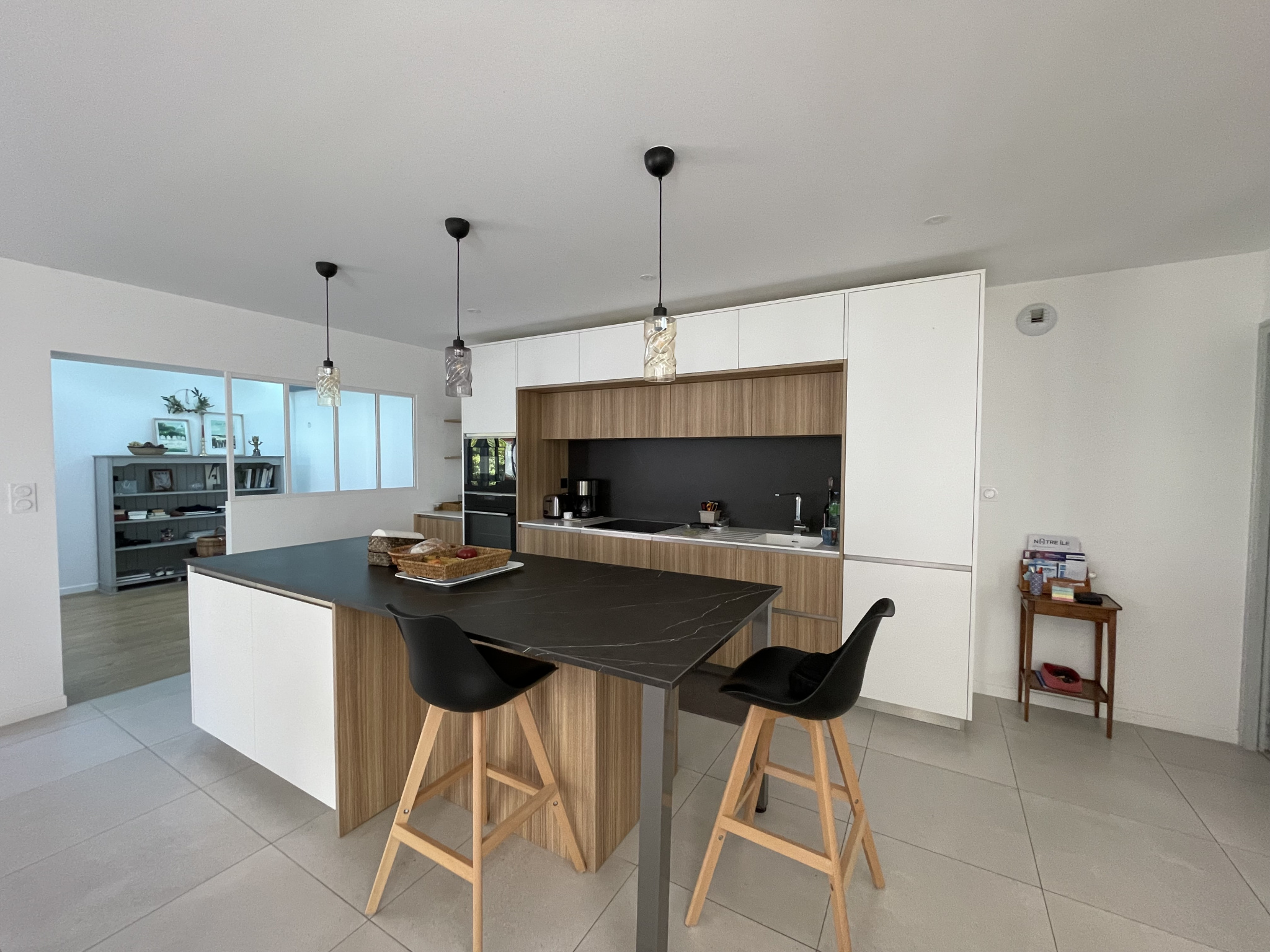 Cette maison comprend : une entrée, beau séjour-salon, une cuisine aménagée et équipée,