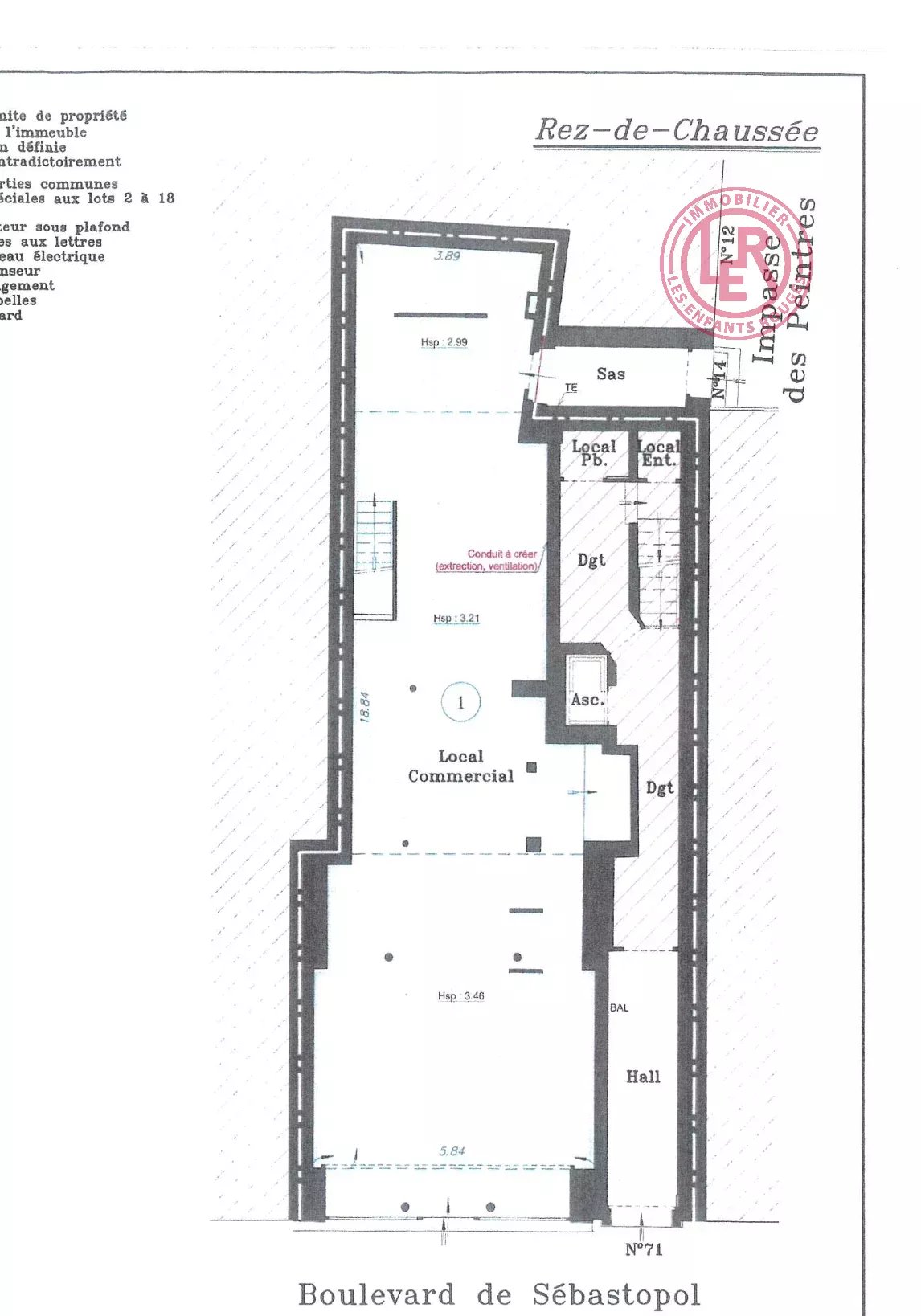 Murs commerciaux à vendre – Paris 2e / Boulevard de Sébastopol Nous vous proposons des murs commerciaux libres idéalement situés au cœur du boulevard Sébastopol, dans un bel immeuble parisien. Descriptif : Surface RDC : 89 m² Sous-sol aménageable : 41 m² Belle vitrine linéaire de 7 mètres Hauteur sous plafond : 4 mètres Autorisations copropriété : extraction extérieure autorisée Atouts : Emplacement premium à fort passage Possibilité d’installer une activité de restauration, boulangerie, traiteur, etc. Locaux vides, immédiatement disponibles Belle visibilité et façade attractive Prix de vente : 1 500 000 € net vendeur Honoraires agence : 5 % HT en sus du prix Pour toute information complémentaire ou organiser une visite, n’hésitez pas à me contacter