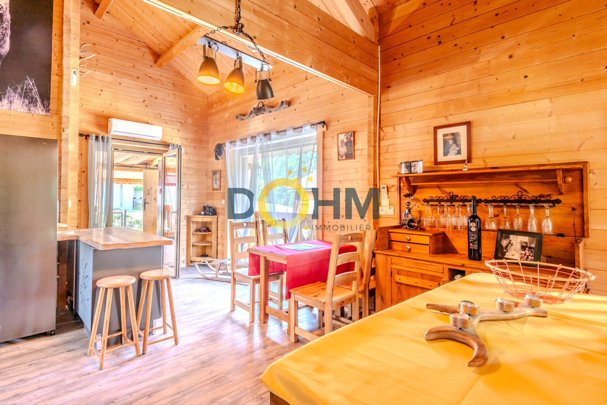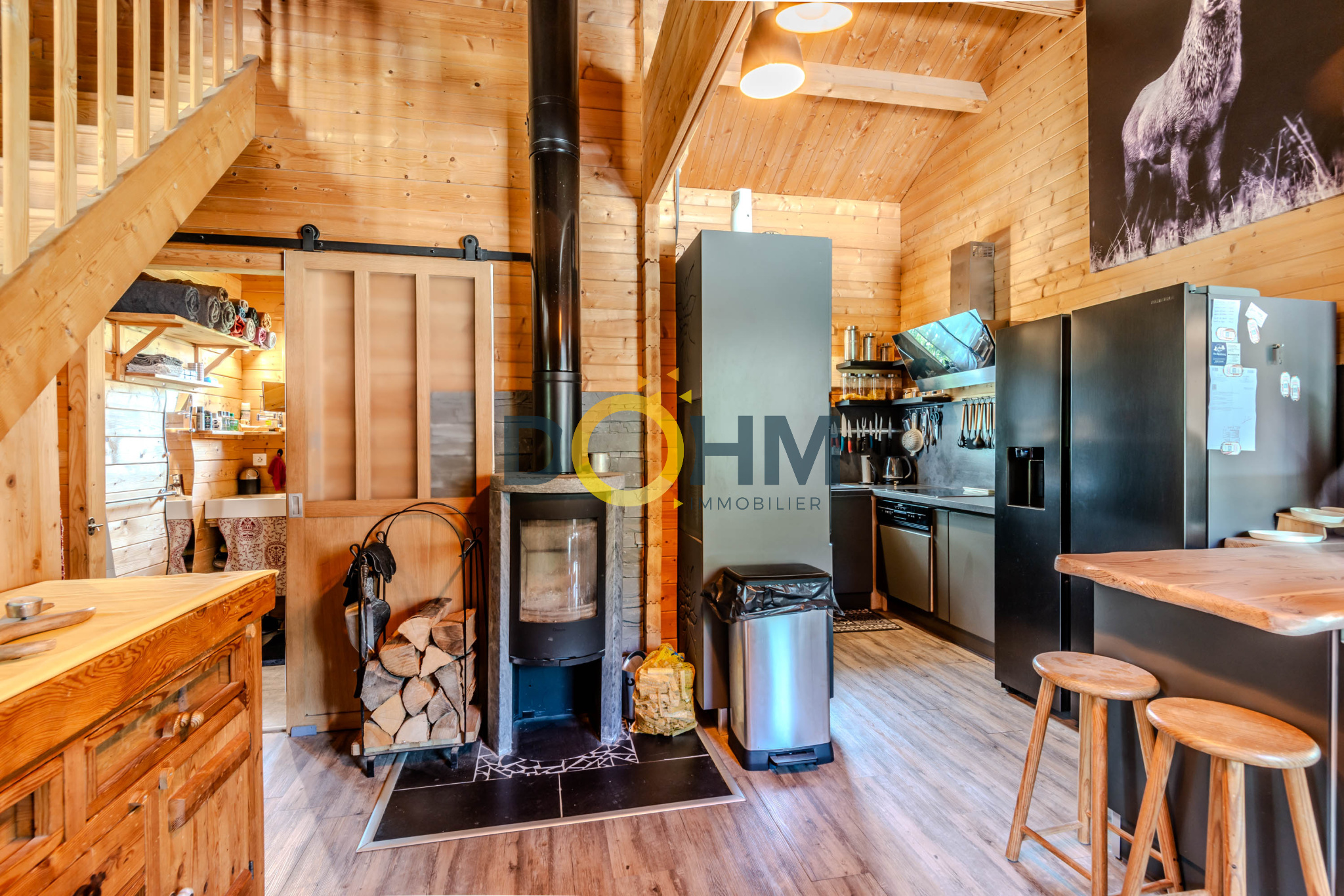 Vous serez sous le charme de la pièce de vie ouverte sur la cuisine, tous lezs ouvrants sont équipés de doubles vitrages récents et de qualité, un poële à bois vous offrira sa douce chaleur et vous permettra de chauffer tout le chalet de façon très économique (moins de 100 EUR/mois d'electricité). La pièce de vie donne sur un grand balcon avec une vue imprenable sur les montagnes environnantes.