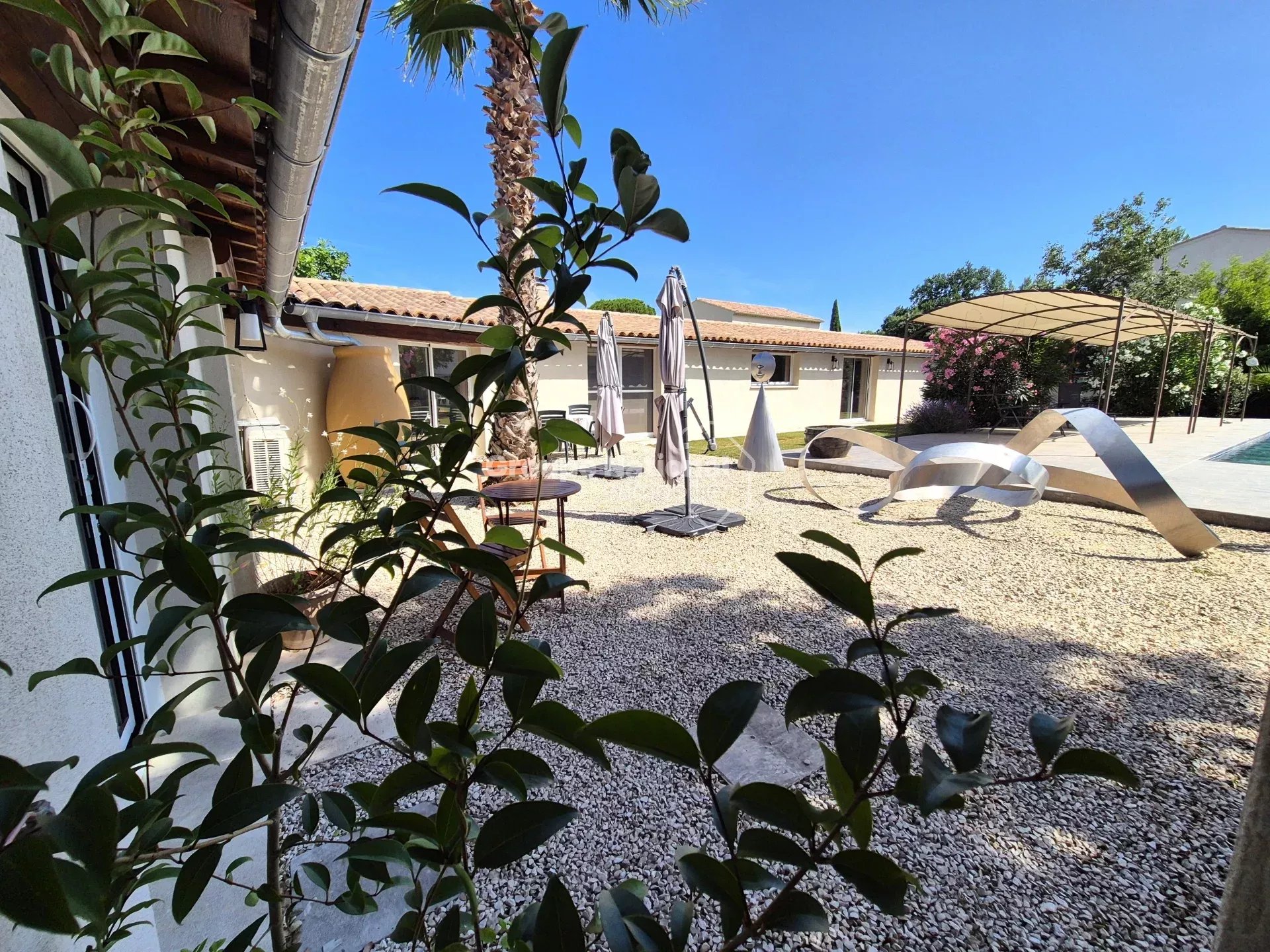 Nous vous présentons cette splendide villa atypique de plain-pied d’environ 190 m², au cœur d’un terrain clos et joliment arboré de 951 m². Véritable havre de paix, elle offre un cadre de vie privilégié avec sa superbe piscine chauffée en pierre de Bali, aux généreuses dimensions de 12 mètres sur 6. À l’intérieur, les volumes sont harmonieux et bien répartis. Vous découvrirez un salon/séjour lumineux de 43,63 m², ainsi qu’une cuisine équipée et aménagée MOBALPA, neuve de 2022, à laquelle s’ajoute une seconde Une salle à manger d'une superficie de 31 m². La partie nuit se compose de trois grandes suites parentales avec leur propre salle d’eau, WC et dressing avec des accès sur l'extérieur intimiste. Entre 30 et 20 m² chacune. Une pièce aménageable de 7 m² complètent l’ensemble, offrant de multiples possibilités d’aménagement : bureau ou espace de loisirs ou artistique selon vos envies. Côté confort, rien n’a été laissé au hasard : menuiseries en aluminium double vitrage, baie vitrée à galandage anti effraction avec film UV, moustiquaires, climatisation réversible, cheminée pour les soirées d’hiver, volets roulants électriques, portail motorisé, sans oublier les trois ballons d’eau chaude thermodynamiques. Les principaux travaux ont été réalisés récemment, notamment la réfection des façades, l’installation des menuiseries et d'une pompe à chaleur pour la piscine. À l’extérieur, vous profiterez également d’un cabanon de rangement idéal pour vélos ou motos, d’un local technique, d’un auvent couvert et d’une pergola, parfaite pour savourer les beaux jours en toute tranquillité. Eau de ville Raccordement au tout à l'égout Villa unique à 5 mn en voiture du centre ville de L'Isle-sur-la-Sorgue. Les informations sur les risques auxquels ce bien est exposé sont disponibles sur le site GEORISQUES : www.georisques.gouv.fr Coustellet, Les Vignères, Ménerbes, Pernes les Fontaines