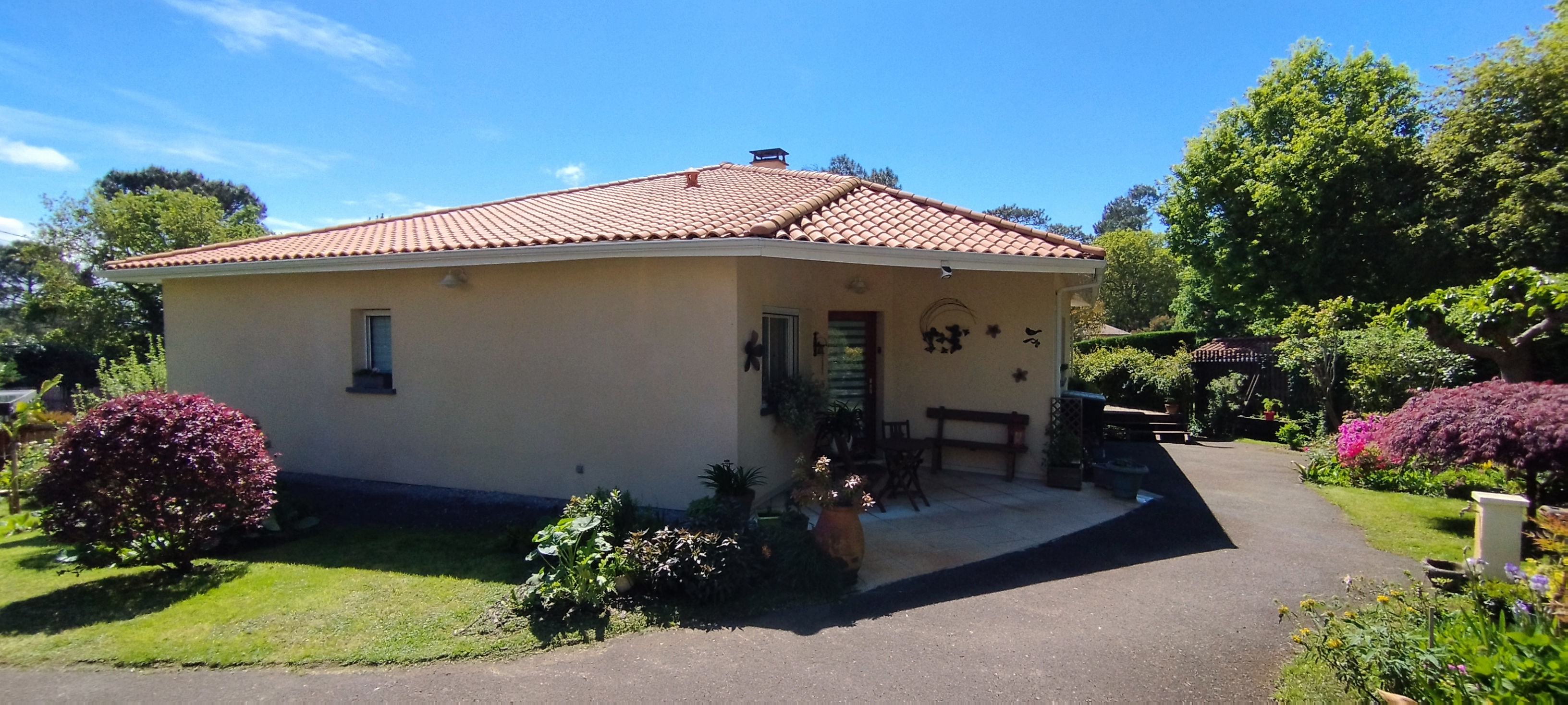 Lieu-dit la Broustasse. Entre forêt et lac nord dans un secteur privilégié à proximité immédiate de la plage de Navarrosse, de sa piste cyclable et des circuits de promenade, maison d'architecte de 115m² située au calme au fond d’une impasse. A 5 min des commerces et 2 min du golf. De plein pied, construite en 2004, celle-ci se compose d’une grande pièce de vie, exposée sud et ouest, composée d’un salon, séjour, cuisine avec cellier. Une suite parentale avec dressing, salle d’eau, WC et 2 chambres avec placards + une salle d’eau WC. Une terrasse de 72m² avec une pergola et 2 stores bannes. Le tout sur un terrain de 720 m² avec puit foré et arrosage intégré, 4 places de stationnement possible. Un insert, un chauffe-eau thermodynamique, des panneaux solaires avec fonctionnement en auto consommation ainsi qu’une climatisation permettent d’obtenir une consommation énergétique avec un classement énergétique B et A. DPE du 21/11/2024, 79Kwh/m²/an et 2Kg CO2/m²/an. Coûts annuels d’énergie entre 700€ et 1000€. Photos supplémentaires sur demande