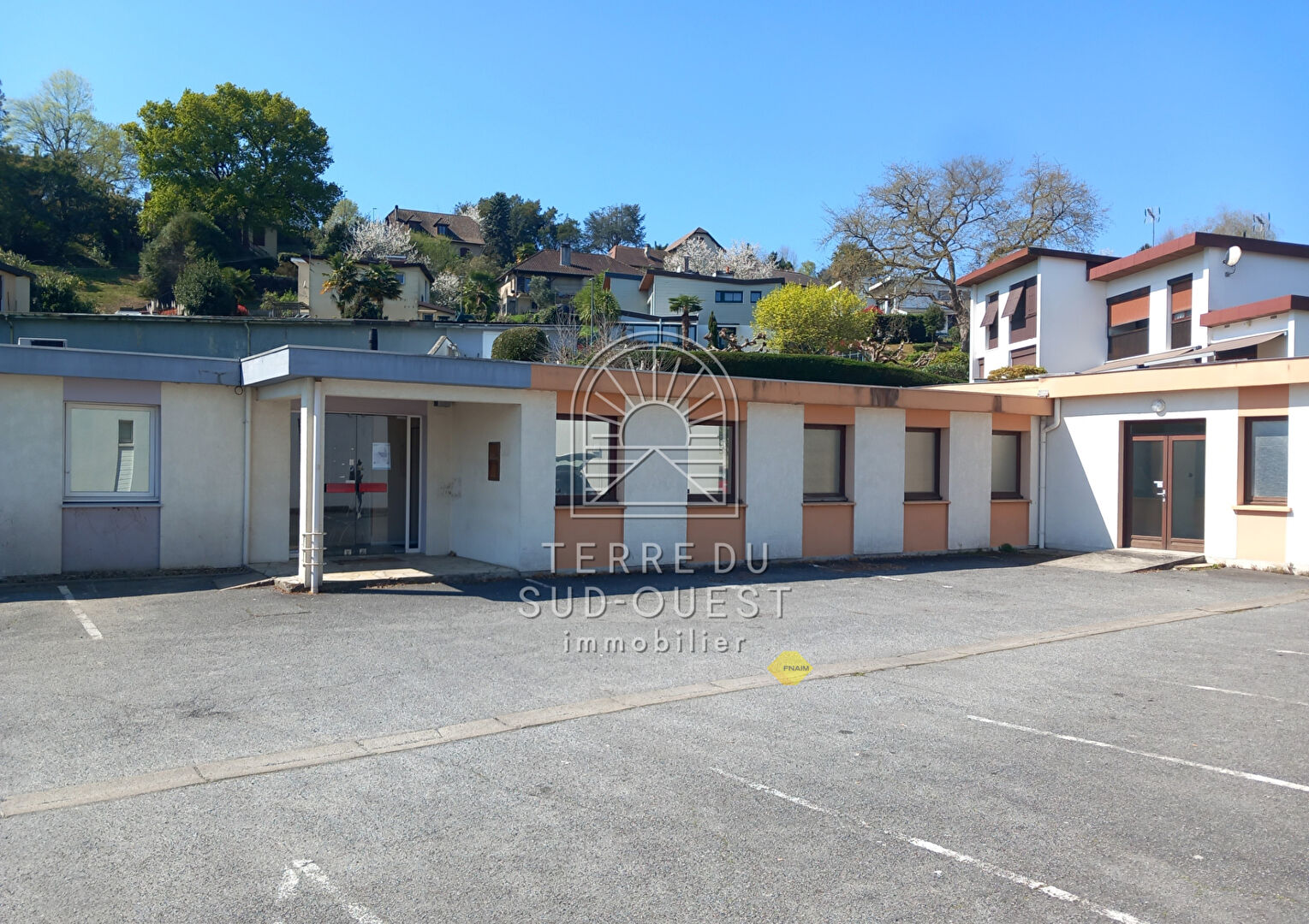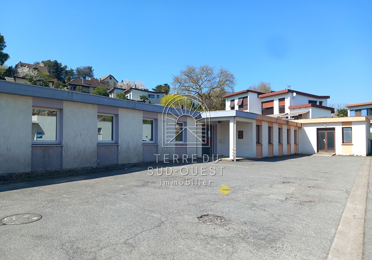TERRE DU SUD OUEST vous propose ces locaux professionnels d'environ 350 m² situés dans une commune dynamique d'environ 6000 habitants, autoroute et gare SNCF à moins de 10km. L'ensemble dispose d'un parking et d'une bonne visibilité. Le bâtiment est scindé en deux locaux disposants d'une entrée commune et chacun d'une entrée privative, ce qui permet d'optimiser et de créer jusqu'à 4 lots. L'un des deux est loué jusqu'en juillet 2026. Idéal investisseur, marchand de biens ou société pour aménager son activité. Une visite virtuelle est disponible sur demande. Laurent FABREGON (EI) Agent Commercial - Numéro RSAC : 513403105 - PAU.