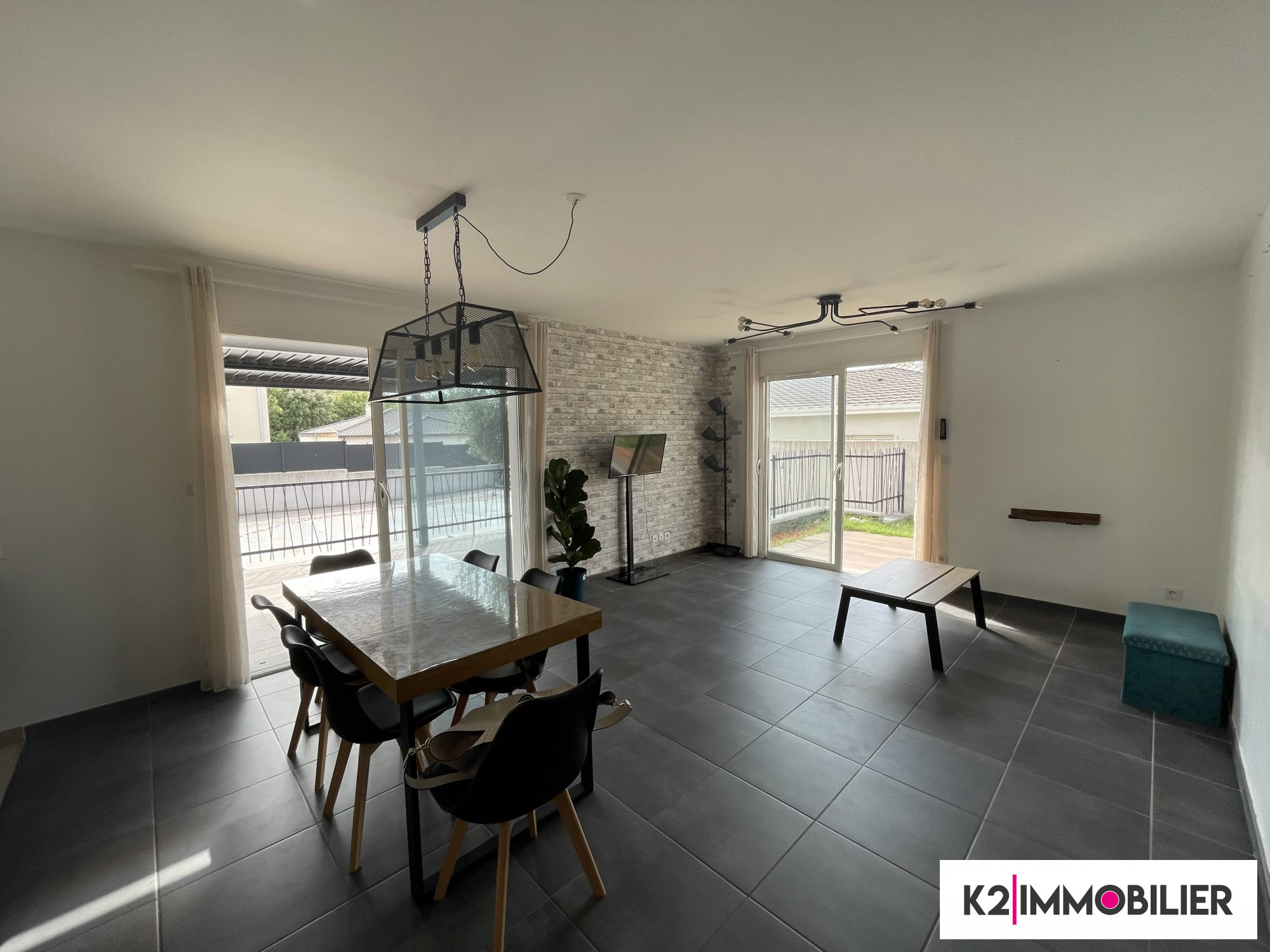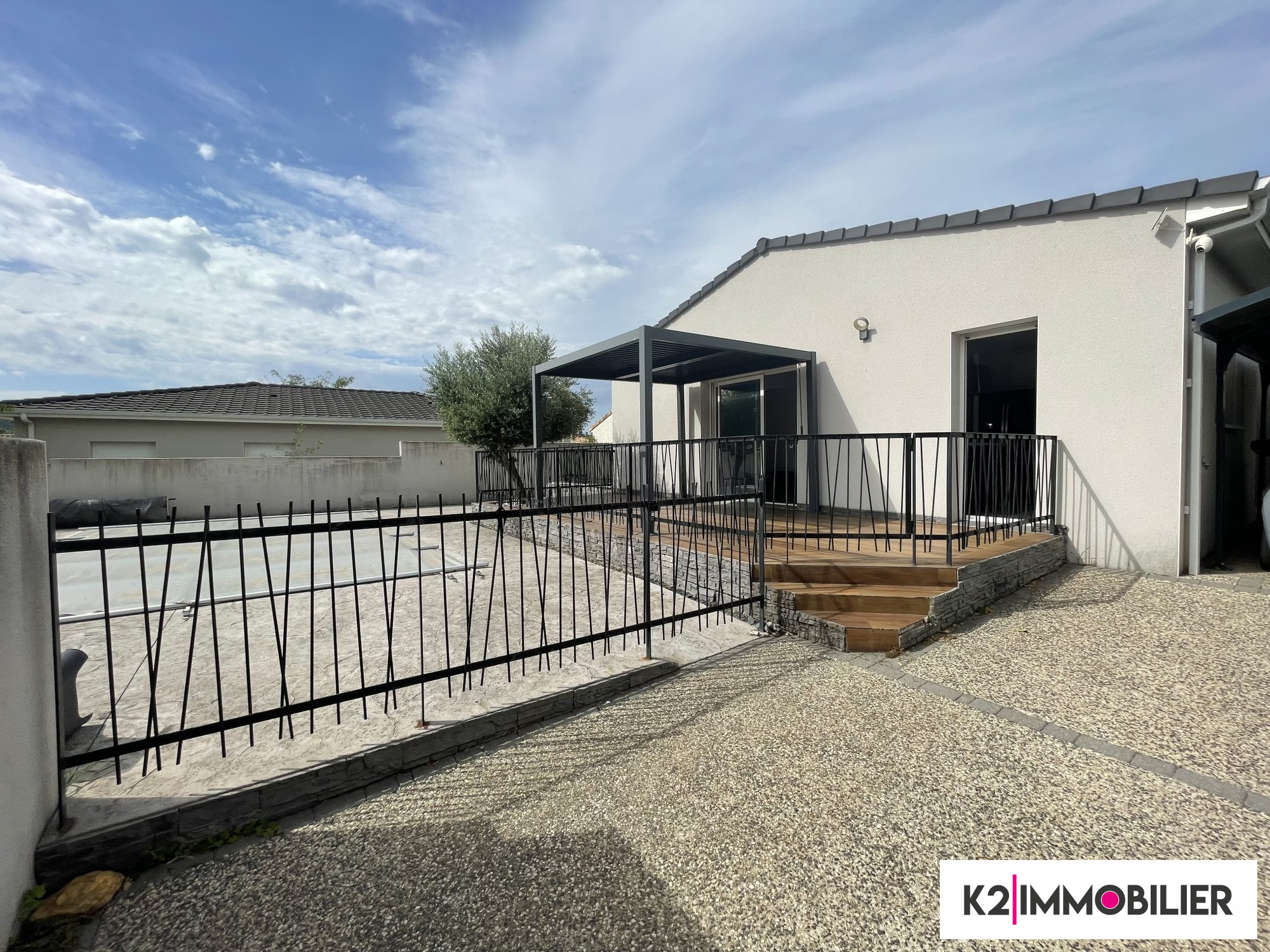 3 chambres avec rangement, cuisine entièrement équipée ouverte sur belle pièce de vie de 40 m² lumineuse, donnant sur une terrasse bien exposée sud Est avec une pergola bioclimatique, entrée avec placard, salle d'eau avec baignoire + double vasque, toilette séparé, le tout sur un terrain clos de 450 m² avec cabanon terrain de pétanque + garage de 17 m² + mezzanine + abri voiture ainsi qu'une piscine sécurisée de 7x4.