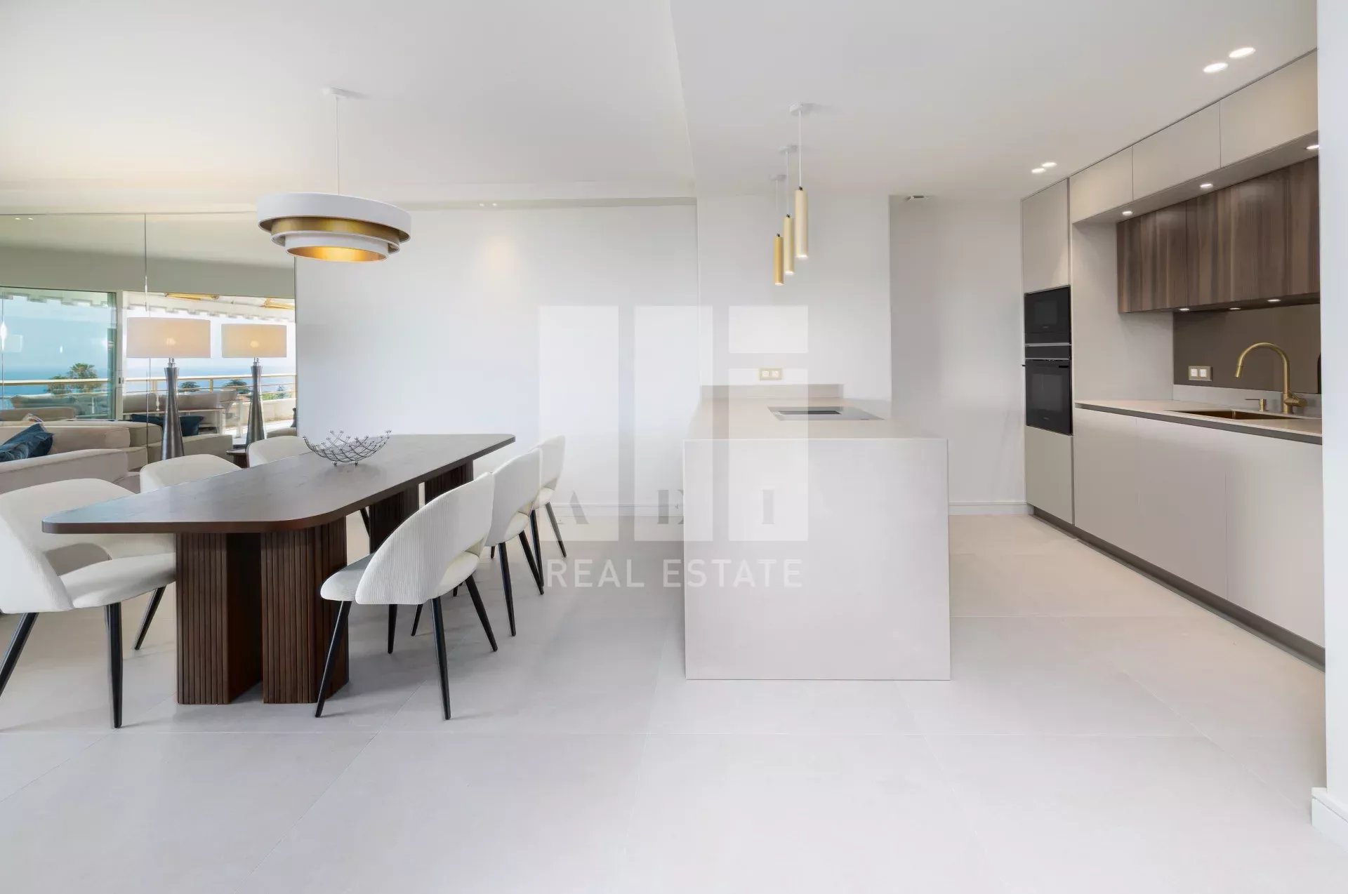 Dans une copropriété de grand standing avec piscine et jardin, ce très bel appartement d'environ 130 m² traversant en étage élevé, dispose d'une vue mer panoramique jusqu'à la pointe Palm Beach et l'Estérel. Le bien se compose d'une entrée donnant sur une grande pièce de vie, terrasse de 22 m² d'angle, cuisine ouverte entièrement équipée, 3 belles chambres en suite, espace bureau et buanderie, toilettes, dressings. Spacieux et lumineux, cet appartement bénéficie des avantages d'une résidence de standing doté de caméras de surveillance. Garage en sous-sol.