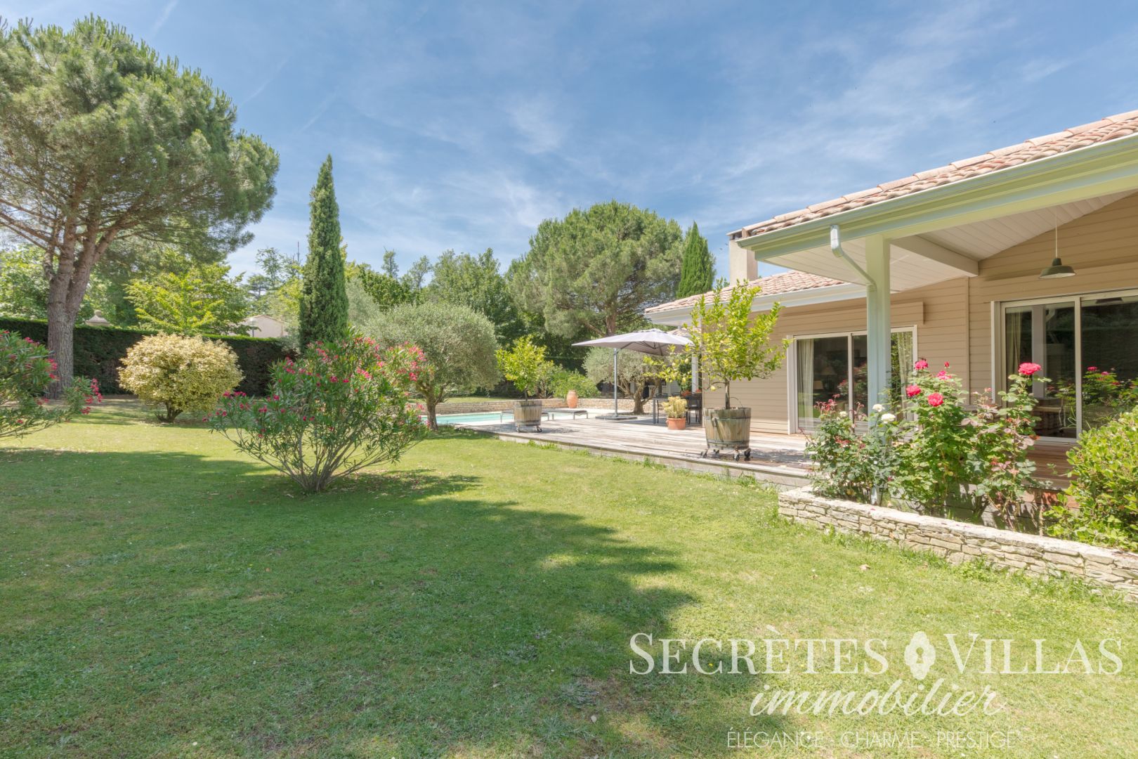 VENDU PAR NOS SOINS. HAUT BOULIAC, secteur prisé, au calme, cadre résidentiel verdoyant, RAVISSANTE VILLA DE CHARME PLAIN PIED 190M2 aux plafonds rampants vous offrant: patio d'accueil abrité ouvrant sur entrée sol pierre, superbe pièce de réception 60m2 triple exposition et cheminée. Belle cuisine équipée de qualité année 2021 et espace dinatoire. Cellier Buanderie. Bureau. Deux espaces nuits: une première aile vue piscine: couloir dégagement placard dressing aménagé, Wc et lave main, chambre parent exposée ouest et dressing équipé, sde douche italienne double vasque et rangement , chambre 14m2 orientée sud avec placard et bibliothèque sur mesure. 2ème aile vue jardin: couloir dégagement, Wc, 2 chambres 14m2 et 16m2 exposition sud ou ouest et placards dressing. Wc. Sde travertin double vasque placard et douche italienne. 3 Terrasses dont 2 en IP: 30m2 accès direct cuisine et 93m2 accés pièce de réception et chambres. Parking plusieurs véhicules. Garage à moto (possibilité garage autos). Cave. Grand cabanon. Le tout sur un SPLENDIDE TERRAIN plat clos et arboré AUX ESSENCES MEDITERRANEENNES de 2014m2 sans aucun vis à vis exposé SUD OUEST avec SUPERBE ESPACE PISCINE tout en pierre: que ce soit local technique, ravissants murets et terrasse de 77m2... un réel air de provence! Piscine au sel chauffée pompe à chaleur, liner 2022 et cuisine d'été viennent compléter cet ensemble...! CONSTRUCTION ET PRESTATIONS HAUT DE GAMME. Maison qualitative: huisseries alu double vitrage, moteurs neufs volets, chaudière condensation 2022, parquets massifs, portes chêne massif sur mesure, ainsi que portes de placards et meubles sde, alarme, toiture nettoyée 2022, allée pavée, beau portail automatique, arrosage goutte à goutte, robot tondeuse...DIAGNOSTICS SANS AUCUNE ANOMALIE. 10mn Bordeaux centre et gare St jean, proche toutes commodités: commerces, Ecoles maternelles et primaires, bus pour collège et lycée. Un vrai coup de coeur pour CE BIEN ENTRENTENU RAFFINE ET FACILE A VIVRE! Les informations sur les risques auxquels ce bien est exposé sont disponibles sur le site Géorisques. (4.50 % honoraires TTC à la charge de l'acquéreur.)