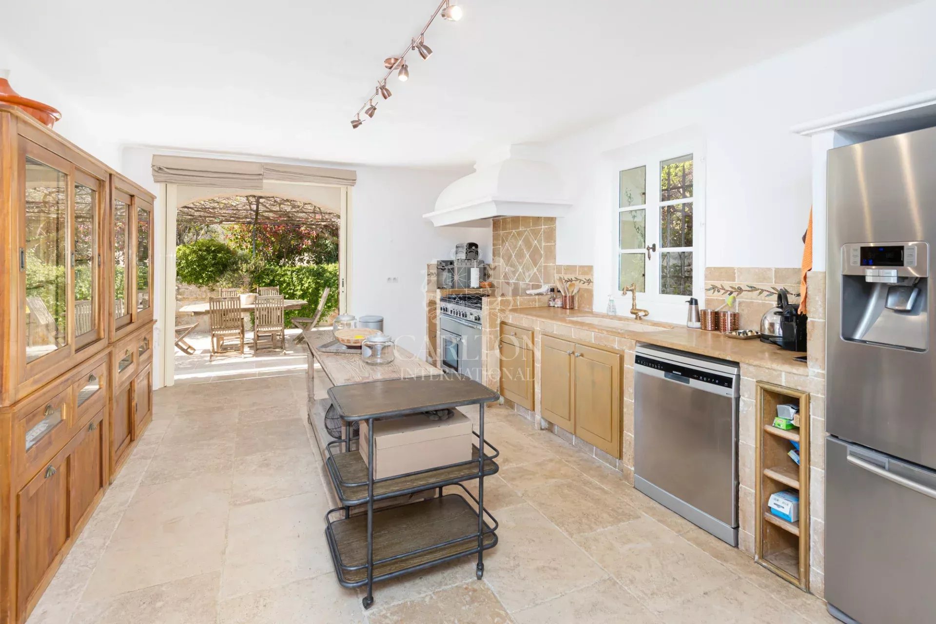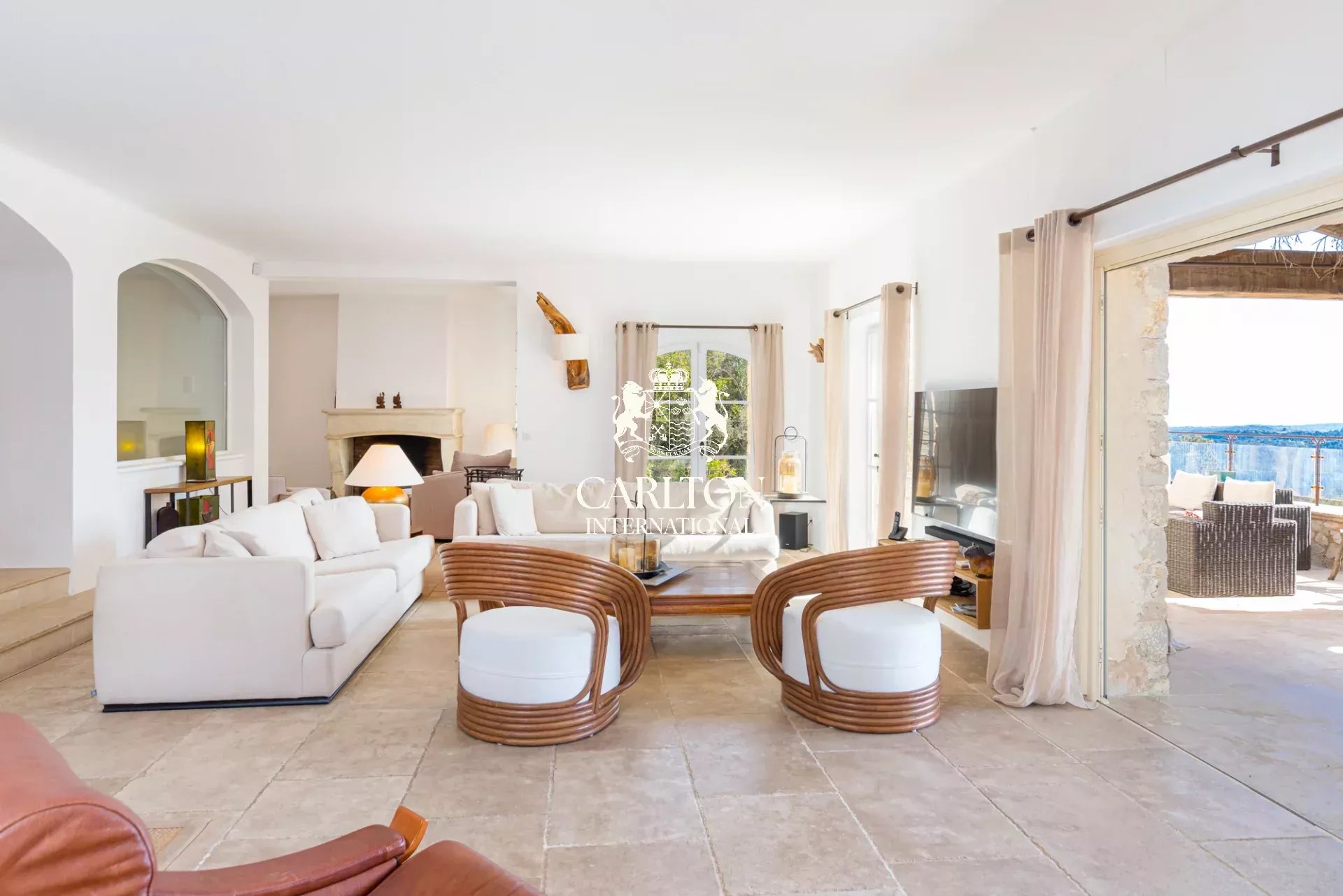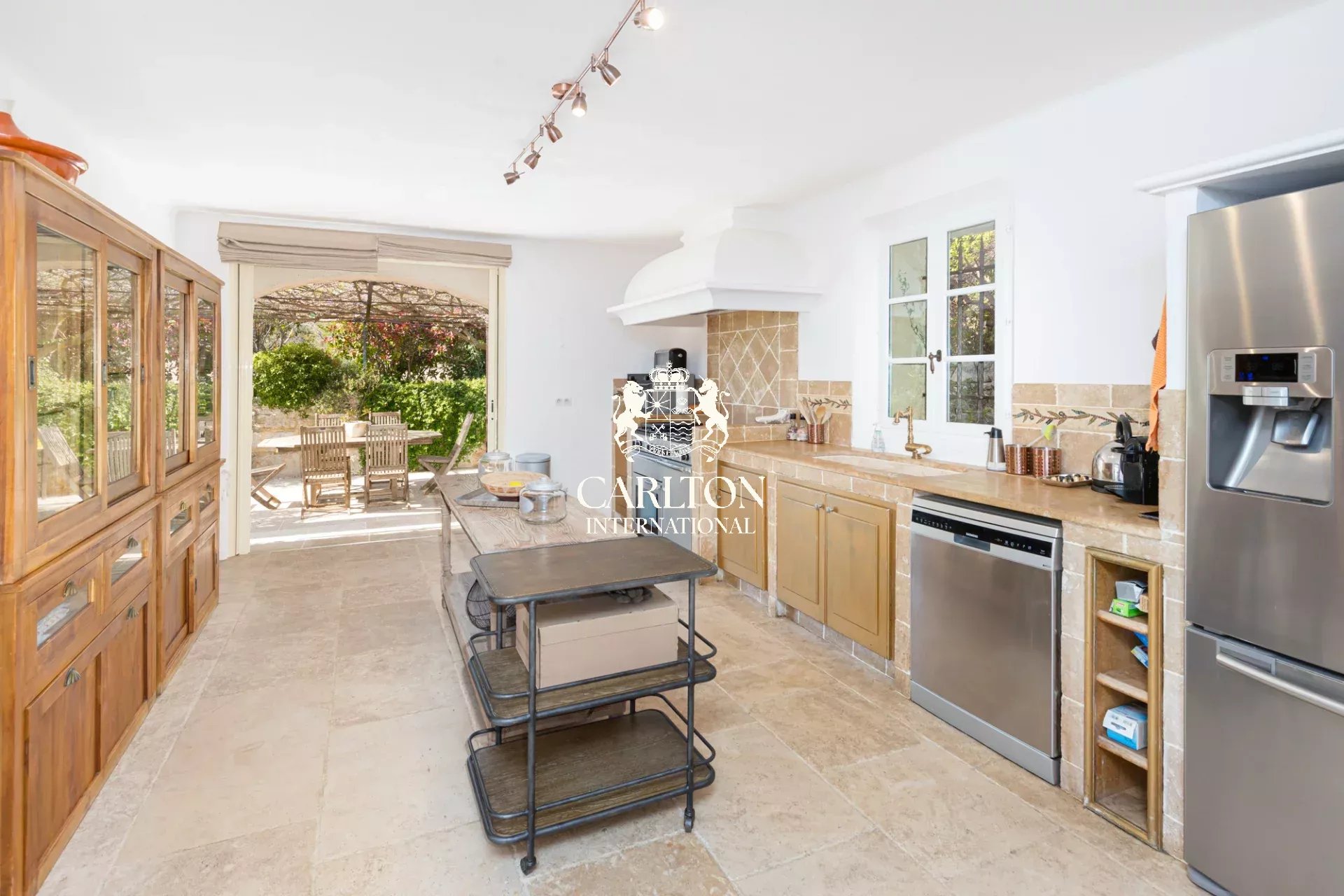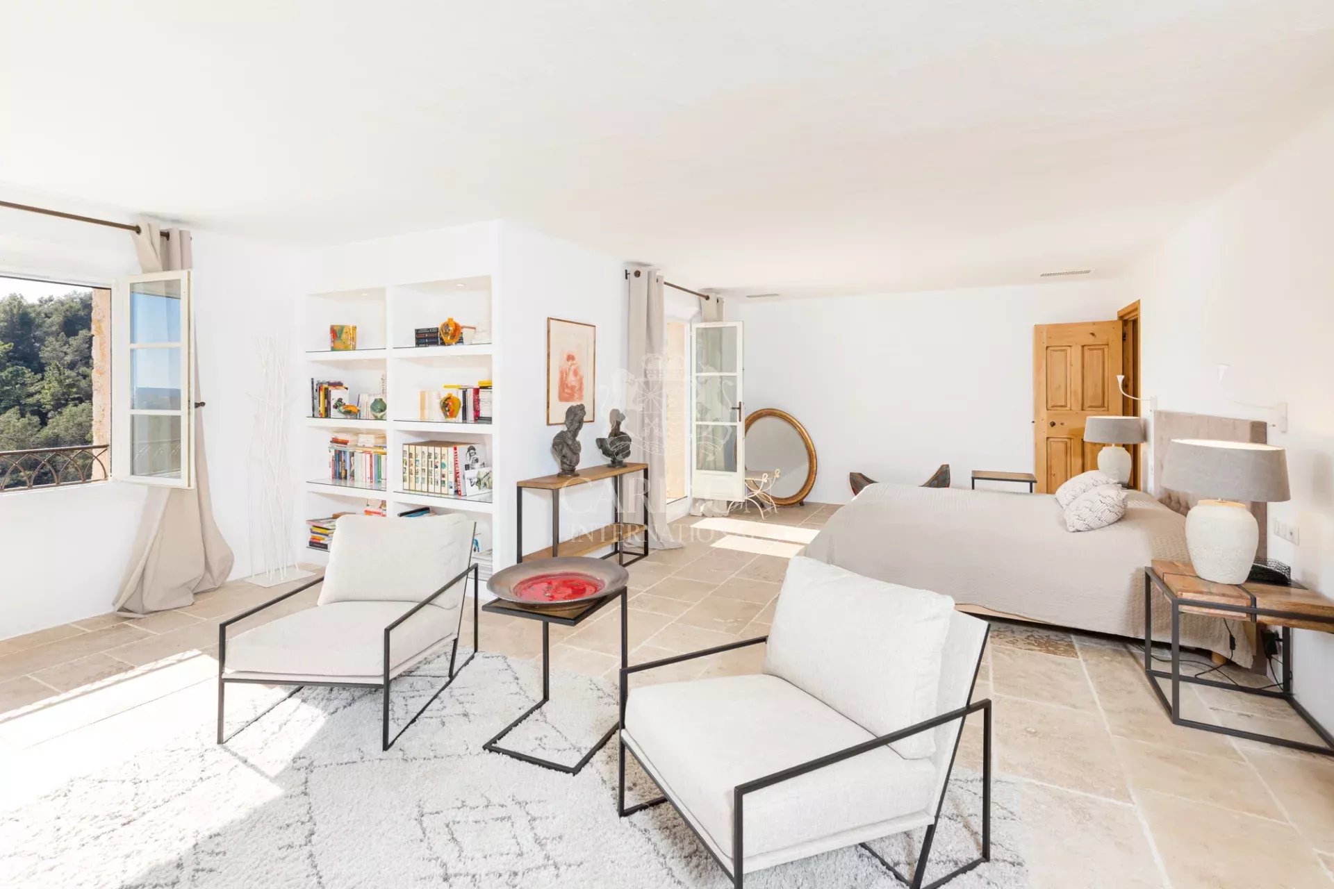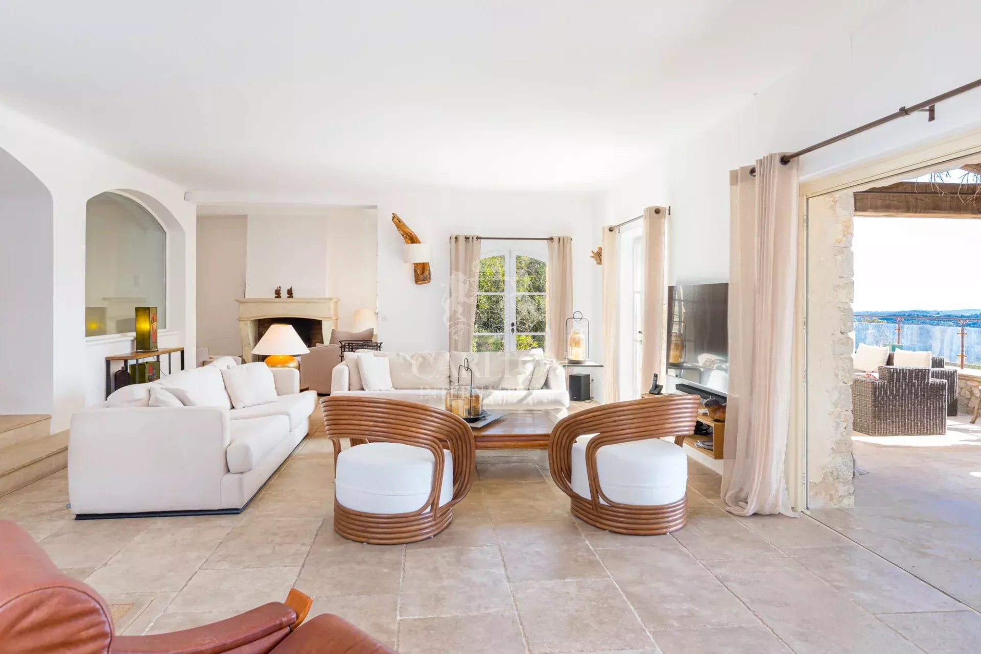 Nichée sur un colline avec un terrain d'environ 15.000 m2, cette propriété offre un accès sécurisé et une intimité et un calme total. Alliant le charme authentique de la pierre à des équipements contemporains de qualité tels que le chauffage au sol et la climatisation centralisée, elle séduit par son harmonie. Les larges baies vitrées qui s'ouvrent sur les terrasses invitent à profiter pleinement de l'espace extérieur, tandis que la piscine à débordement ajoute une touche de luxe à cette oasis de sérénité. La villa abrite six chambres en suite, dont une vaste suite parentale donnant sur une terrasse "tropézienne", offrant une vue panoramique sur le paysage verdoyant et la mer scintillante. Un appartement indépendant, un potager soigneusement aménagé et de généreux espaces de stationnement viennent parfaire le charme discret de cette propriété de cette demeure qui offre un cadre de vie privilégié à ses occupants... Idéalement située au bout d'une impasse sécurisée, à seulement 5 minutes du pittoresque village de Saint-Paul-de-Vence et à moins de 20 minutes de l'aéroport de Nice Ref. 00123 Les dépenses énergétiques moyennes en [année] se situent entre x € et x € par an. Les honoraires de l'agence sont à la charge du vendeur. Les informations sur les risques auxquels ce bien est exposé sont disponibles sur le site Géorisques http://www.georisques.gouv.fr