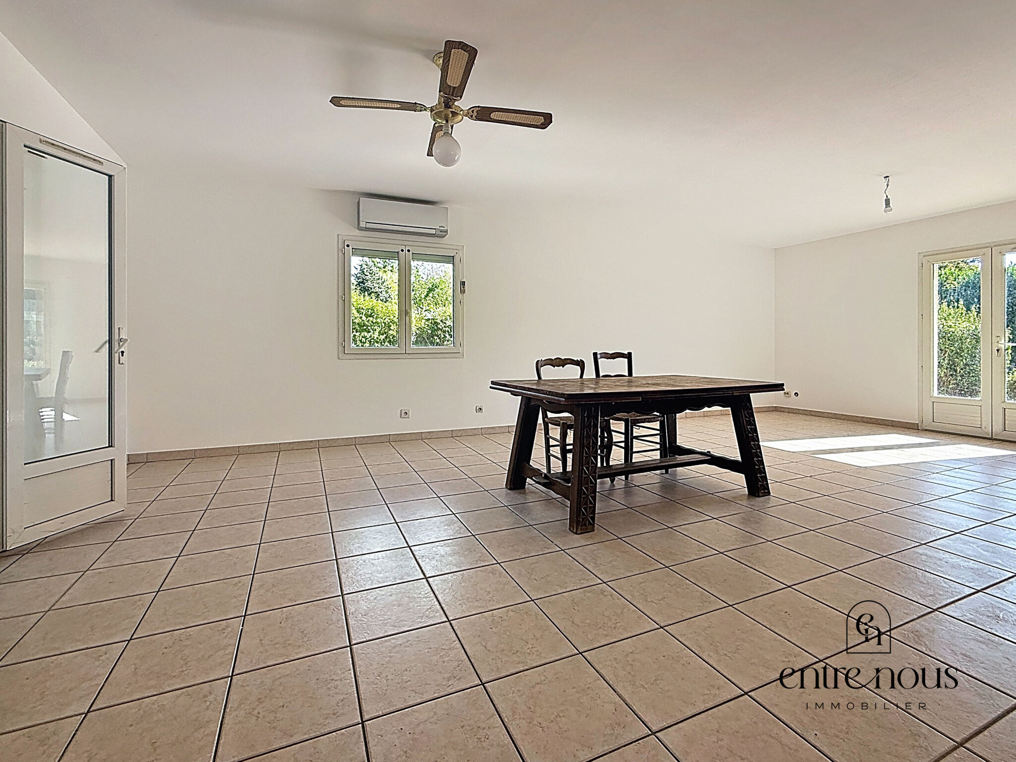 Fonctionnelle, lumineuse et pleine de potentiel : cette maison familiale à Cessieu offre 135 m² habitables, une véranda conviviale, un sous-sol complet et un terrain arboré sans vis-à-vis. L'équilibre parfait pour accueillir une vie de famille sereine, entre nature et proximité des commodités.ENTRENOUS IMMOBILIER VOUS PROPOSE NOUVELLE EXCLUSIVITE Achat maison Nord Isère Maison familiale avec sous-sol et véranda à vendre à CessieuÀ vendre Maison de 135 m² habitables sur un terrain arboré de 1 559 m², avec sous-sol complet et véranda lumineuse.Située à Cessieu, entre Bourgoin-Jallieu et La Tour-du-Pin, cette maison de 1999 séduit par son organisation en demi-niveaux, ses espaces lumineux, et son environnement calme et sans vis-à-vis. Une maison pensée pour la vie de famille, à la fois fonctionnelle, chaleureuse et confortable.Caractéristiques principales :135 m² habitables sur une parcelle arborée de 1 559 m²Séjour lumineux avec insert bois, ouvert sur une véranda baignée de lumièreCuisine indépendante, elle aussi prolongée par la vérandaTrois chambres à l'étage supérieurMezzanine polyvalente (bureau, salle de jeux, espace lecture)Salle de bain + toilettes indépendantesEn rez-de-chaussée :Sous-sol complet avec entrée indépendanteDouble garageEspaces annexes modulables : buanderie, atelier, rangements. Bon à savoir : le propriétaire s'engage à réaliser un rafraîchissement complet avant la vente (retrait des papiers peints, mise en peinture), pour un intérieur neutre, propre, prêt à accueillir votre touche personnelle.Prestations techniques :Chauffage : insert bois + radiateurs électriques (2010)Pompe à chaleur air / air (2010)Chauffe-eau thermodynamique (2023)VMC installée en 2012Assainissement individuel (fosse septique)DPE : D / GES : BEmplacement :Secteur résidentiel calme et verdoyantMoins de 10 minutes des accès autoroutiers (A43)Entre Bourgoin-Jallieu et La Tour-du-Pin, avec commerces, écoles et commodités à proximitéPour visiter :Pour découvrir cette maison prête à vivre, contactez Audrey d'ENTRENOUS IMMOBILIER au 06 52 23 79 03. Vidéos de présentation disponibles sur demande.- Annonce rédigée et publiée par un Agent Mandataire.Informations LOI ALUR : Honoraires charge vendeur. (gedeon_90651_31533958)