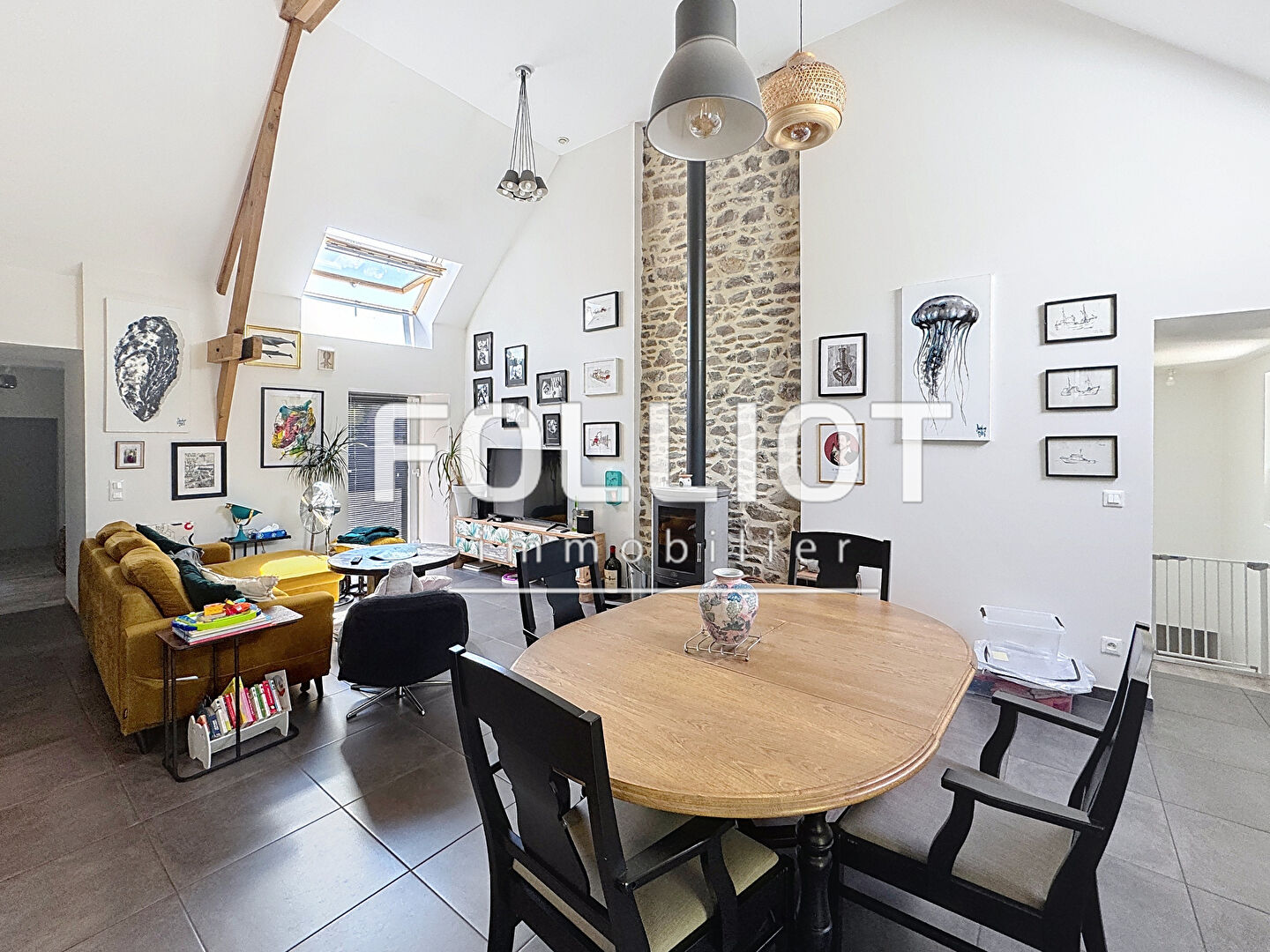 A Gouville-sur-Mer, proche des commerces et de la mer, maison en pierre restaurée avec soin. Elle offre : Séjour cathédrale avec poêle, cuisine aménagée, buanderie, 4 chambres, dressing, salle de bains, salle d'eau, 2 WC. Atelier, 2 dépendances, terrain clos de 710 m². Dépenses annuelles d'énergie estimées entre 2100 euros et 2850 euros en 2021, 2022 et 2023. Géorisques : www.georisques.gouv.fr