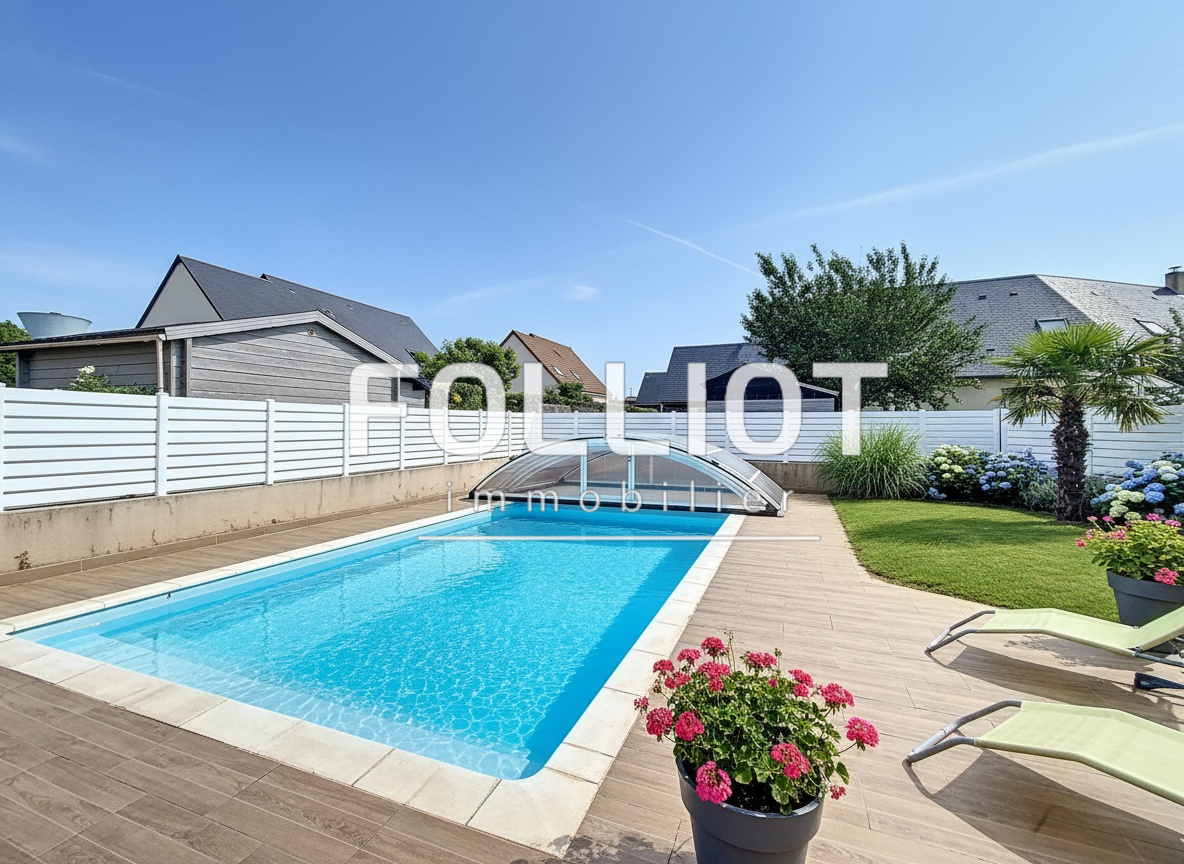 Profitant du cadre agréable et calme de la commune de Cuverville, à seulement quelques minutes de Caen, cette maison de 170 m² est idéale pour une vie de famille. Elle présente de nombreux atouts : - Vie de plain-pied - Terrasse 150 m² exposée Sud - Grand garage - Jardin agréable avec abri - Piscine - Tous les équipements d'entretien inclus (robot, karcher, matériel) - Pompe à chaleur et panneaux photovoltaïques pour un confort thermique et des économies d'énergie. Une maison prête à accueillir votre famille ! Au rez-de-chaussée, une entrée avec placard mène à une grande pièce de vie lumineuse, composée d'un salon-salle à manger ouvert sur une cuisine aménagée et équipée. Cet espace convivial donne directement sur la terrasse carrelée équipée d'un store banne électrique, et la piscine. La vie de plain-pied est facilitée grâce à trois chambres, accompagnées d'une salle de bain spacieuse, d'un WC séparé, ainsi que d'un cellier-buanderie très pratique et un accès direct au garage. A l'étage, une belle mezzanine (bureau, salle de jeux, coin lecture) dessert trois chambres, une salle d'eau, un WC indépendant et un grand placard. Les photos 1,2 et 3 ont été meublées par IA afin de vous aider à vous projeter. Date de réalisation du Diagnostic de Performance Énergétique : 13/05/2025 Consommation énergie primaire : 103kWh/m²/an - Rang B GES : Rang A Montant estimé des dépenses annuelles d'énergie pour un usage standard : entre 1280 euros et 1790 euros Les informations sur les risques auxquels ce bien est exposé sont disponibles sur le site Géorisques : [www.georisques.gouv.fr](http://www.georisques.gouv.fr/) Katiane TESTEMALE (EI) Agent Commercial - Numéro RSAC : - .