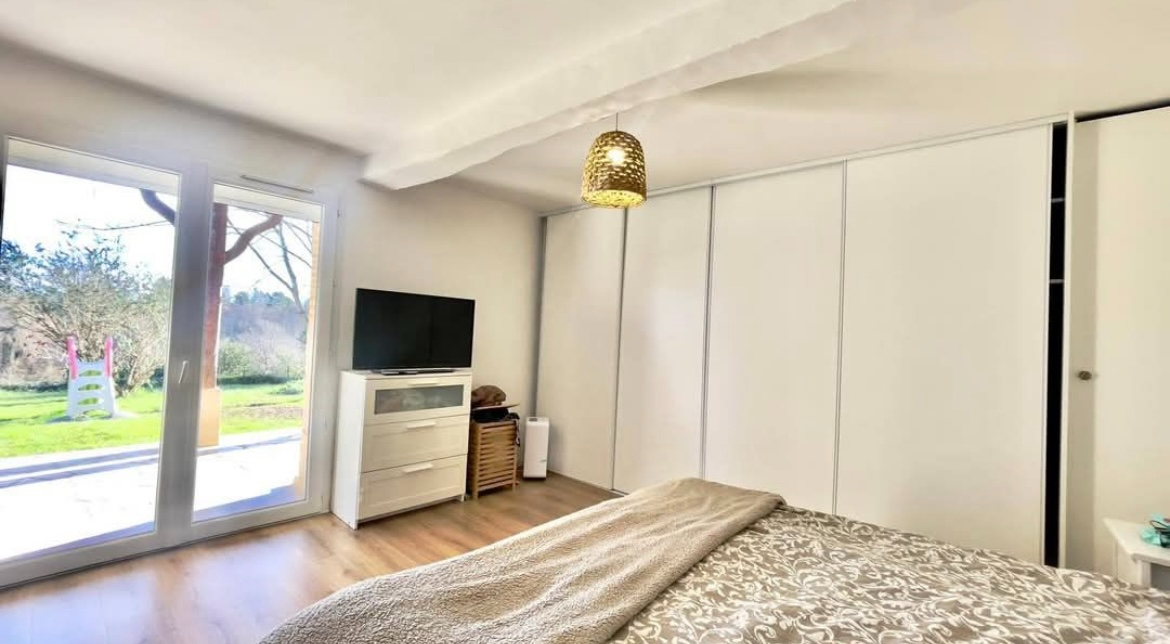 Pour tout renseignement ou visite, veuillez contacter Elodie Bataille au 06.79.71.17.80. Dans un cadre paisible de Villeneuve-sur-Lot, maison de plain-pied en pierre rénovée (2022) d'environ 170 m² avec une grange attenante d'environ 60 m², le tout sur un terrain de 11 503 m². La maison se compose d'une splendide et spacieuse pièce de vie d'environ 80 m² qui s'ouvre sur une cuisine équipée. Le salon est doté d'une cheminée et d'une mezzanine d'environ 11 m² pouvant être utilisée comme bureau ou chambre. La partie nuit vous proposera trois vastes chambres (13/16/17 m²), dont deux disposent de placards intégrés. On y trouve également une salle de bain complète (baignoire, douche à l'italienne,wc), ainsi qu'un autre WC indépendant. A l'extérieur, une grange de 60 m² adjacente à la maison et une cuisine d'été vous offriront la chance de profiter de la terrasse qui propose une vue spectaculaire sur les 11 503 m² de terrain arboré où se trouvent des enclos pour chevaux et un abri pour moutons. Les + + : menuiseries double vitrage PVC et alu, volets roulants électriques, chauffage pompe à chaleur air/eau (2021), toiture et charpente récente, isolation murs et combles (2023) , cuisine (2023) , fosse septique, taxe foncière 1400 euros