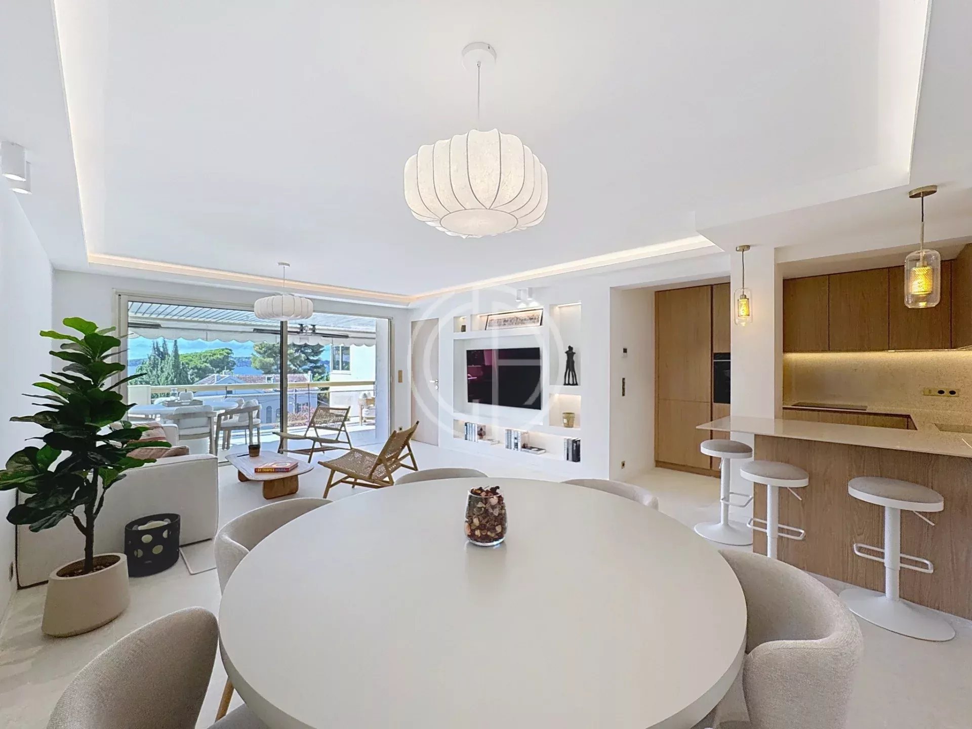 CANNES PALM BEACH - Dans une résidence de qualité, à quelques pas de la mer et du Mouré Rouge, superbe appartement élégant et lumineux de près de 104m2, avec vue sur la mer et les iles de Lerins. En étage élevé, il offre un hall d'entrée, un beau séjour prolongé d'une confortable terrasse de 20m2, une cuisine ouverte équipée avec coin bar, 3 chambres en suite, dont la master avec vue mer. Totalement rénové avec des matériaux de qualité et un agencement raffiné, nombreux rangements. Une cave et un garage, une piscine plein Sud complètent ce superbe appartement facile à vivre qui n'attend plus que vous ! Nombre de Lots: 24 Charges 4.432€/an eau comprise