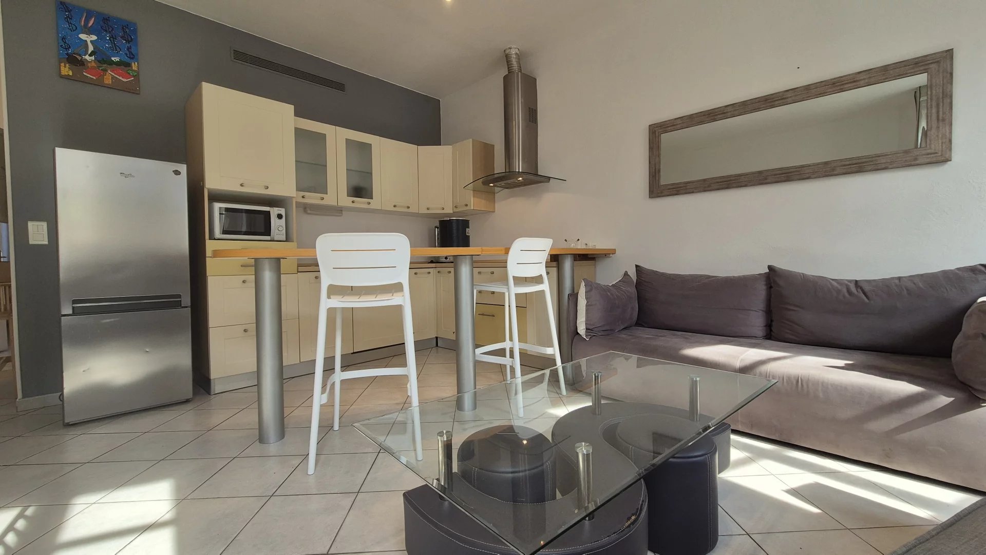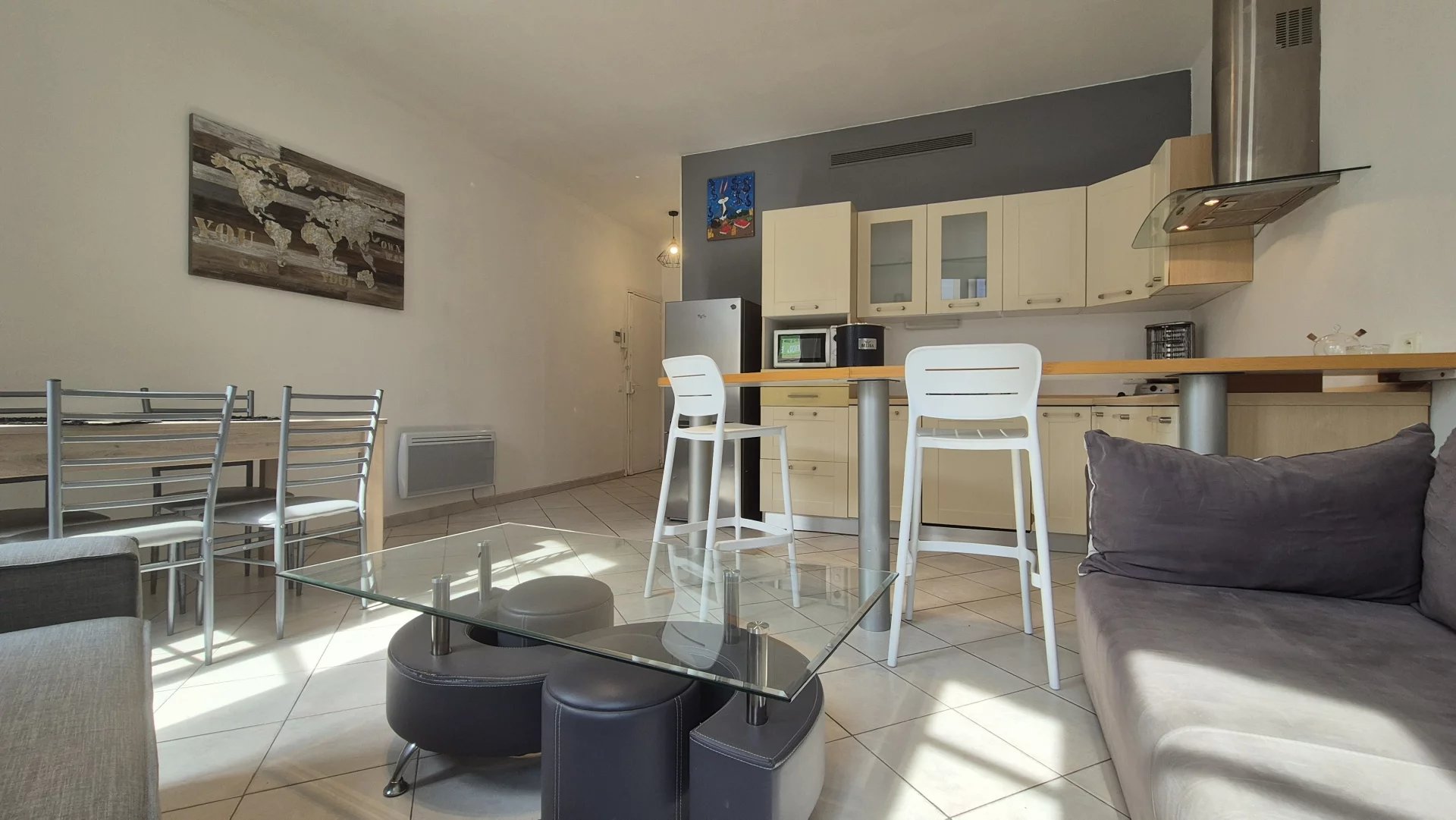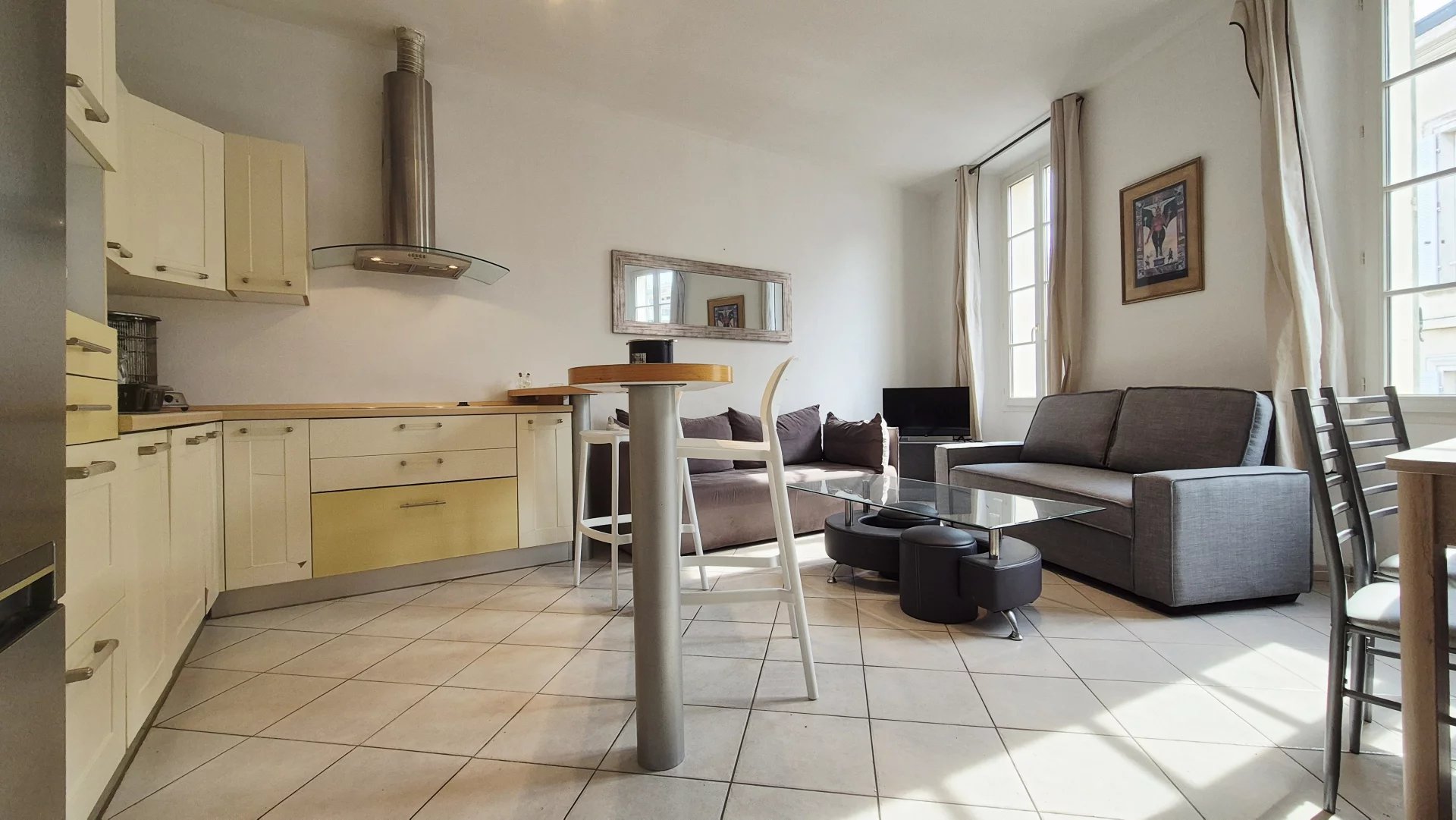 Il est climatisé et dispose de double vitrage. acces internet, lave lingeAppartement idéal pour passer quelques jours dans notre belle ville . Il se compose d'une entrée desservant un salon avec 2 canapés dont 1 canapé lit, une espace repas, une cuisine ouverte permettant de préparer les repas avec ses proches.Le logement est climatisé et dispose de double vitrage pour vous protéger de la chaleur et du bruit.