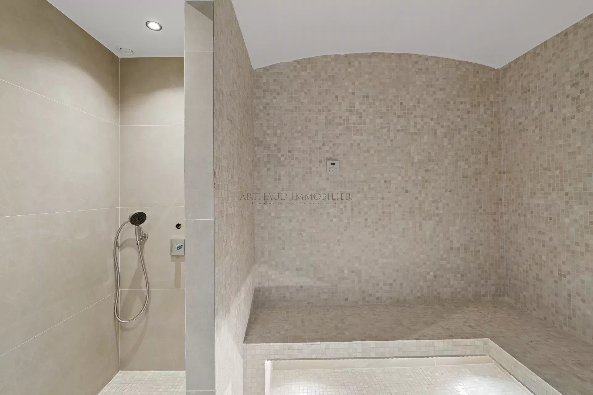 Côté nuit, la villa propose 5 chambres, toutes avec salle de bains ou salle de douche en suite. La suite parentale dispose d’une grande salle de bain avec baignoire et douche, d’un vaste dressing ; et une des chambres se distingue par un espace hammam privé.
