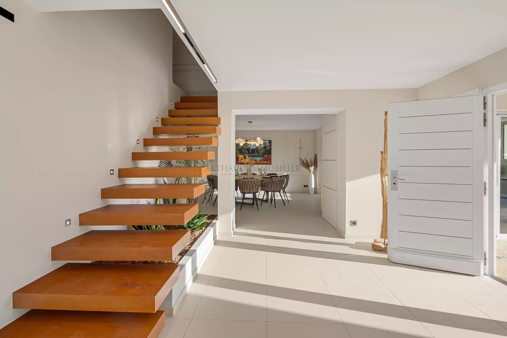 Dès l’entrée, les volumes généreux et la lumière naturelle inonde les espaces de vie.