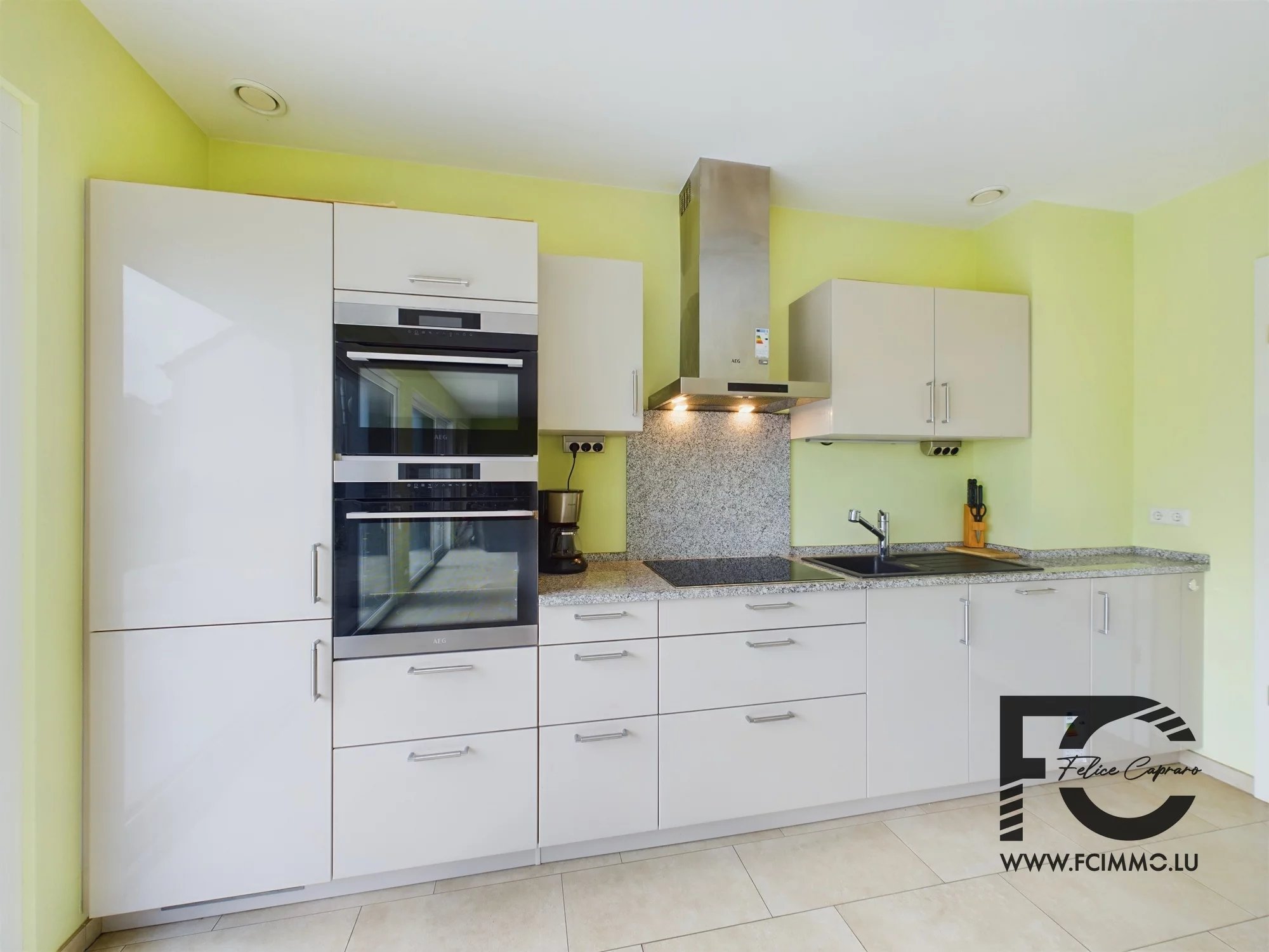 Libre des 4 côtés, dans une impasse au coeur du quartier "An der Schéiferei" elle vous séduira de par sa terrasse et son jardin exposé plein sud.