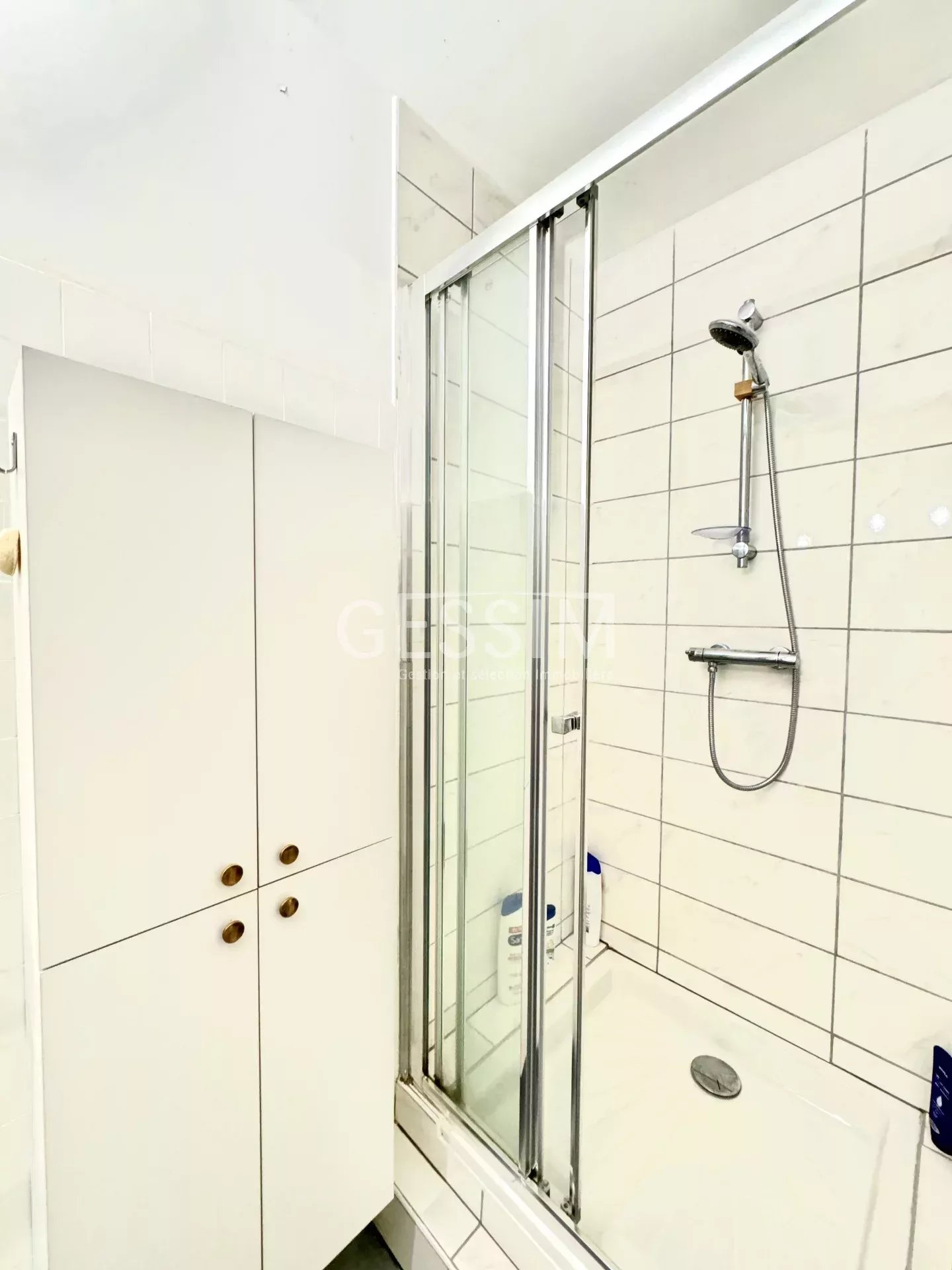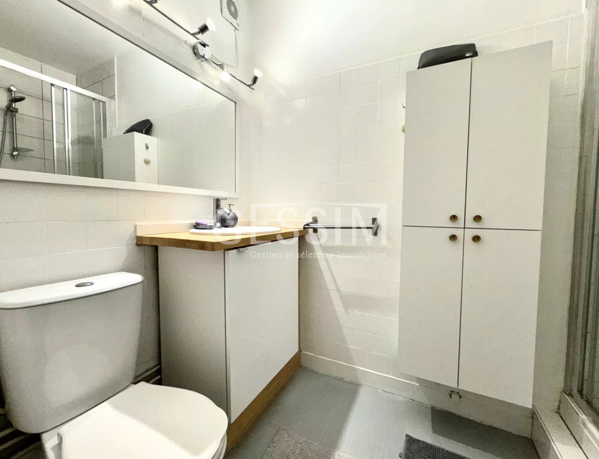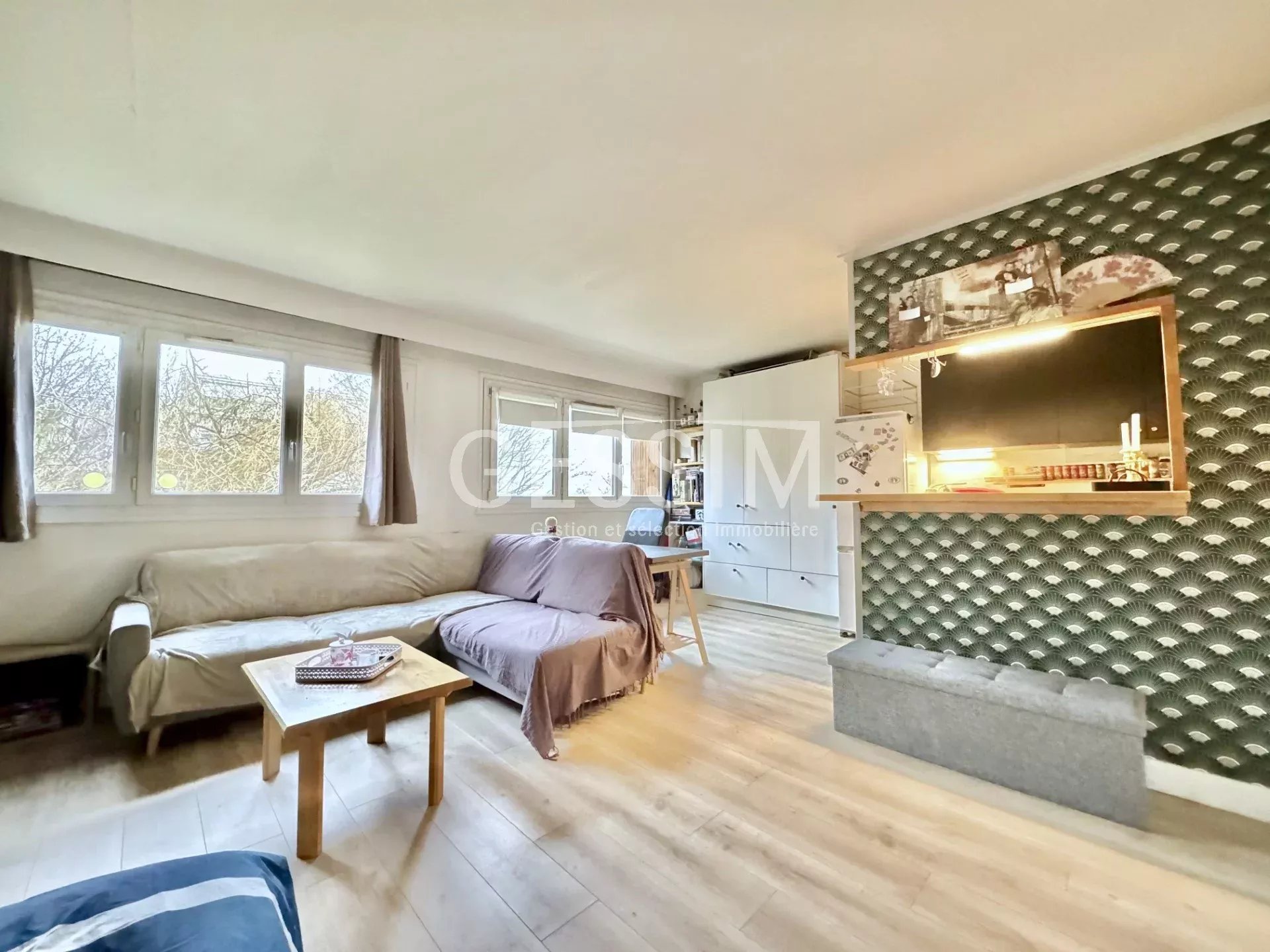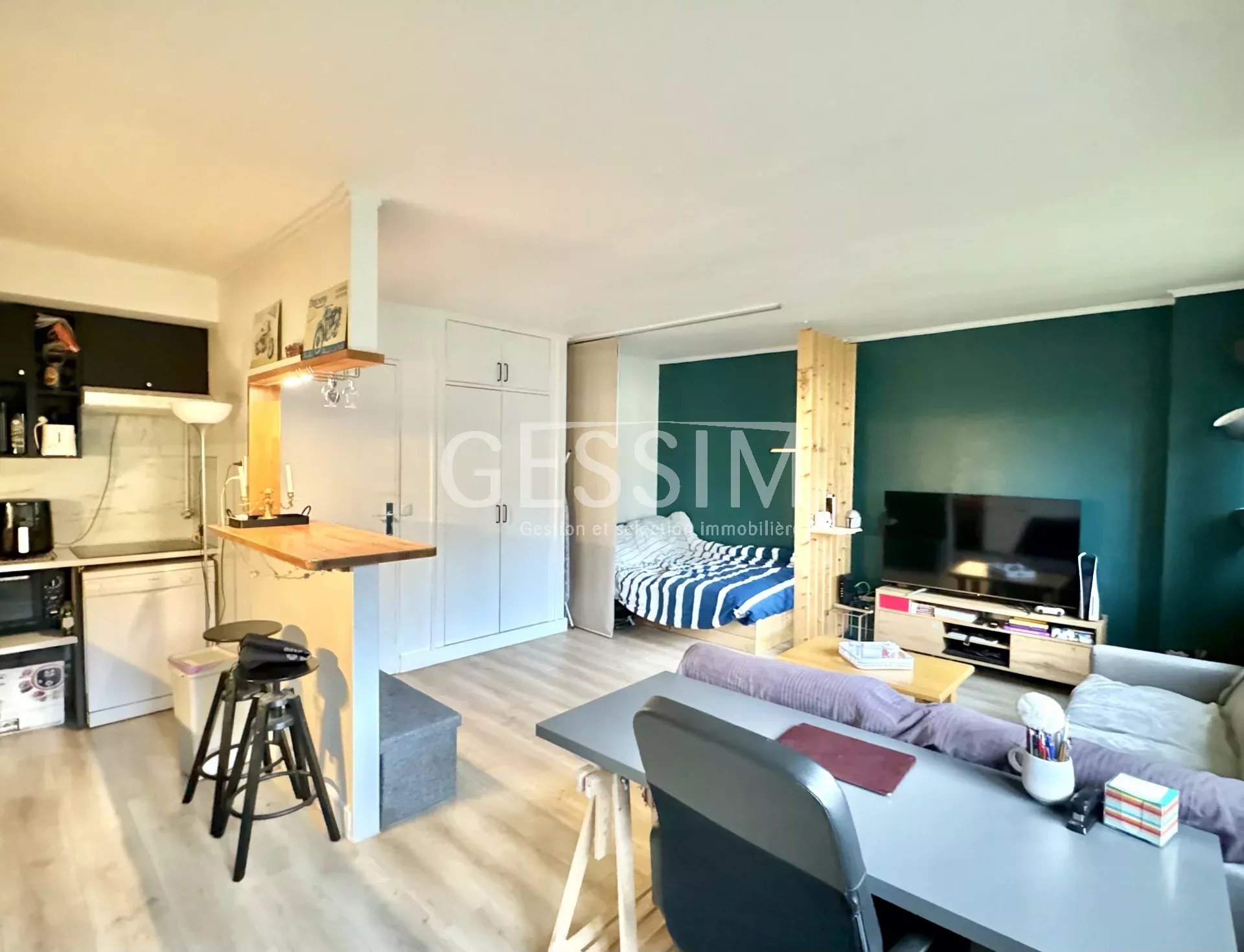 VERRIERES JOLI-MAI, à 2 proximité immédiate du T6 et des commerces et au sein d'une résidence avec ascenseur et gardien, un vaste studio d'une surface de 34.27m² composé comme suit : une grand pièce à vivre exposée SUD-EST avec vue jardins, une cuisine américaine, un coin nuit, un coin salon avec rangements intégrés et une salle d'eau avec wc et emplacement lave linge.