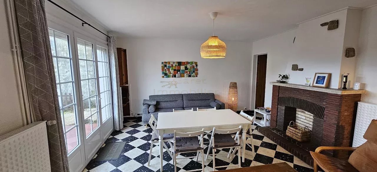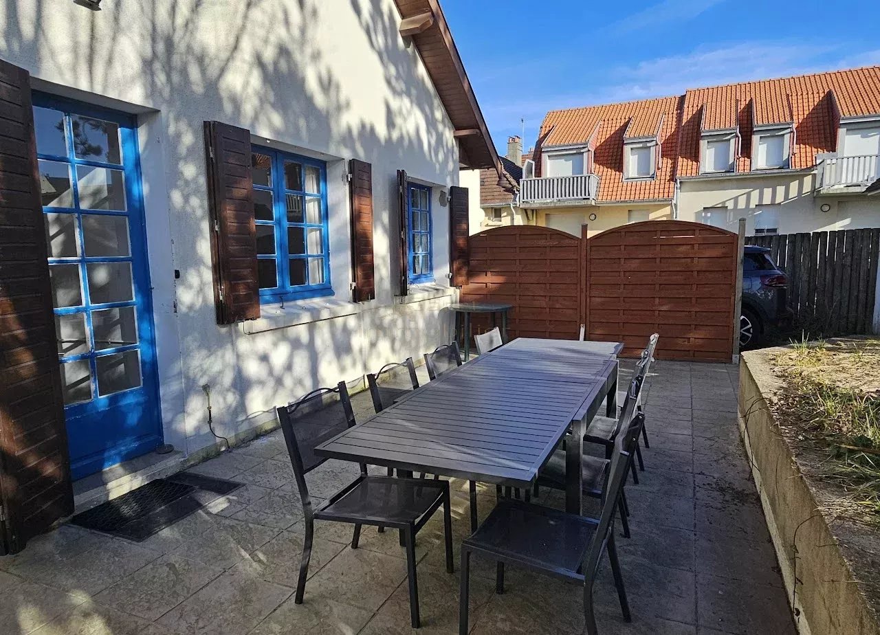Maison en plein centre de la station, comprenant : une entrée, un séjour avec cuisine ouverte, un salon, une salle de bain, un toilette et à l'étage 3 chambres ( 2 avec des lits 160x190 et dans l’autre 4 lits 90x190). Une terrasse avec salon de jardin et barbecue avec vue sur la dune. Un garage avec machine à laver et sèche-linge