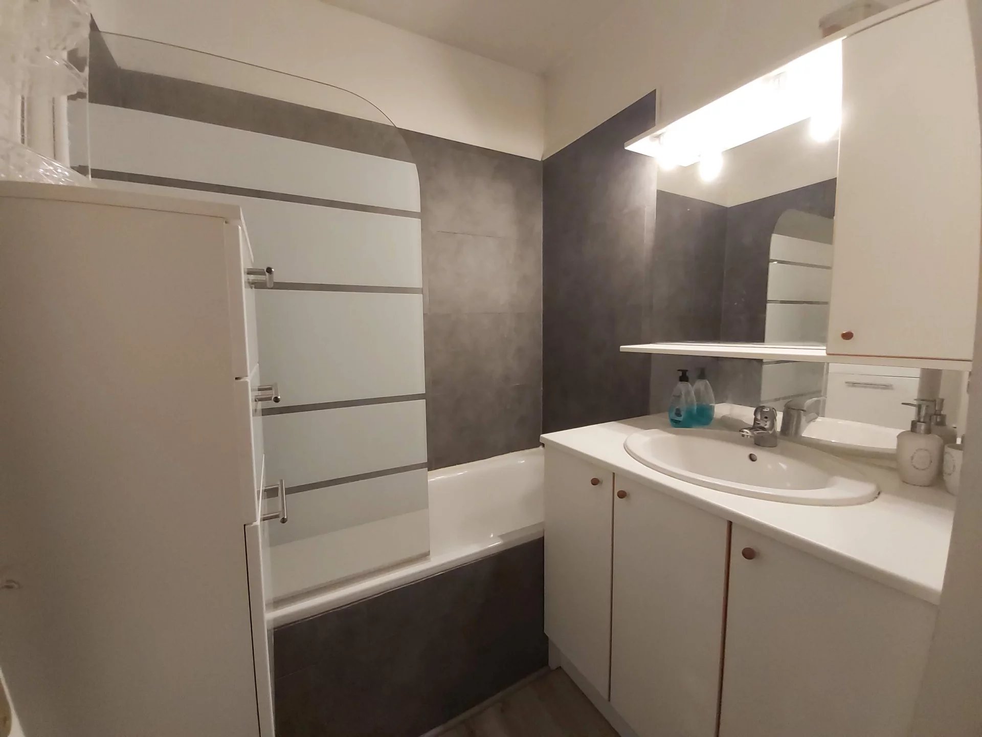 EXCLUSIVITÉ RÉSIDENCE STANDING Appartement 2 pièces en rez de jardin comprenant entrée, cuisine, séjour, chambre, salle de bains, WC, placard, parking. LOCATION MEUBLÉE, LIBRE !